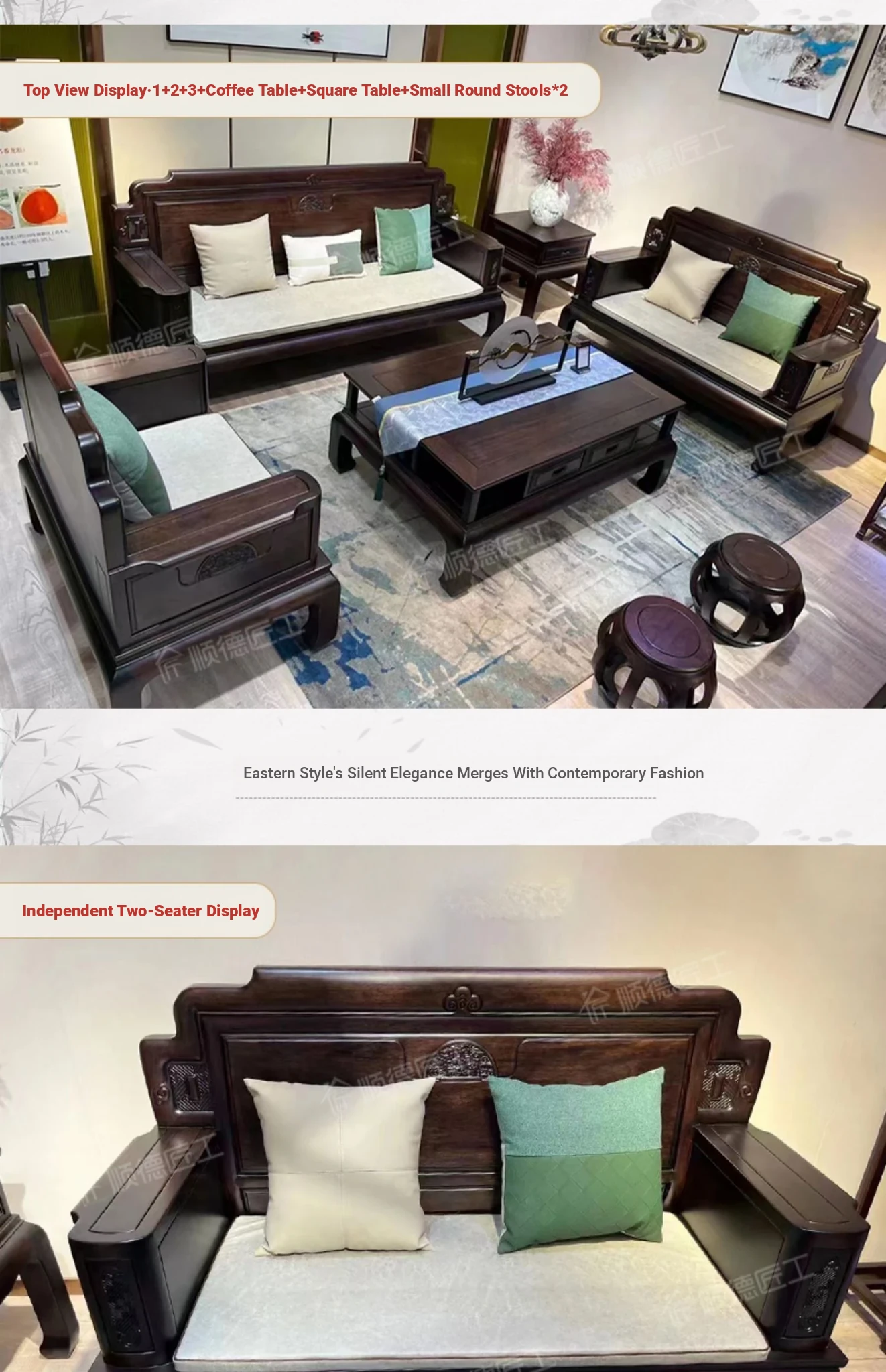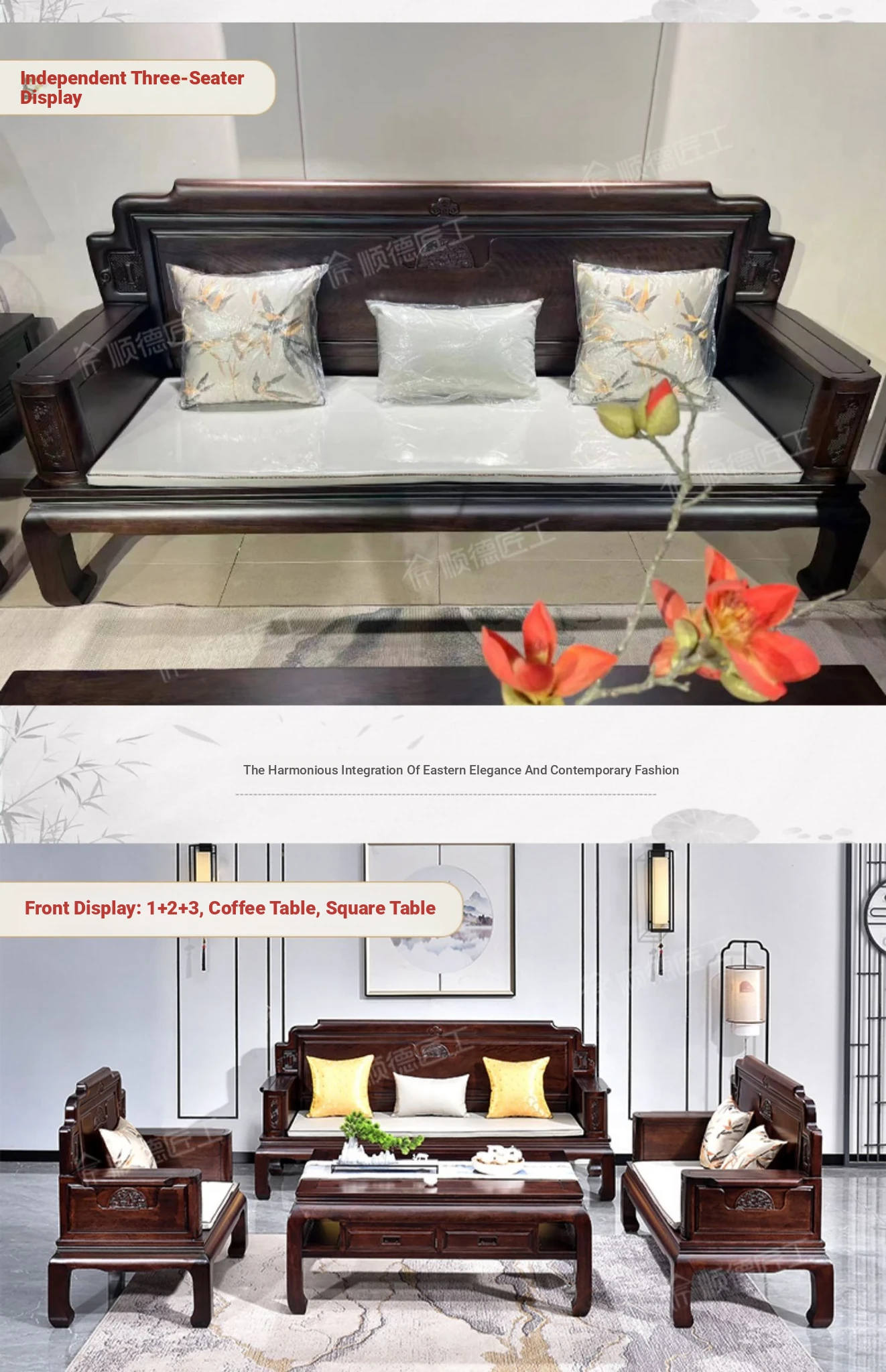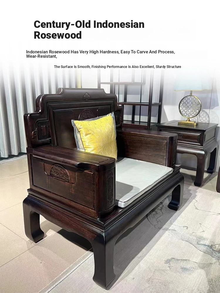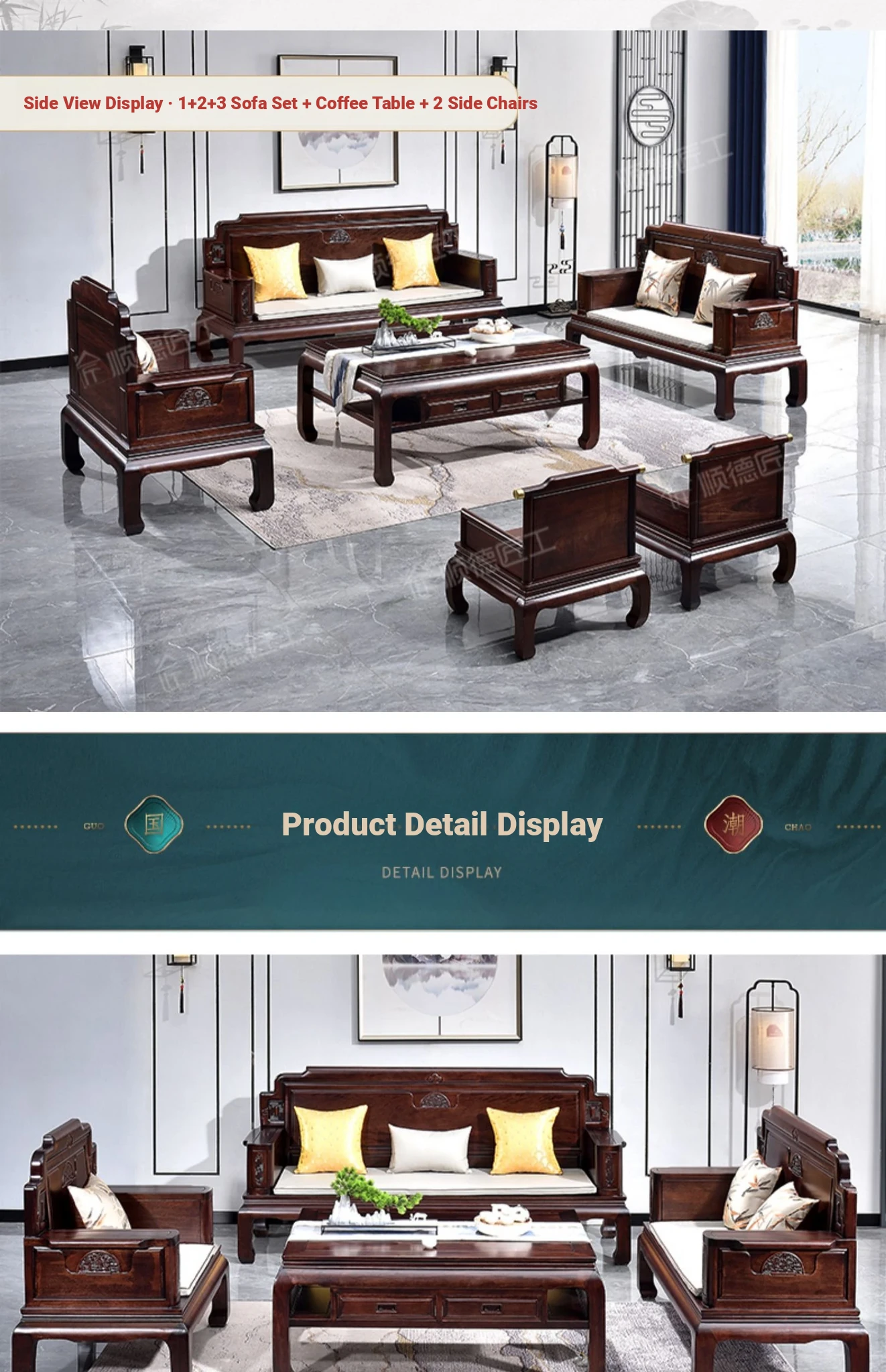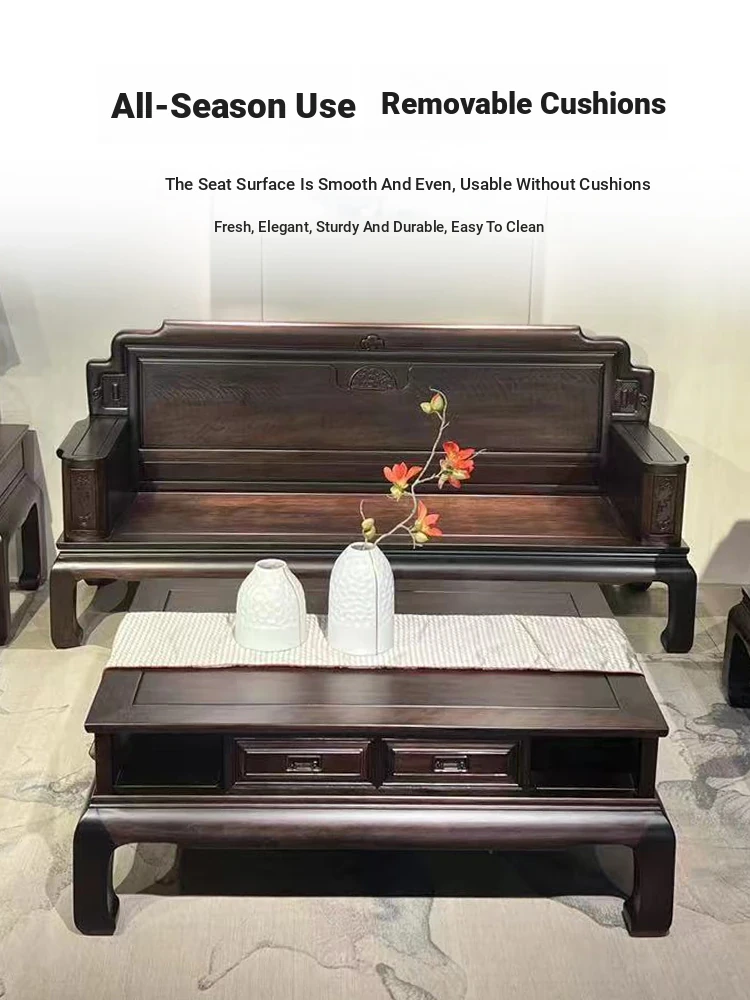 Elegant New Chinese Style Rosewood Sofa Set - Classic Antique Carved 123 Combination for All Seasons, Perfect for Your Living Room Furniture.