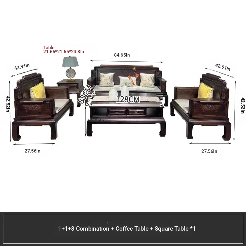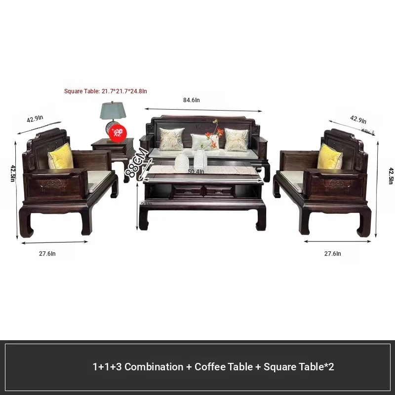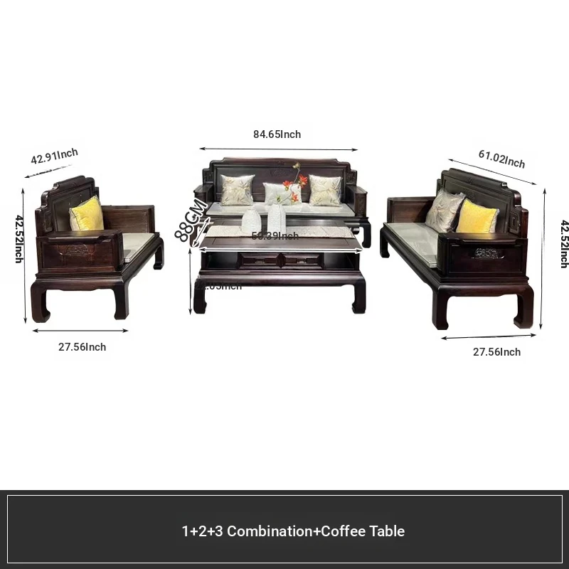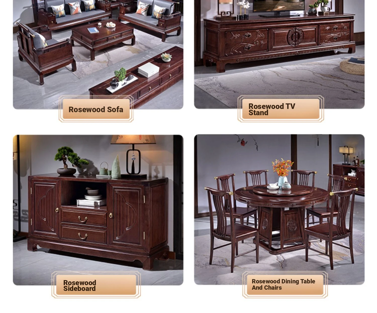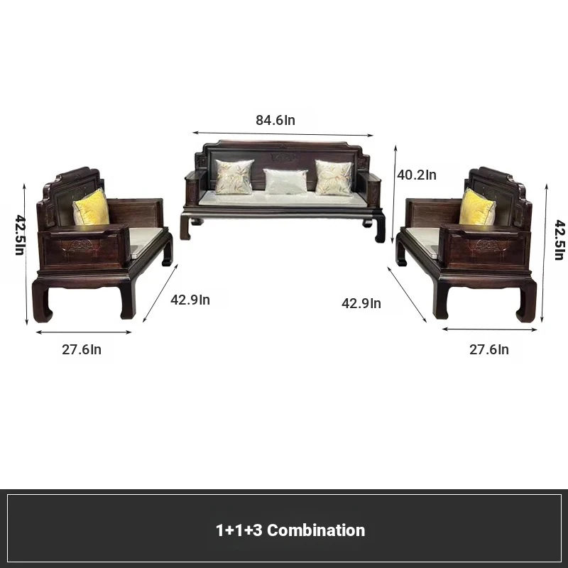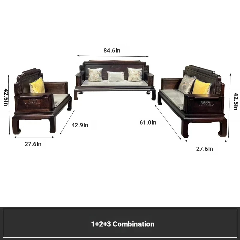 Elegant New Chinese Style Rosewood Sofa Set - Classic Antique Carved 123 Combination for All Seasons, Perfect for Your Living Room Furniture.