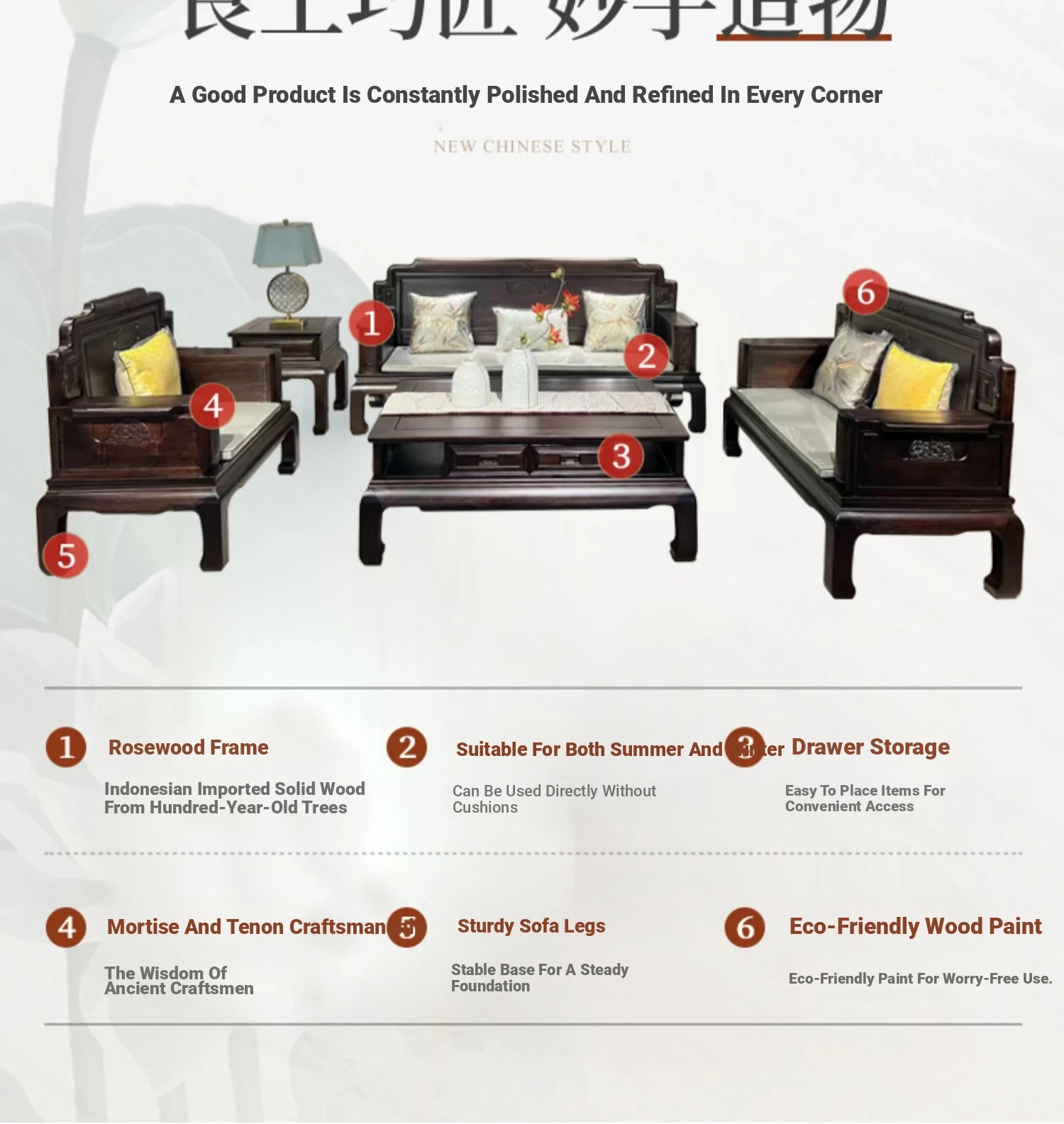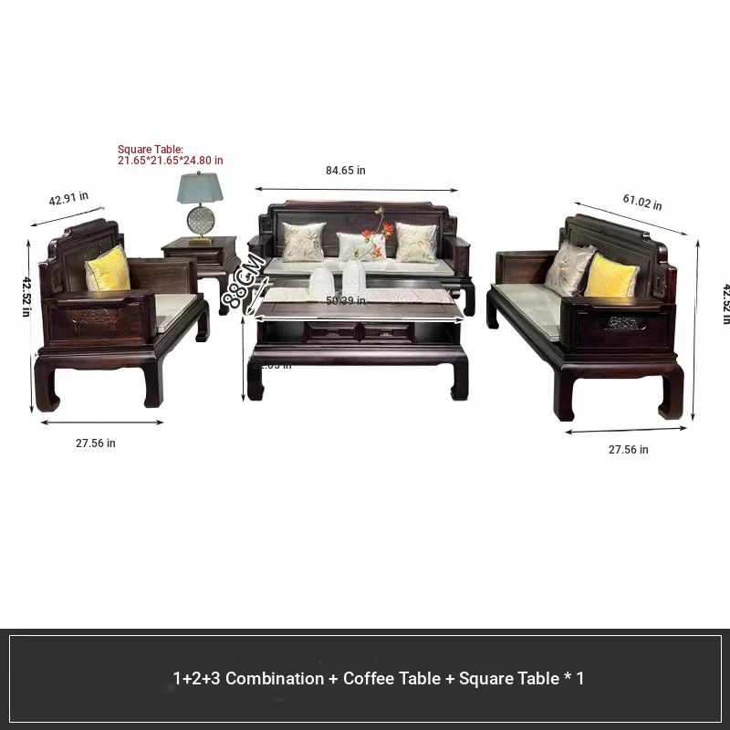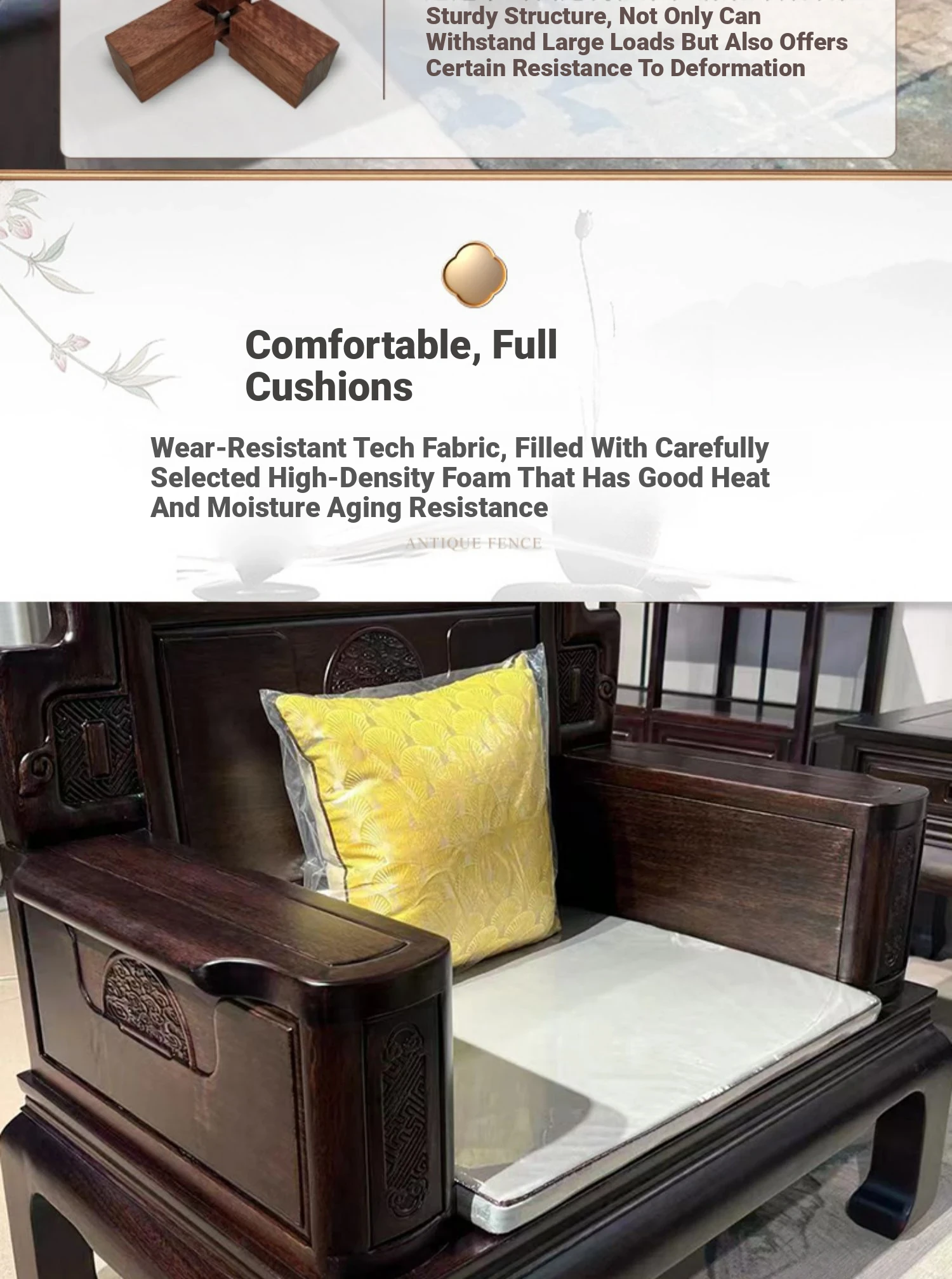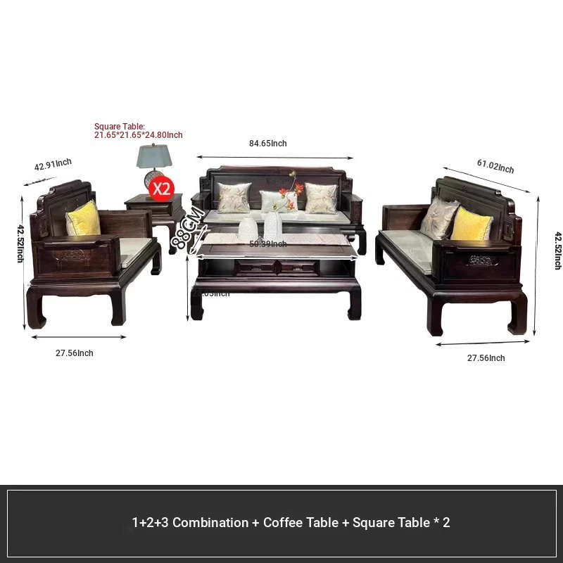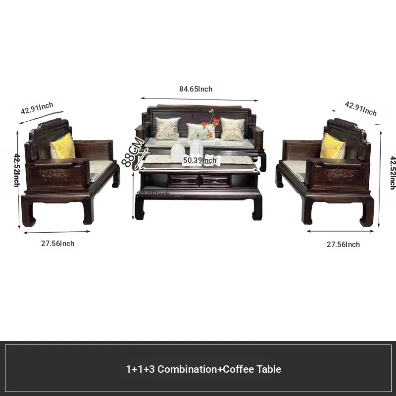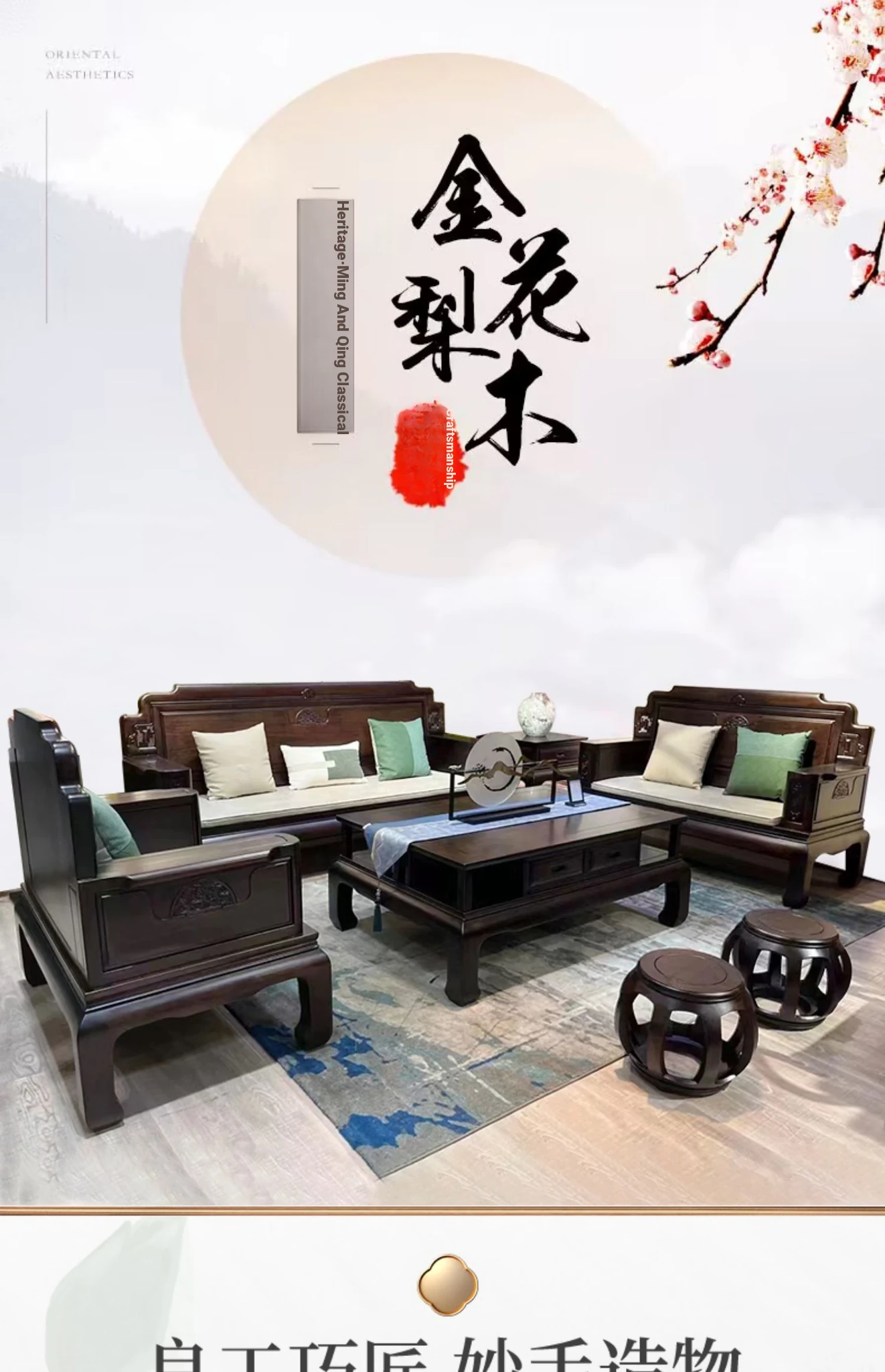 Elegant New Chinese Style Rosewood Sofa Set - Classic Antique Carved 123 Combination for All Seasons, Perfect for Your Living Room Furniture.