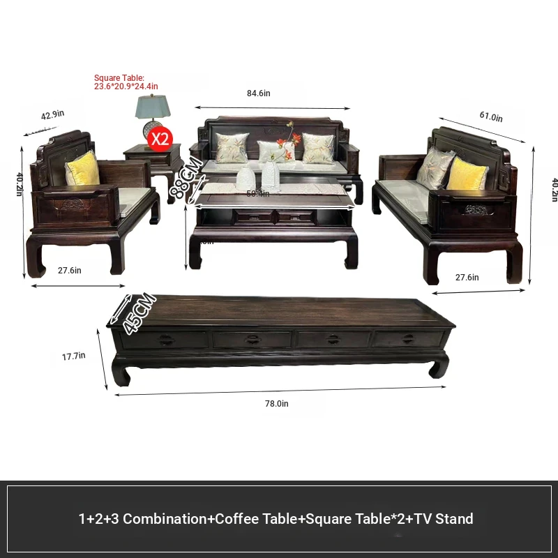 1+2+3 + coffee table + square * 2 + TV cabinet