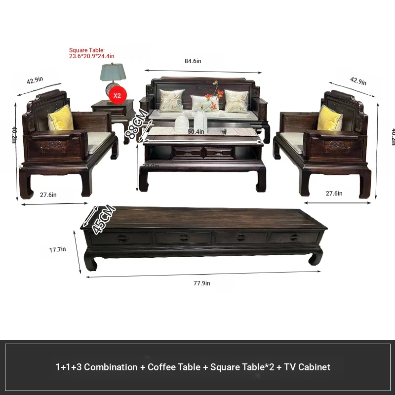 1+1+3 + coffee table + square * 2 + TV cabinet