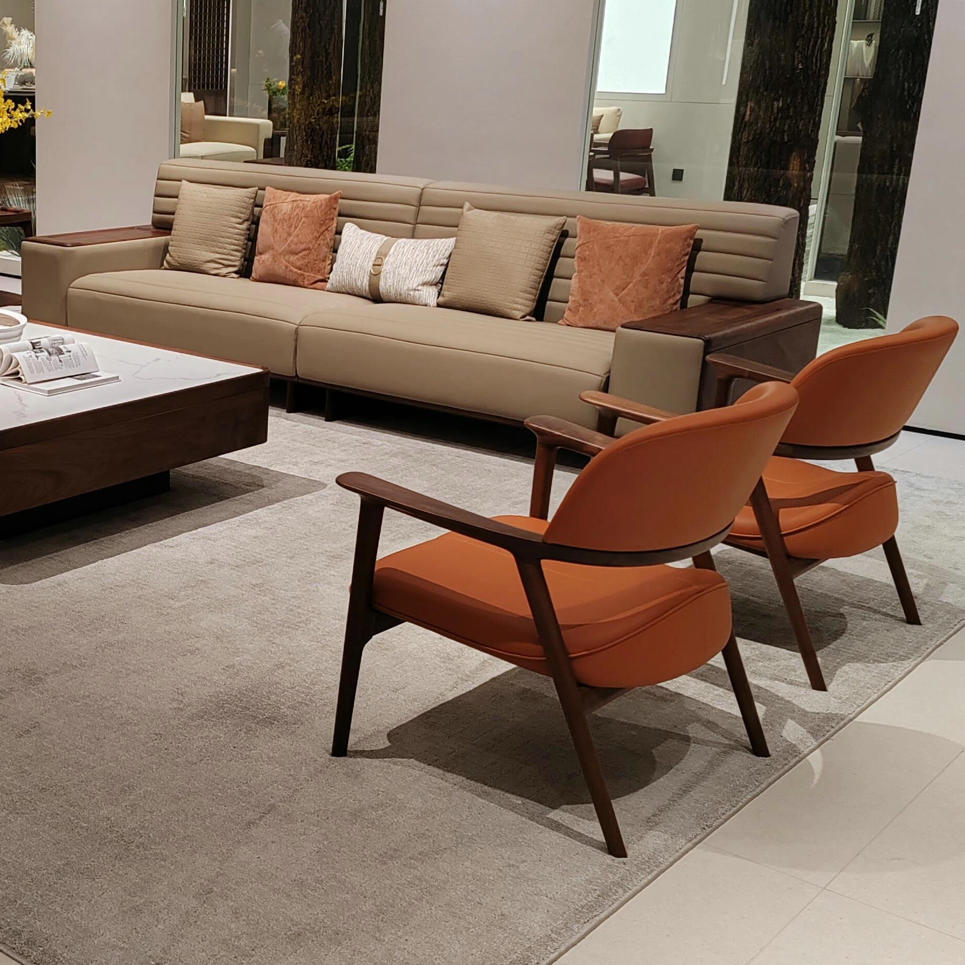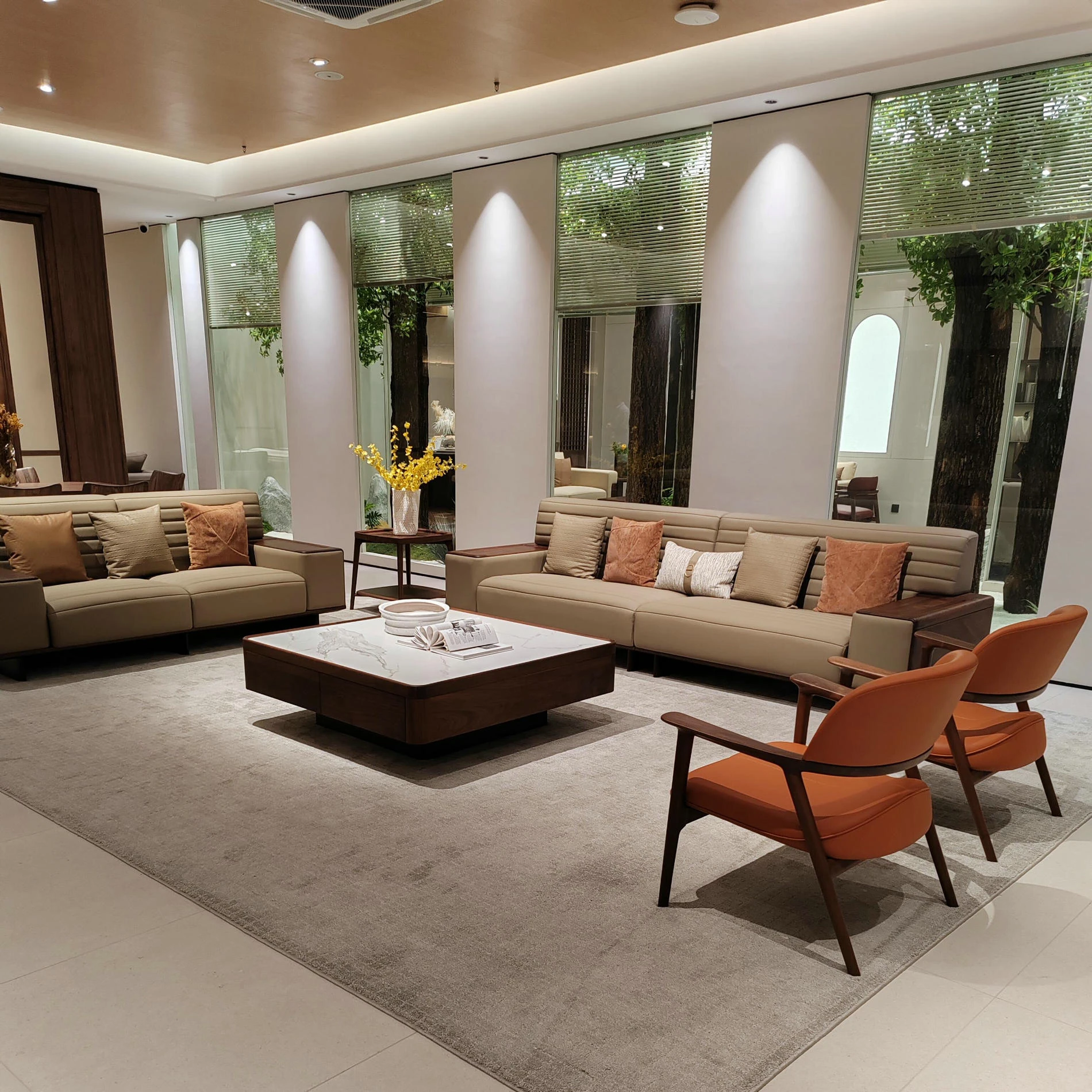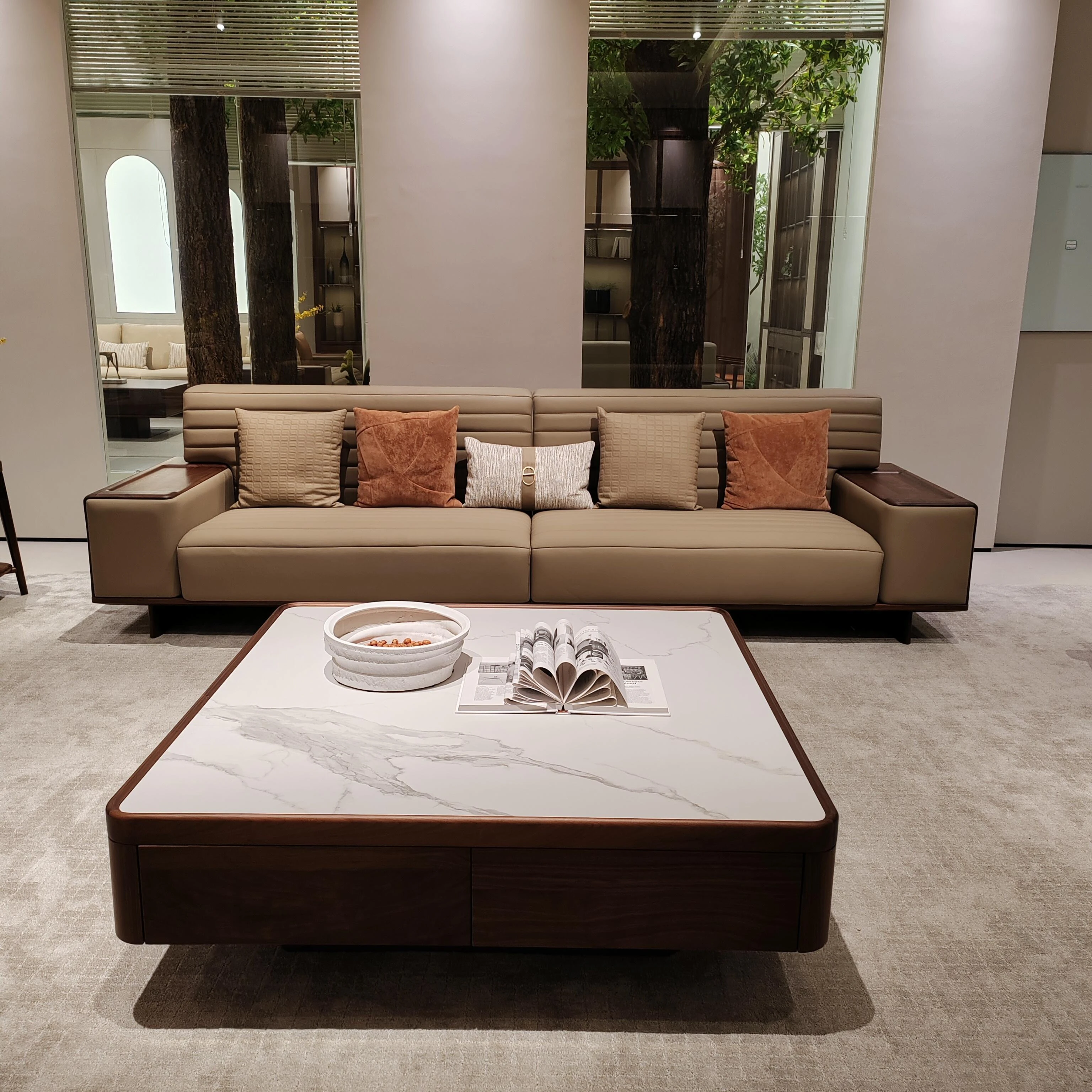 Elegant New Chinese Style Sofa - Vintage Villa Living Room Black Walnut Solid Wood Sofa for Spacious Homes, Italian Straight-Line Design