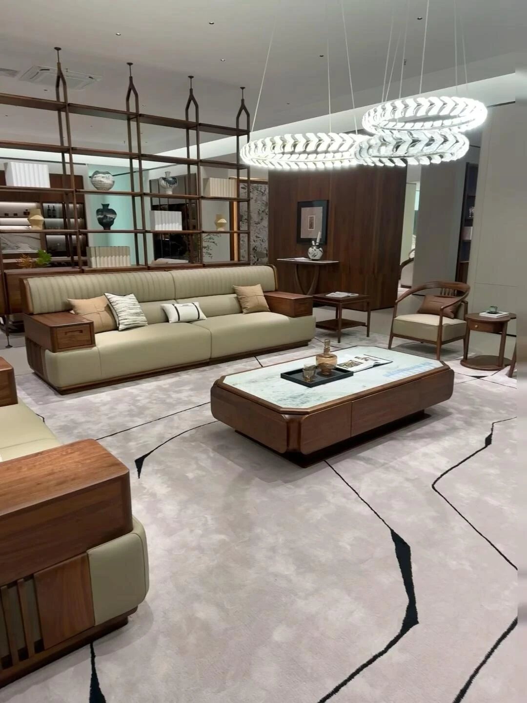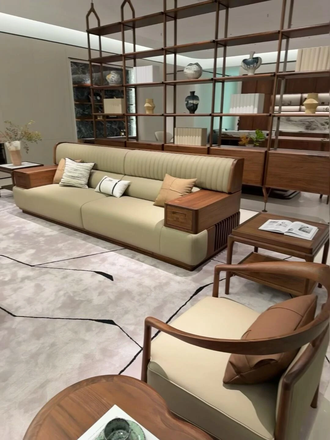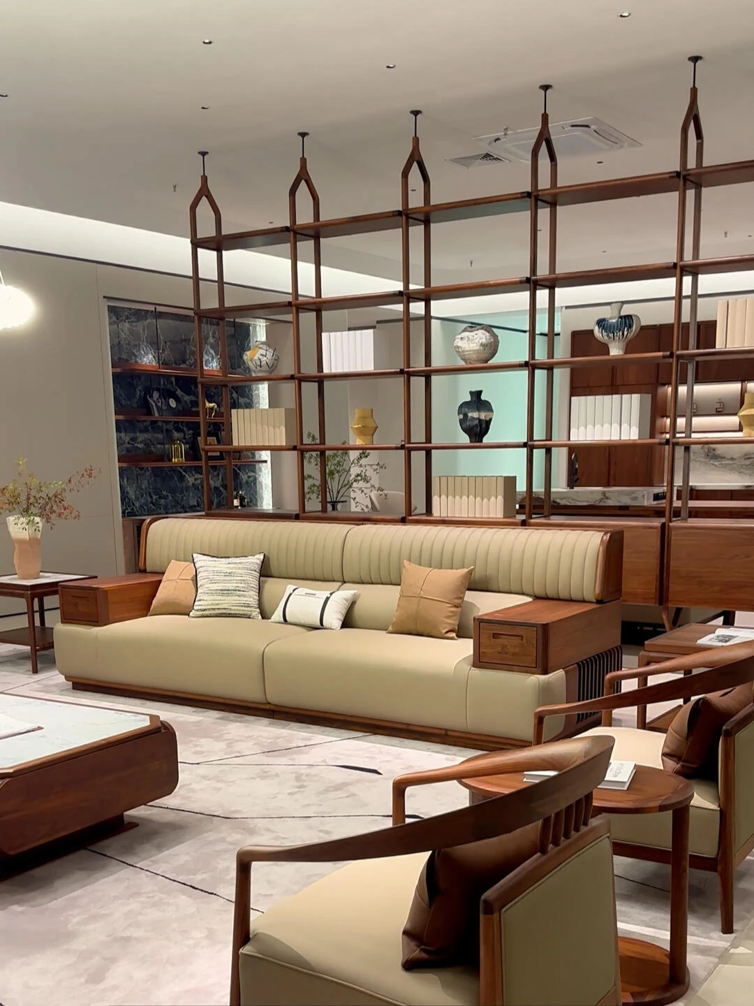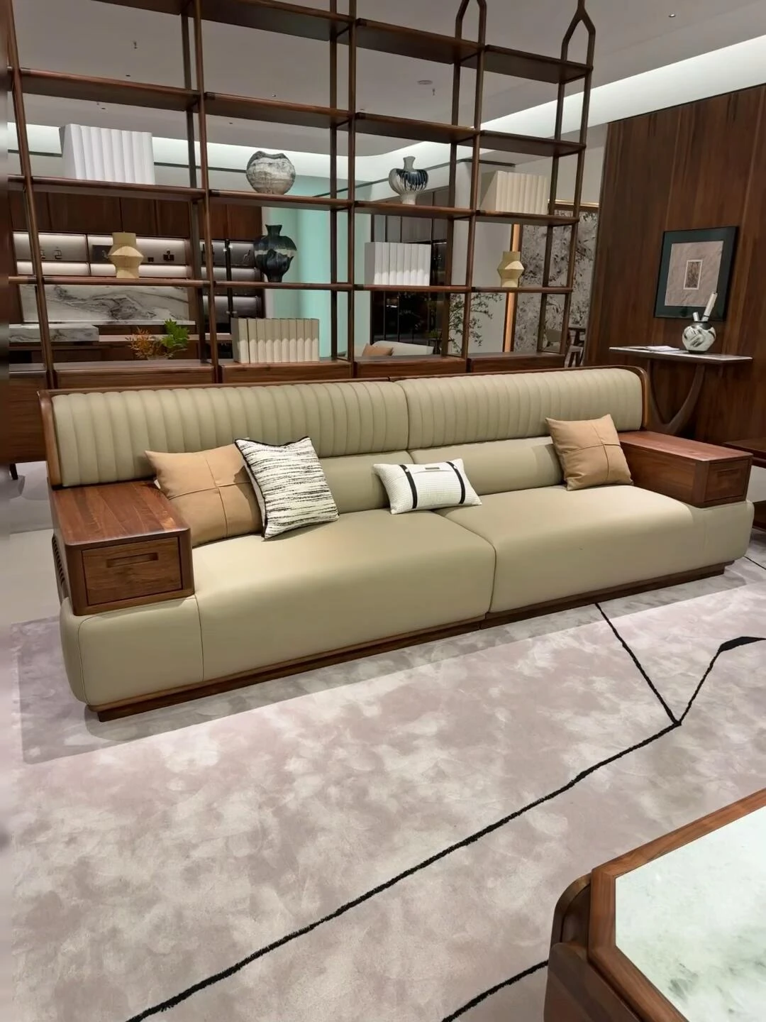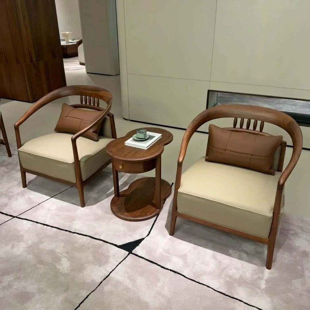 Elegant New Chinese Style Solid Wood Sofa Set - Walnut Living Room Furniture for Villas, Home, and Office Reception, Perfect for Tea Rooms