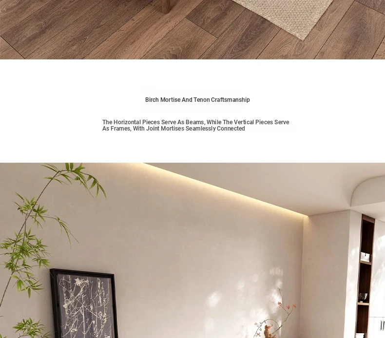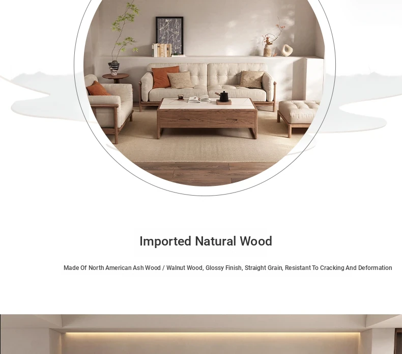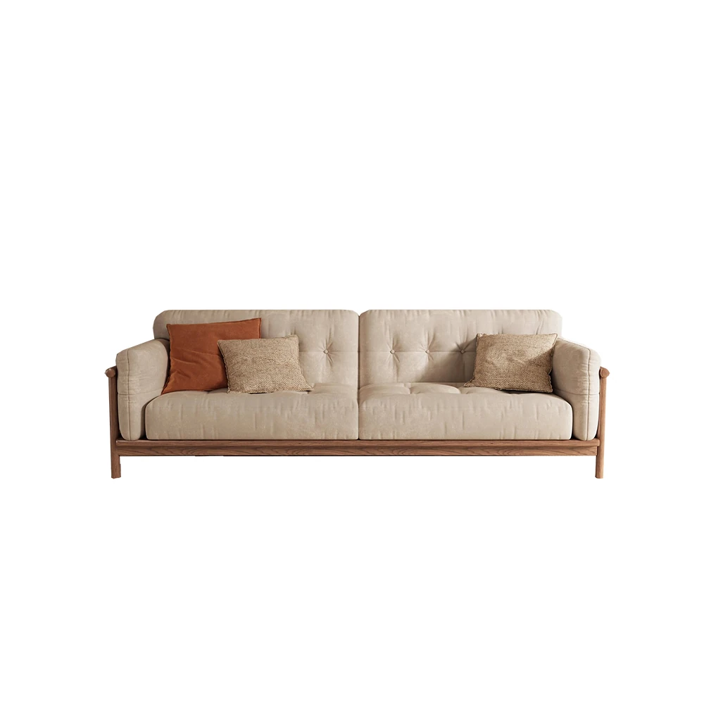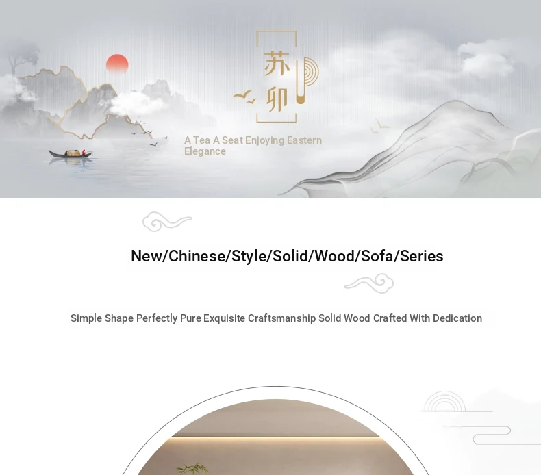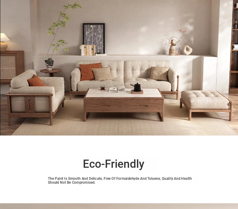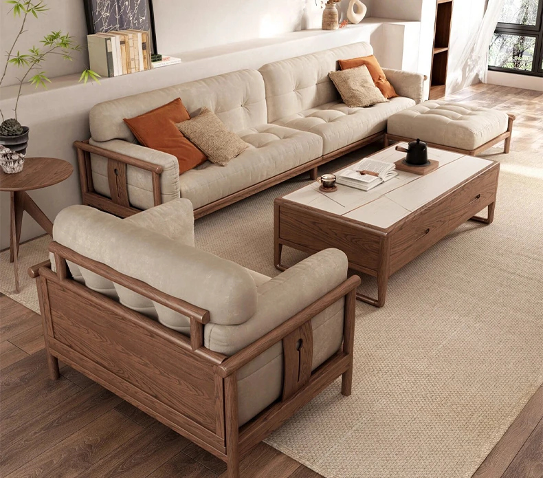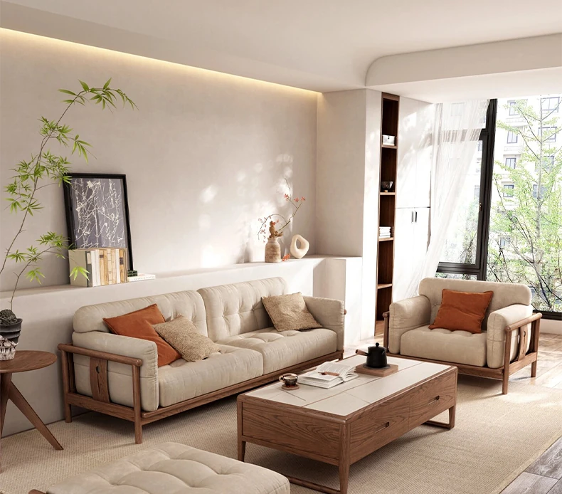 Elegant New Chinese-Style Solid Wood Sofa Set with Minimalist Mortise and Tenon Frame, Soft Upholstery, and Zen Aesthetic for Model Homes