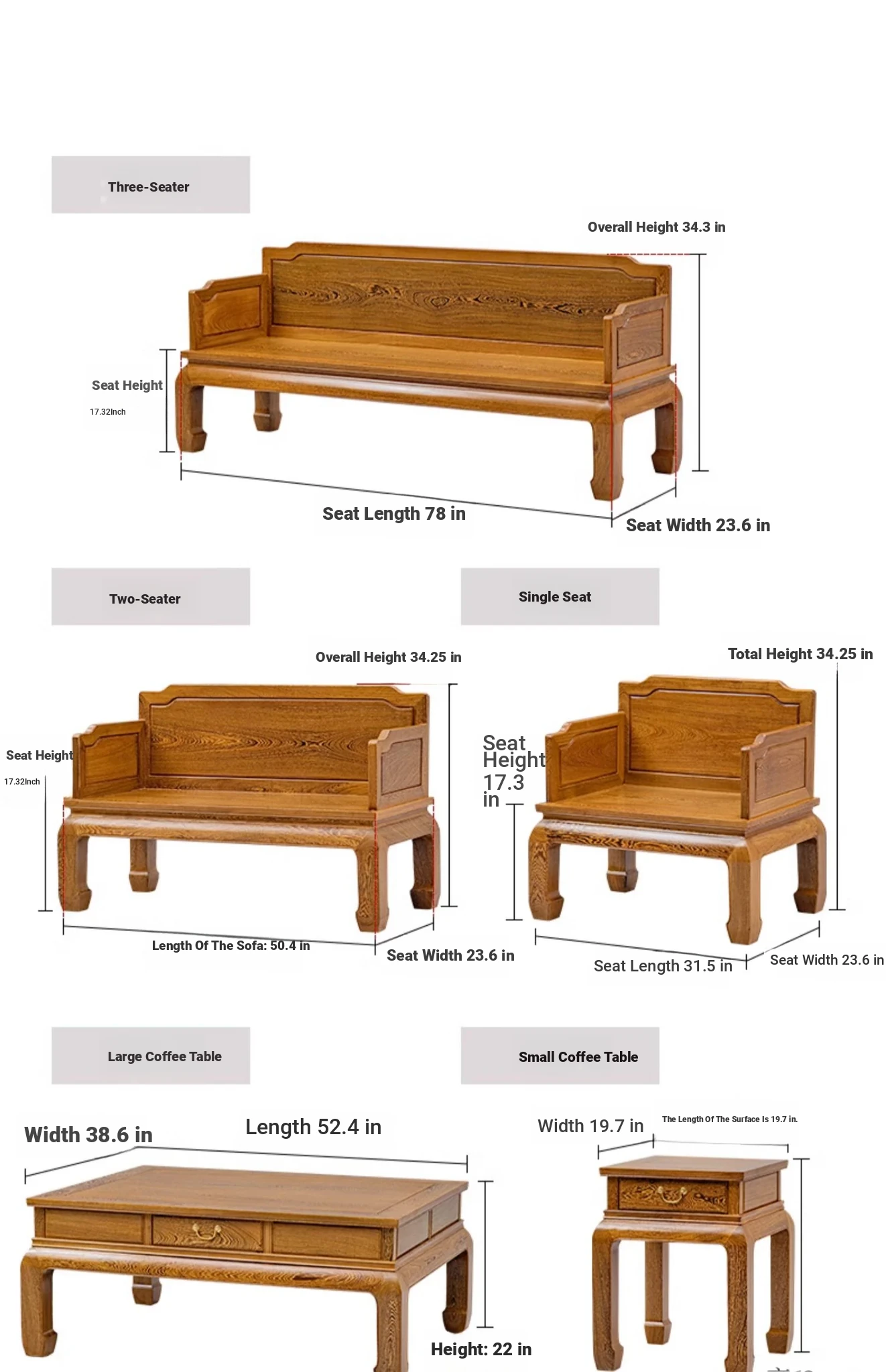 Elegant Rosewood Furniture - Chicken Wing Wood Living Room Sofa Set for All Sizes, Solid Wood Ming Style Sofa and Chair Combination, Ready to Assemble