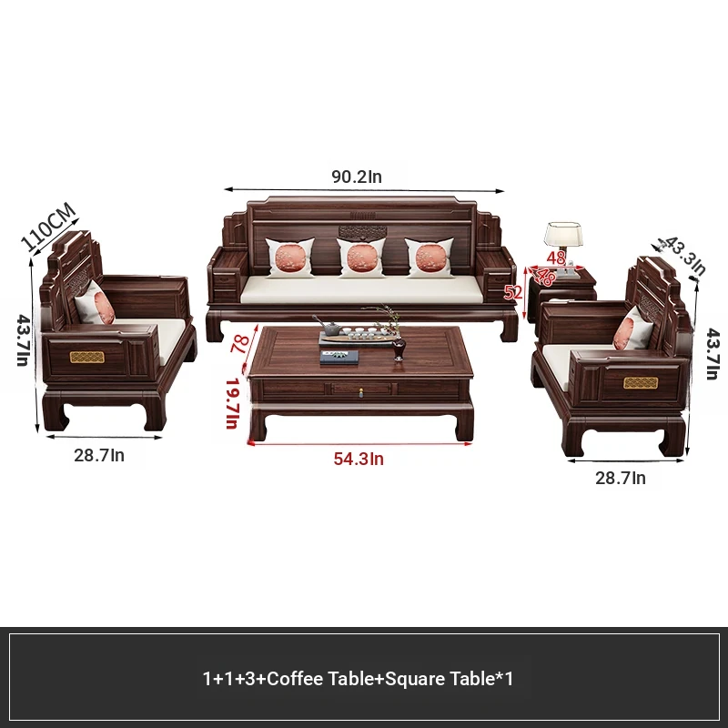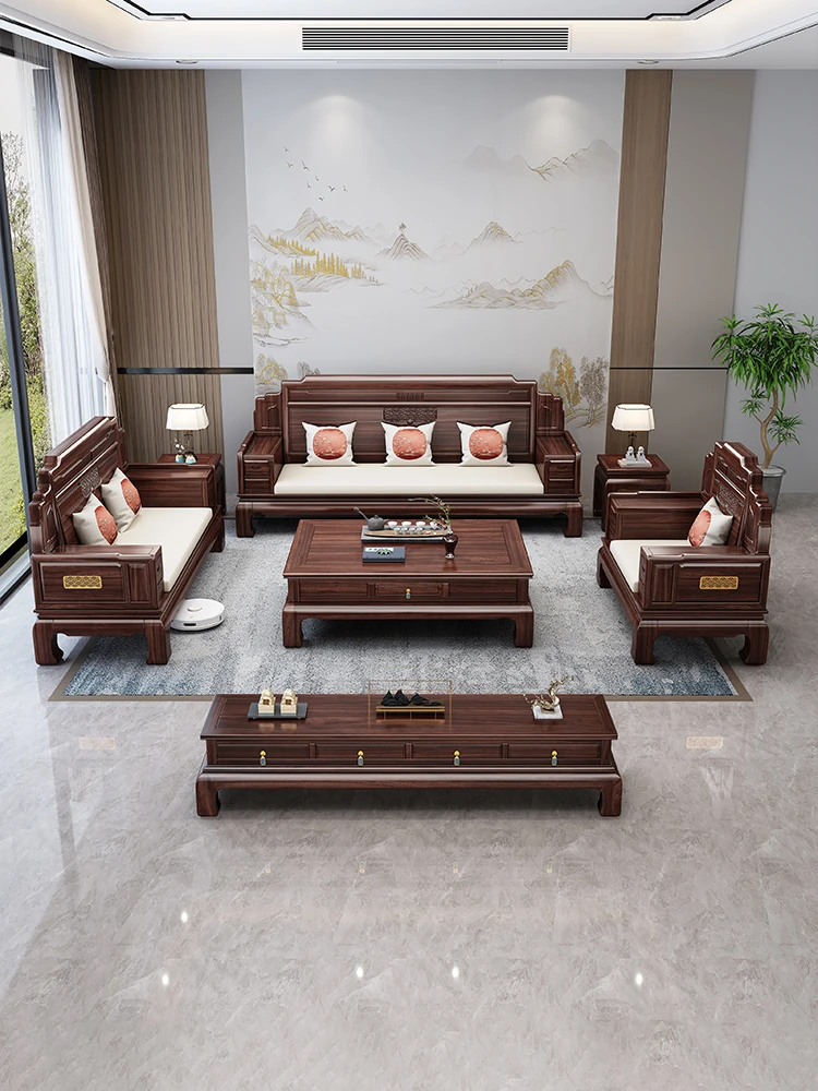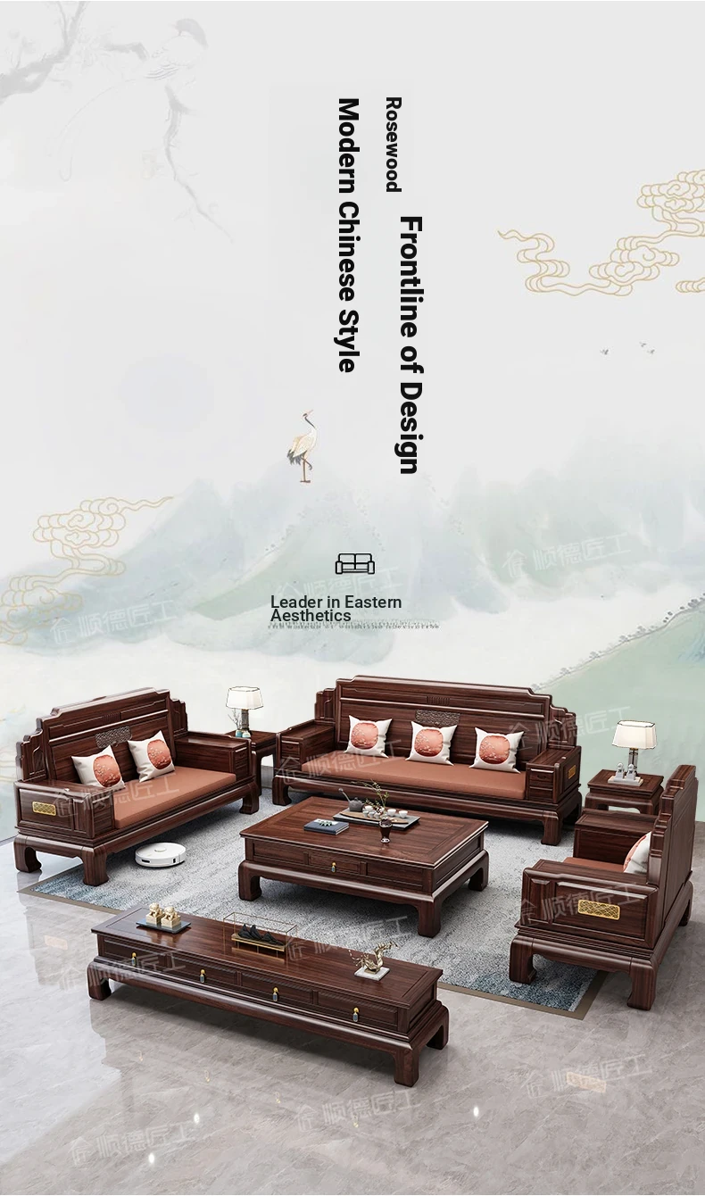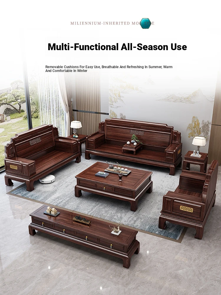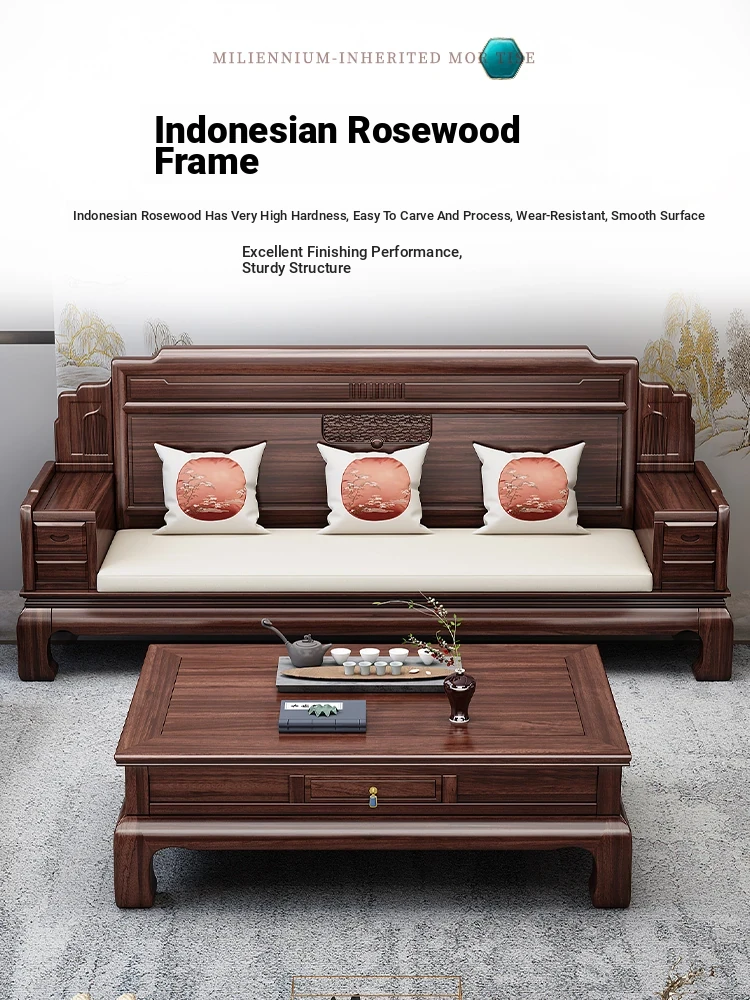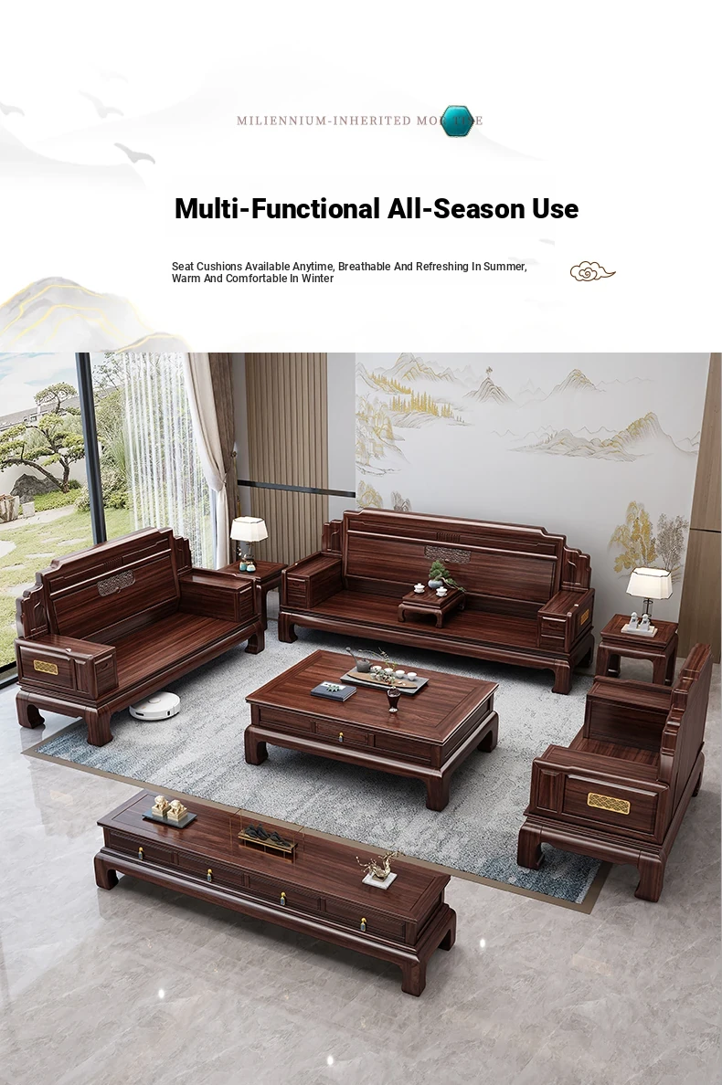 Elegant Rosewood Sofa Set - Classic Chinese Design with Intricate Carvings, Versatile for Winter and Summer, Perfect for Villas and Modern Living Rooms, Solid Wood Furniture for a Timeless Touch.