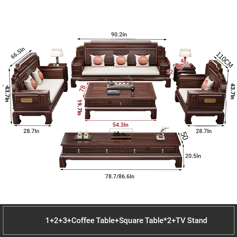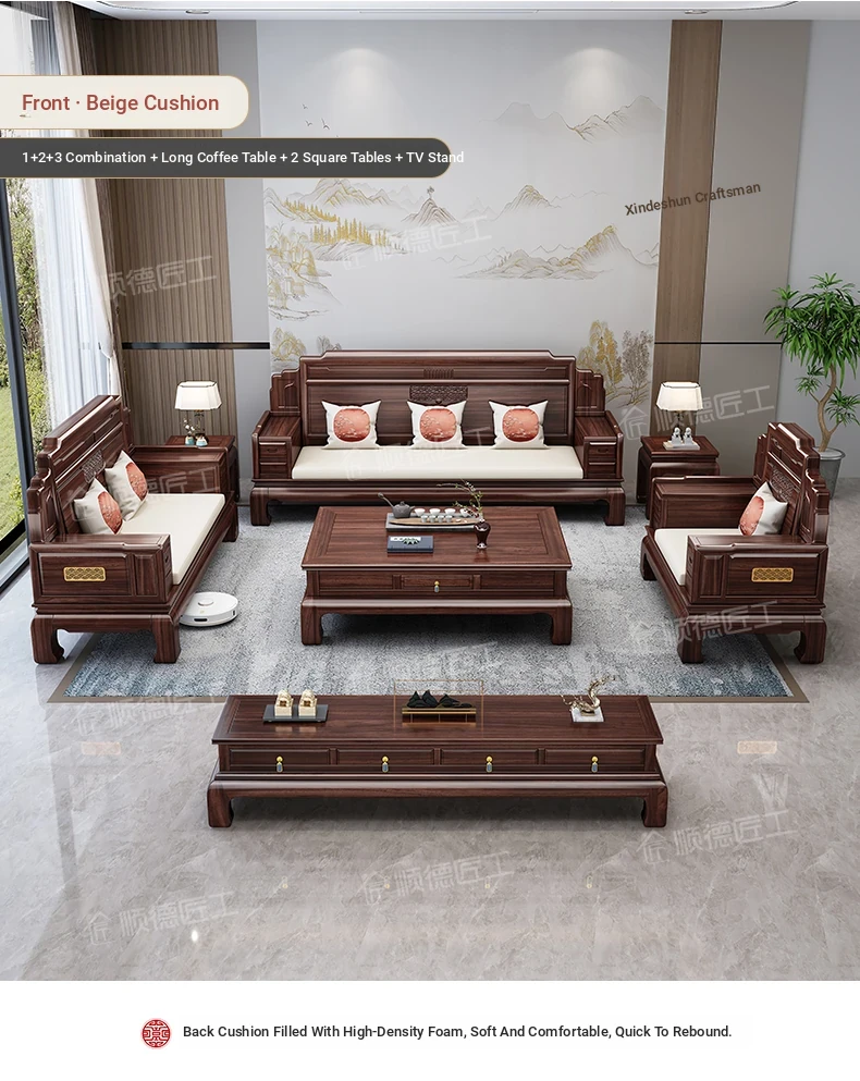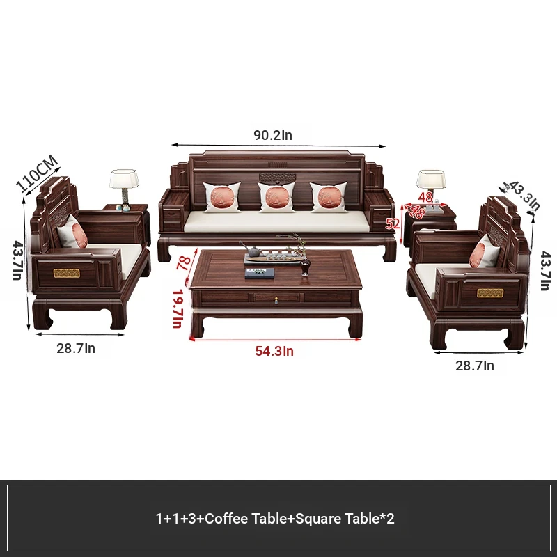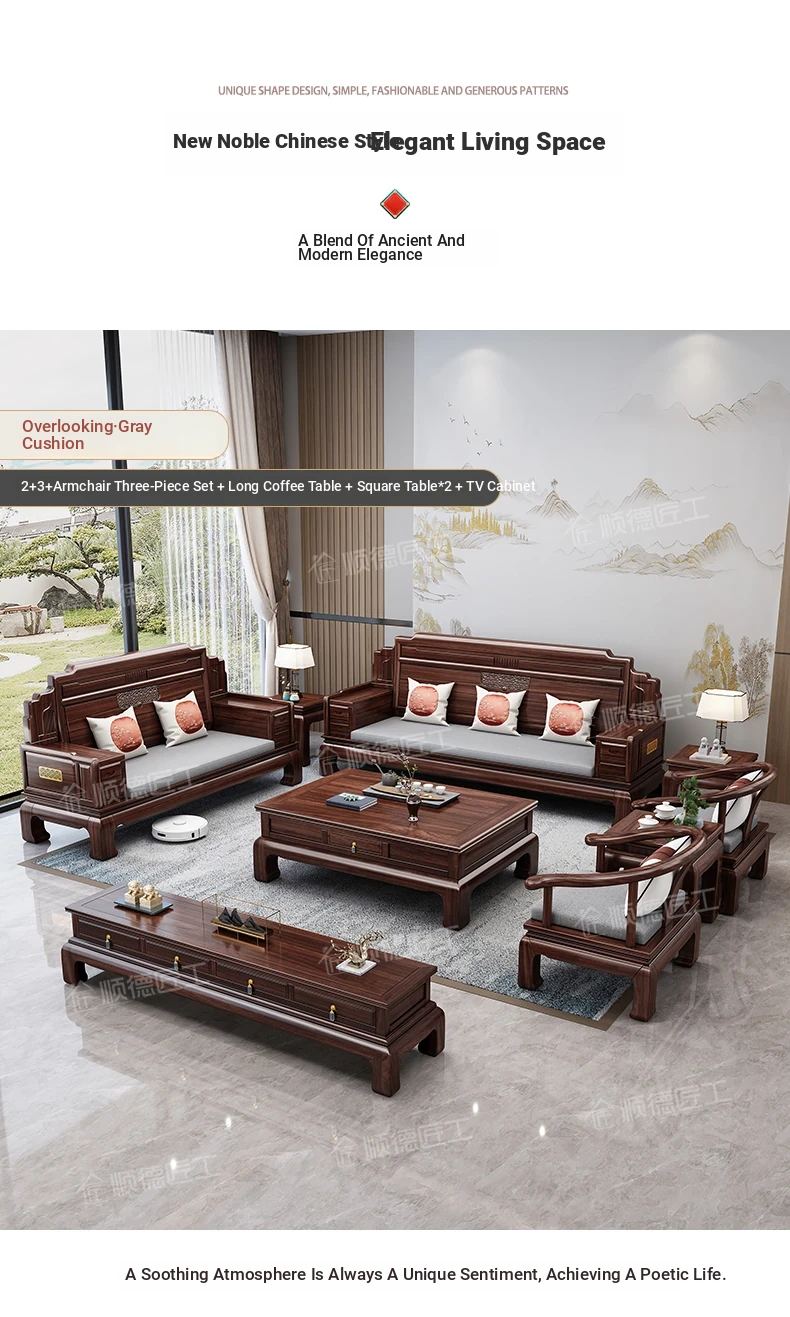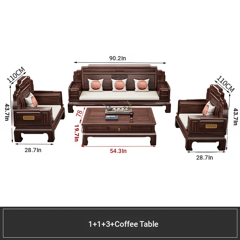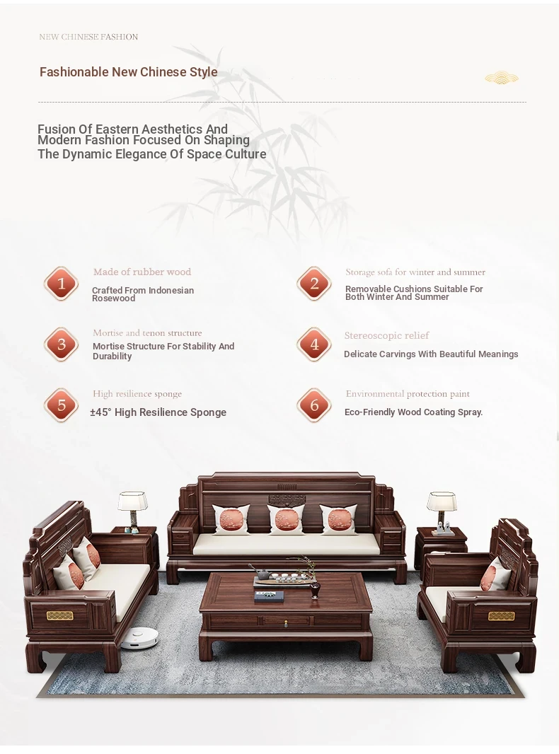 Elegant Rosewood Sofa Set - Classic Chinese Design with Intricate Carvings, Versatile for Winter and Summer, Perfect for Villas and Modern Living Rooms, Solid Wood Furniture for a Timeless Touch.