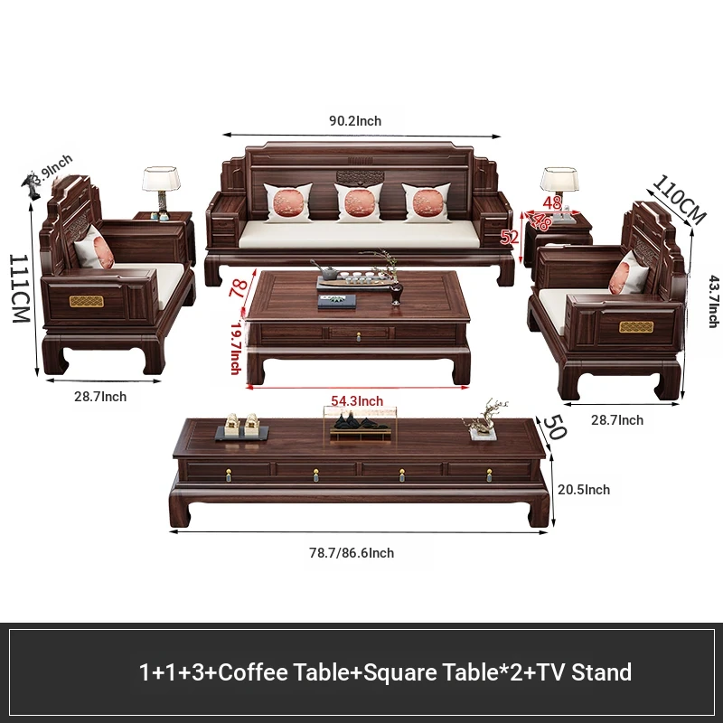 1+1+3 + long coffee table + square * 2 + TV cabinet