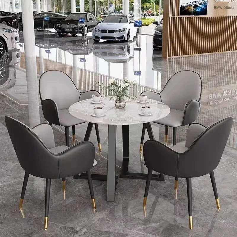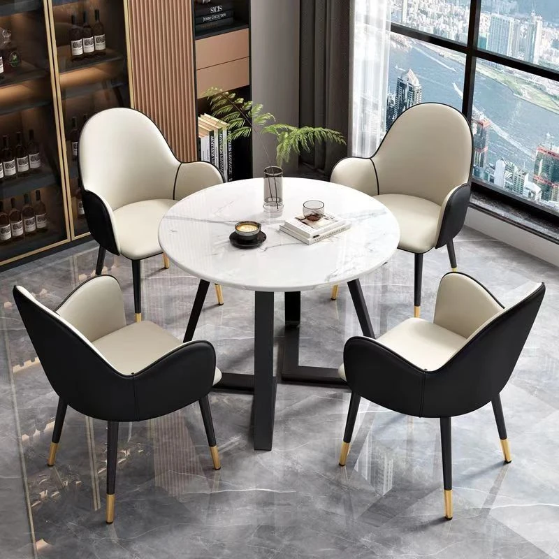 Elegant Round Reception Table and Chair Set - Minimalist Cat Paw Design for Modern Balconies, Perfect for Leisure Dining and Meetings in Style