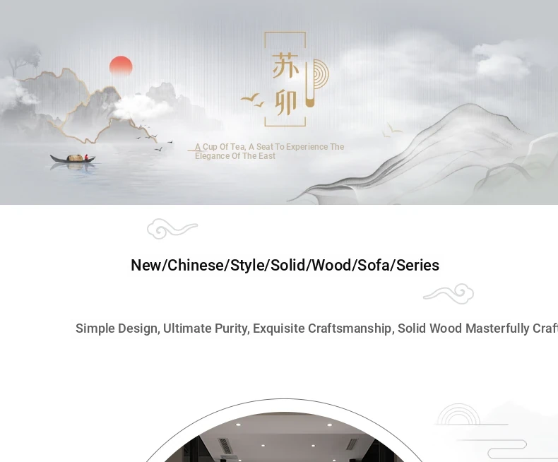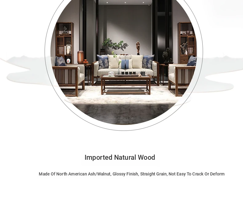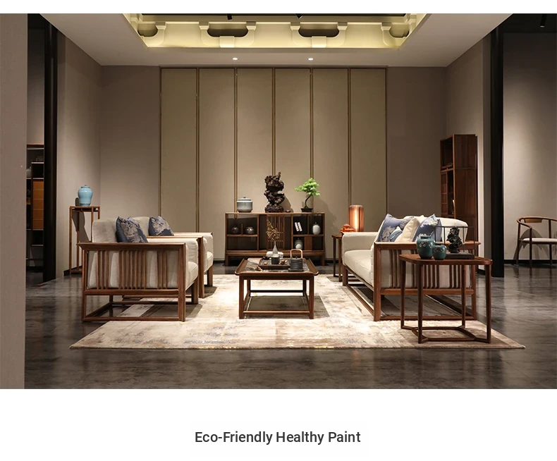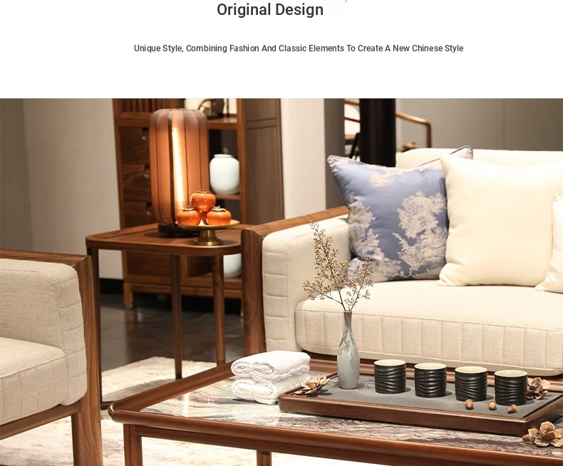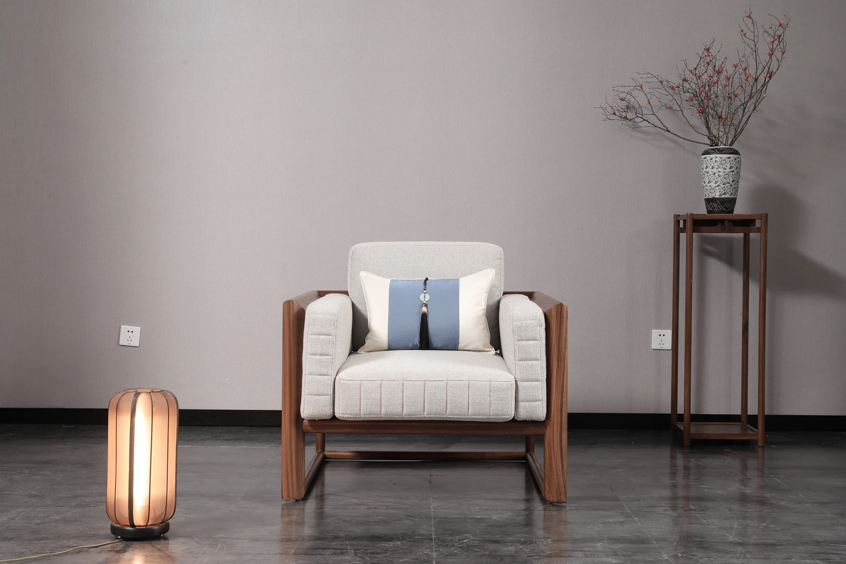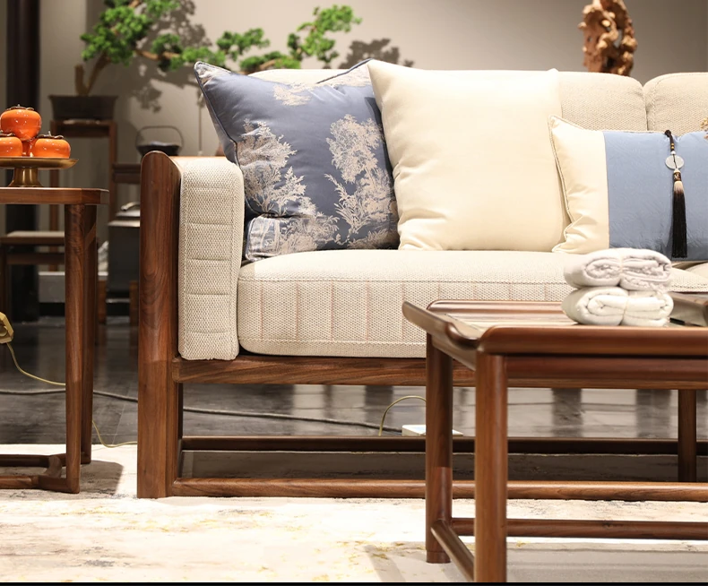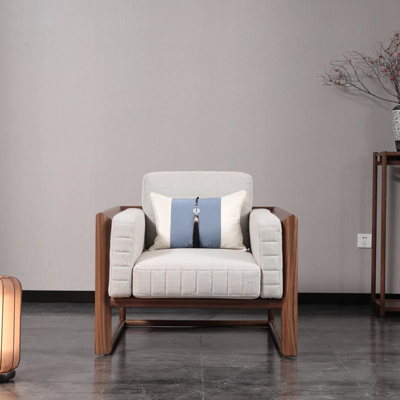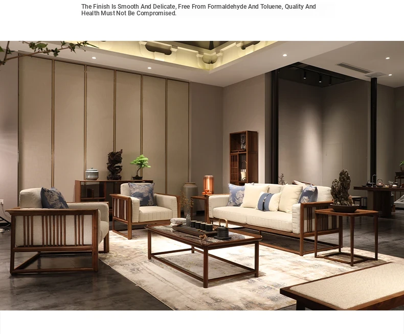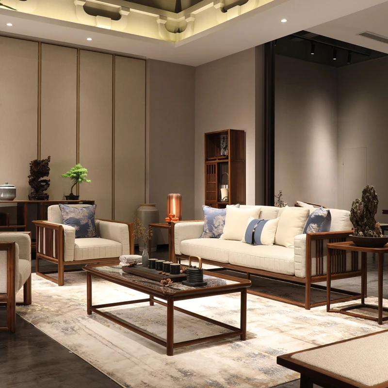 Elegant Song-style New Chinese Zen Sofa Set - 1-2-3 Combination for Villas and Offices, Perfect for Any Space, Crafted from Solid Wood for Durability and Style.