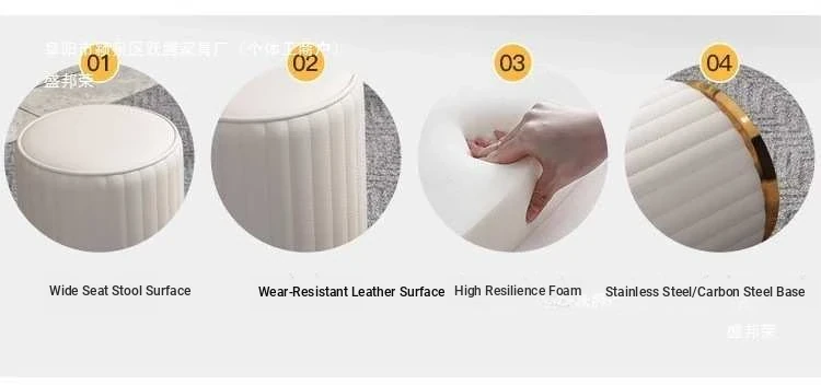 Factory Direct Sale Makeup Stool - Stylish and Space-Saving Vanity Seat for Home Use, Perfect for Beauty and Nail Treatments, Elegant Minimalist Design, Round Shape with Storage Function.