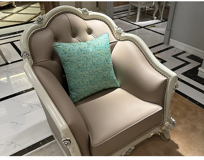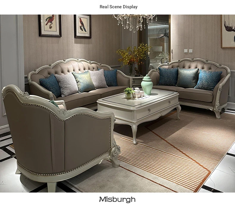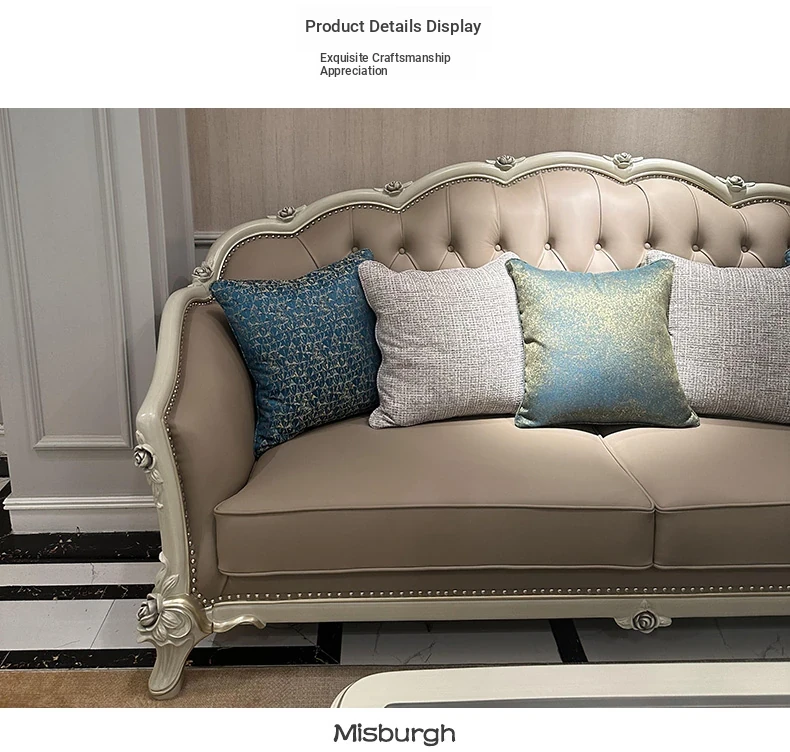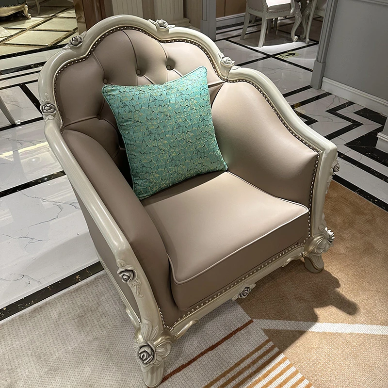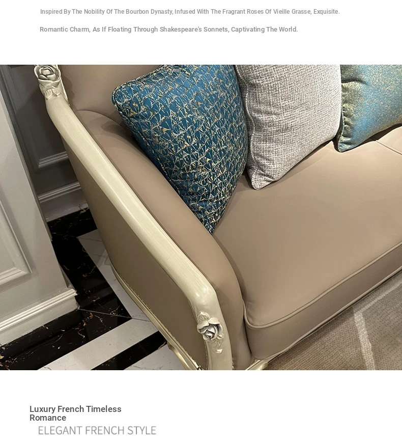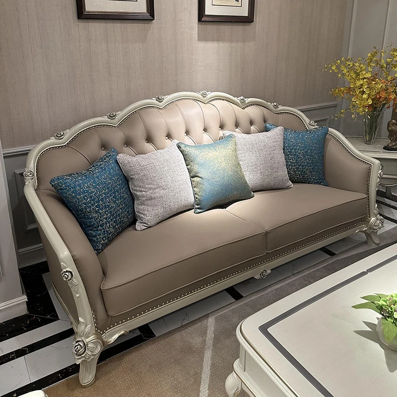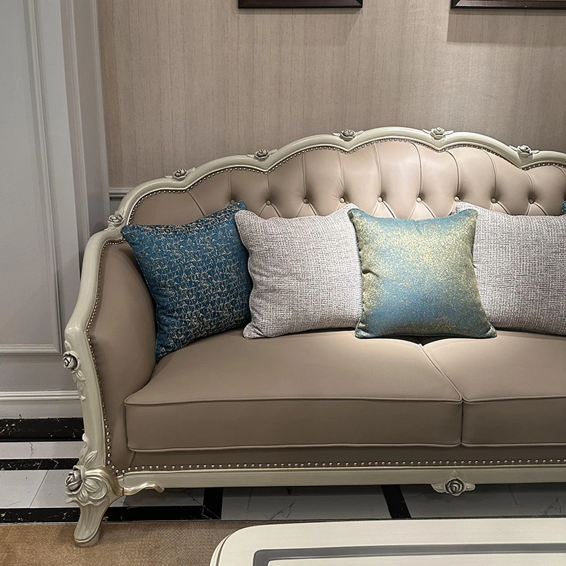 French Genuine Leather Sofa - Modern Minimalist Light Luxury 123 Combination Furniture for Small to Medium Spaces - European Style Elegant Solid Wood Furniture