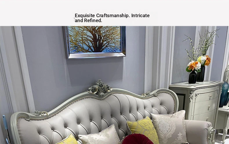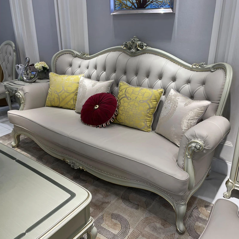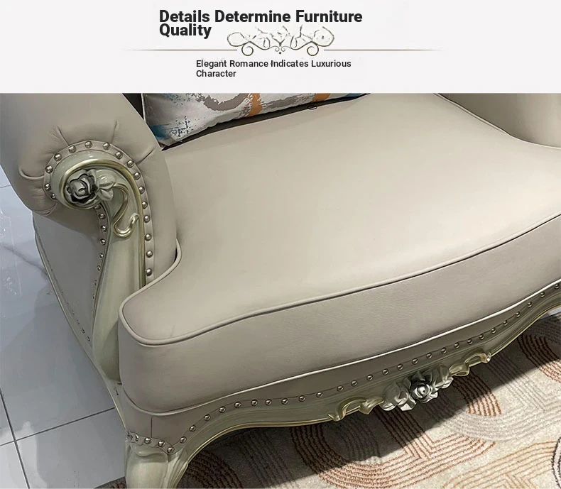 French Genuine Leather Sofa Set - 1-2-3 Combination for Villas and Small to Medium Living Spaces - Minimalist Luxury European Style Solid Wood Furniture
