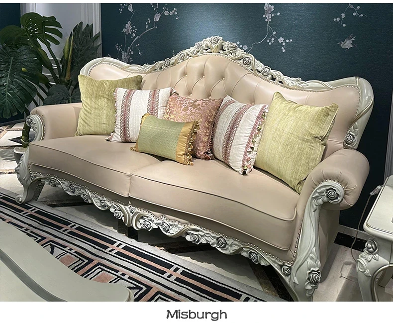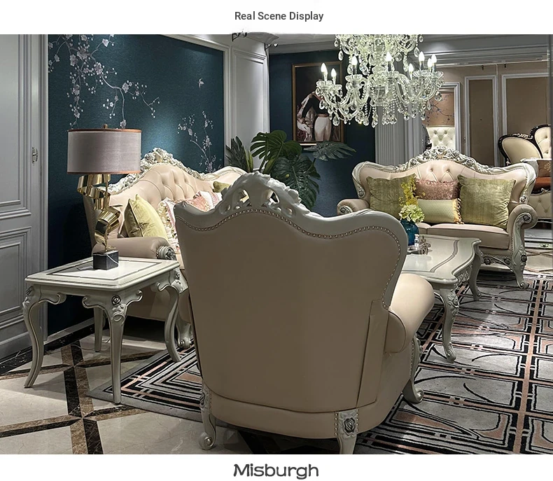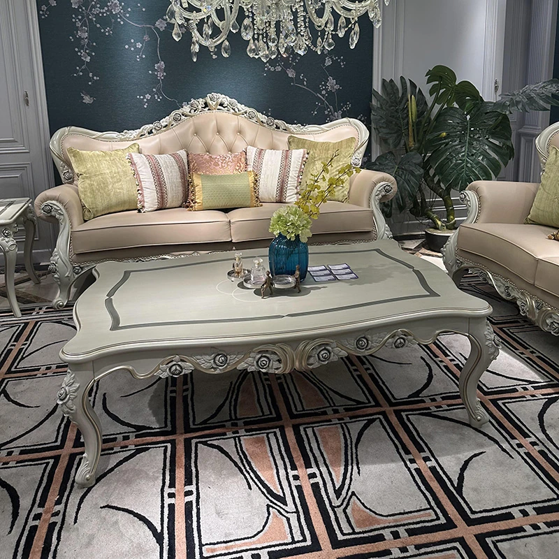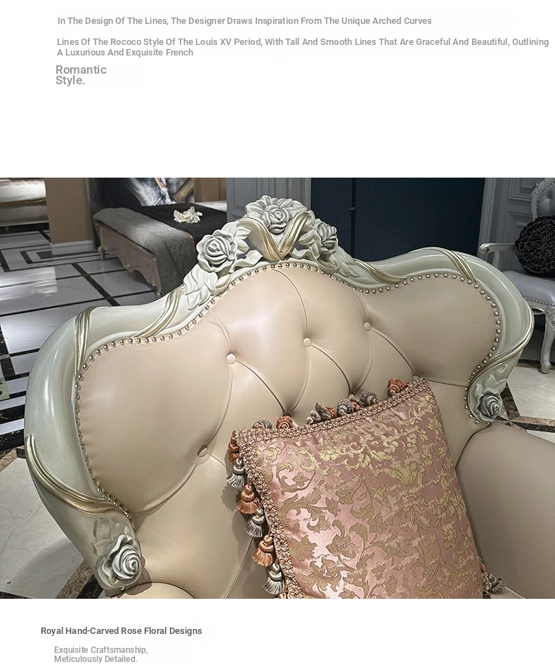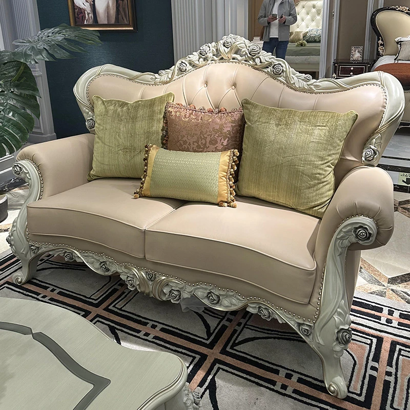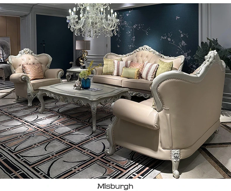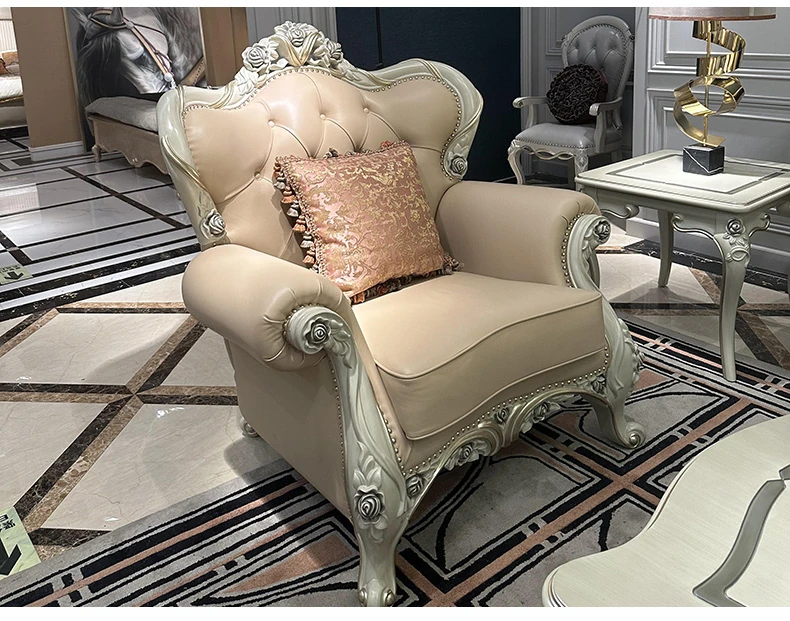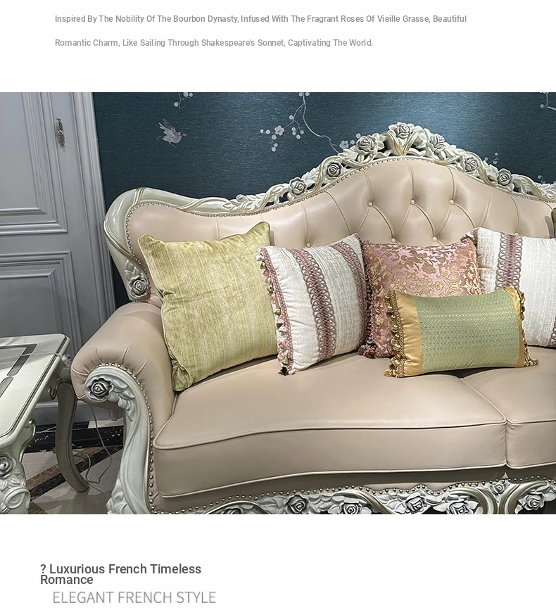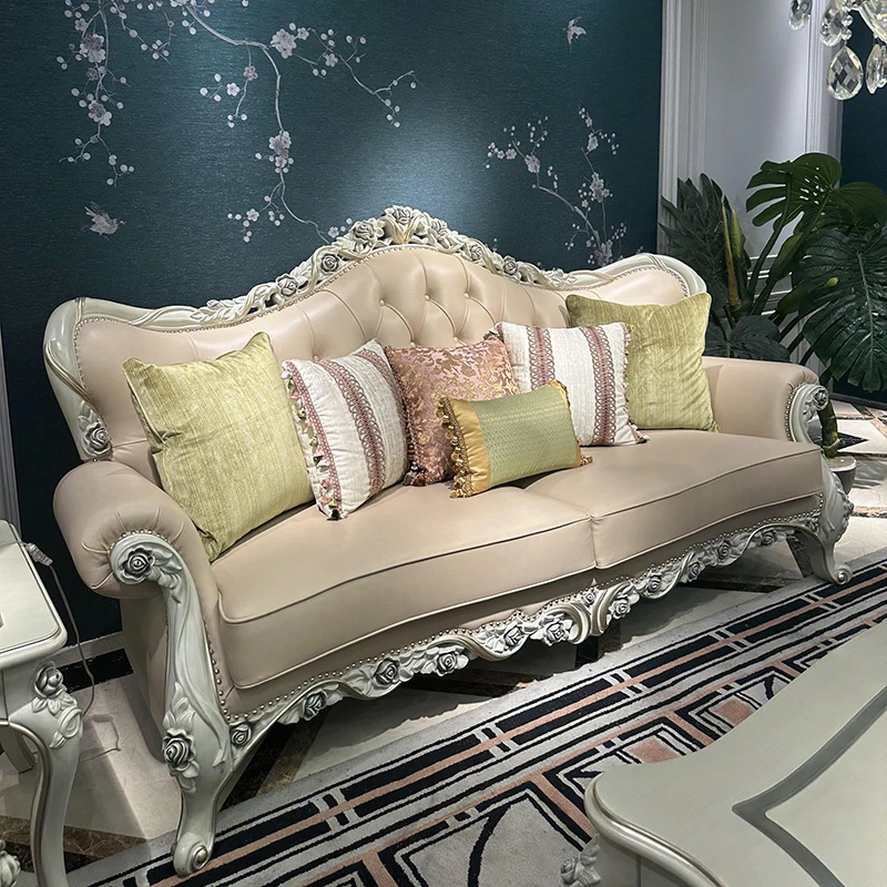 French Style Sofa - Luxurious European Genuine Leather Minimalist Solid Wood 123 Combination for Large Apartments and Villas - Comfortable Three-Seat Furniture