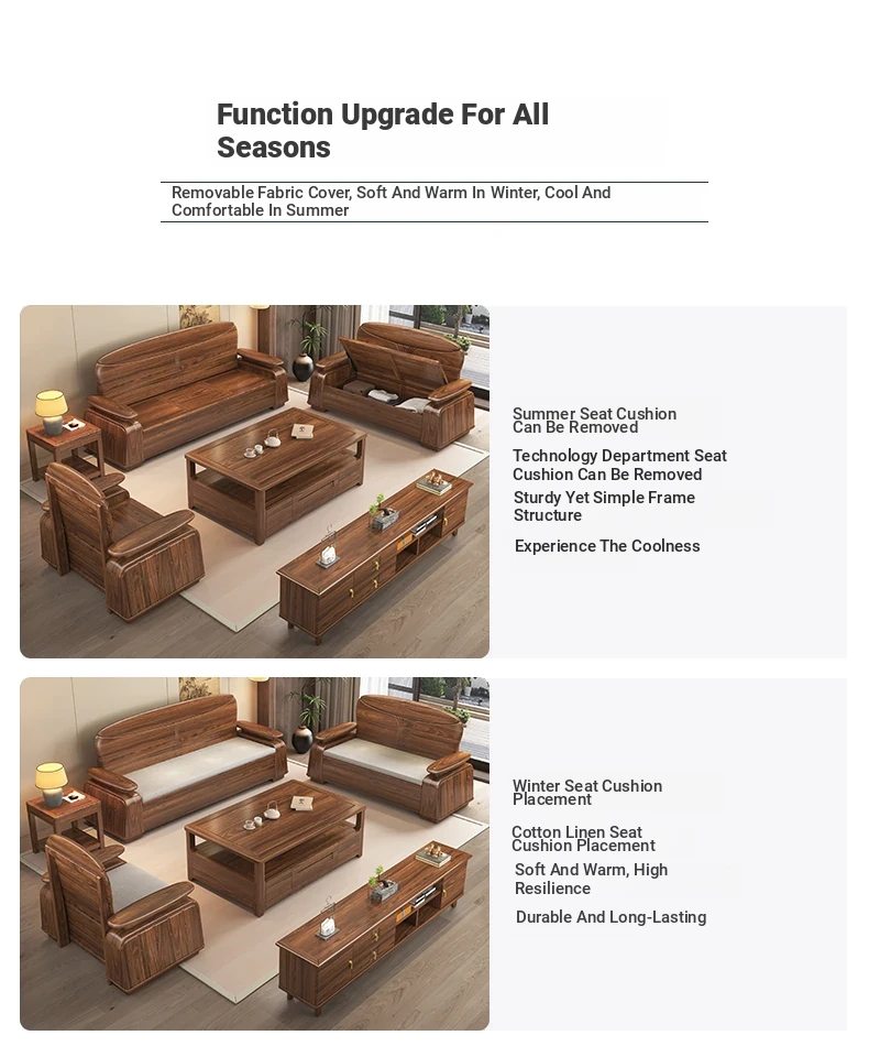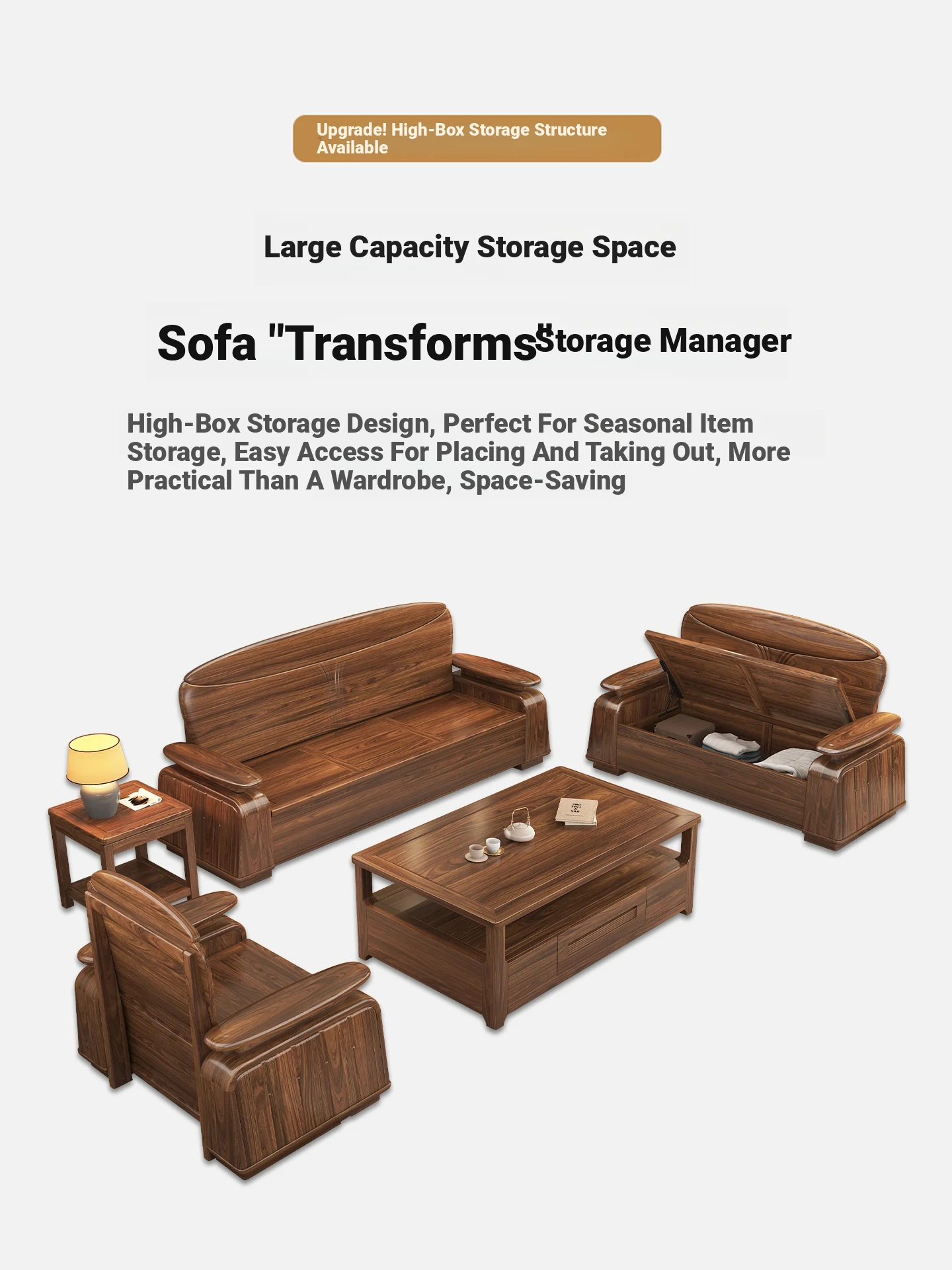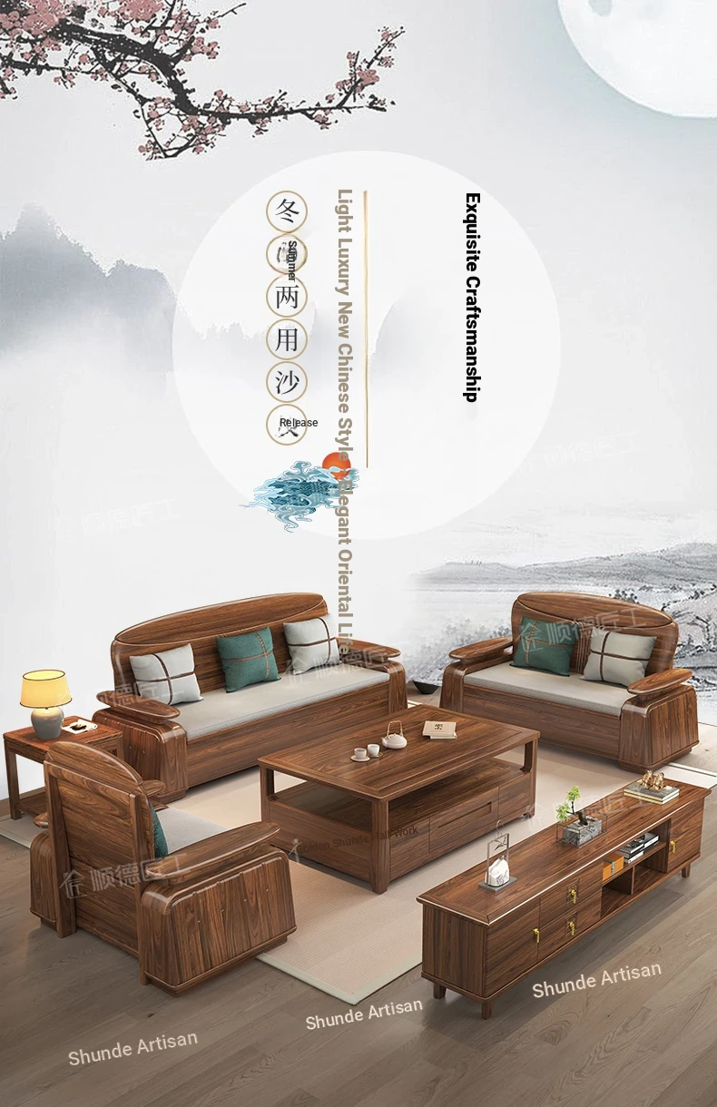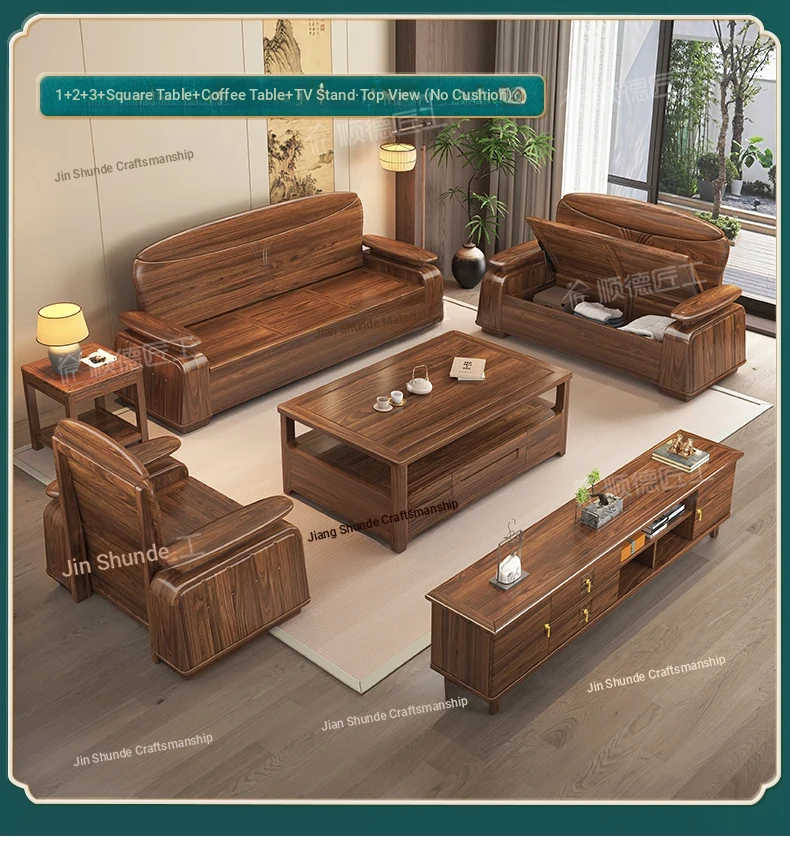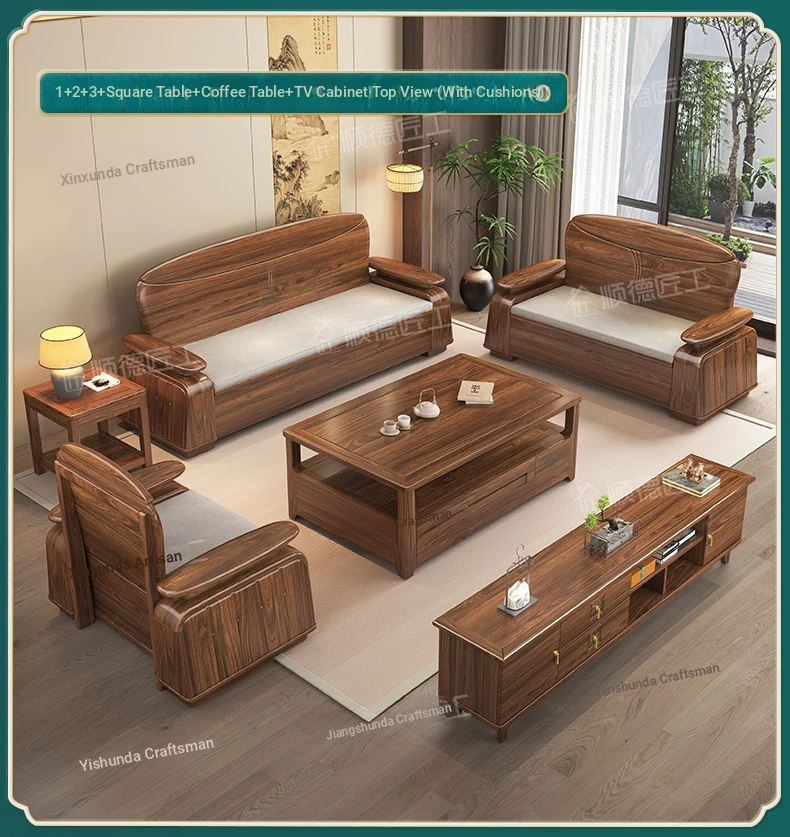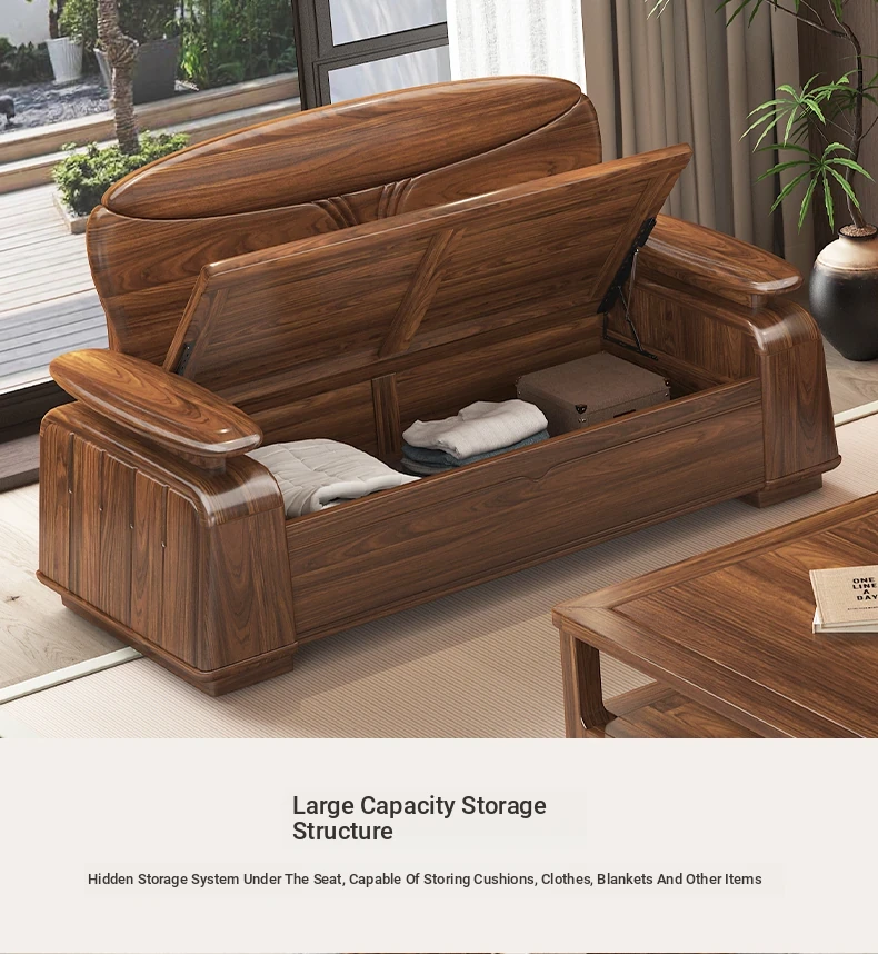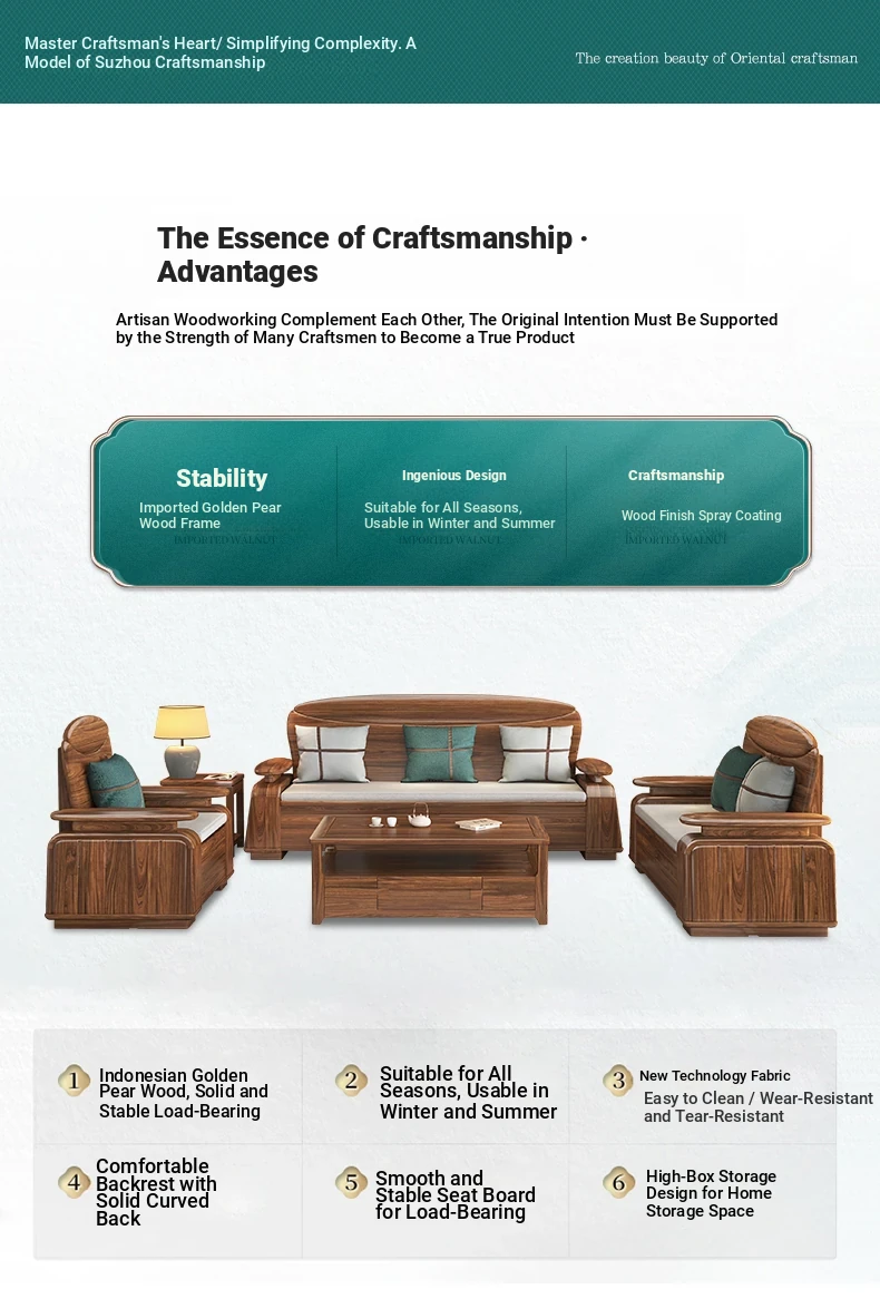 Golden Pear Wood Solid Wood Sofa Set 123 - New Chinese Style, Dual-Use for Winter & Summer, Space-Saving Storage Solution for Small Living Rooms, Premium Rosewood Furniture