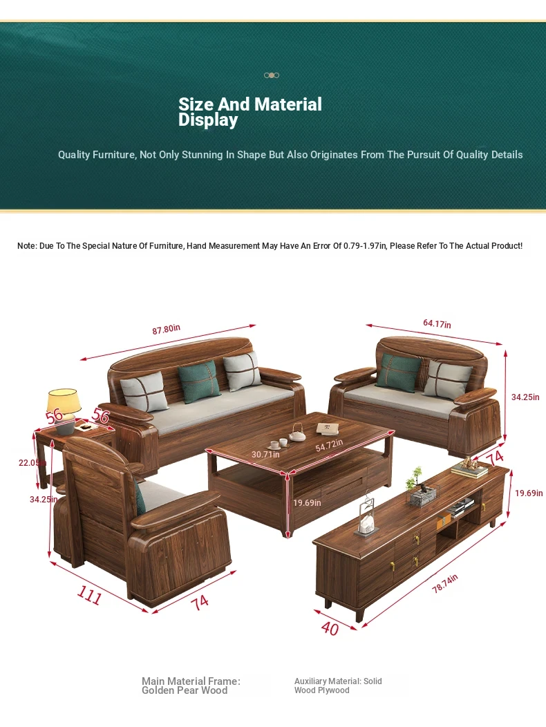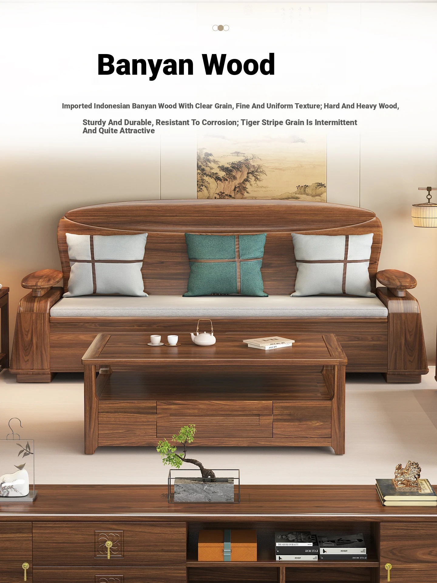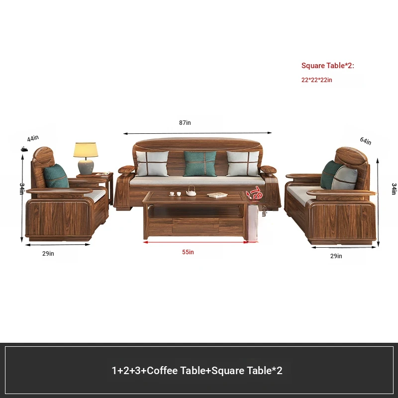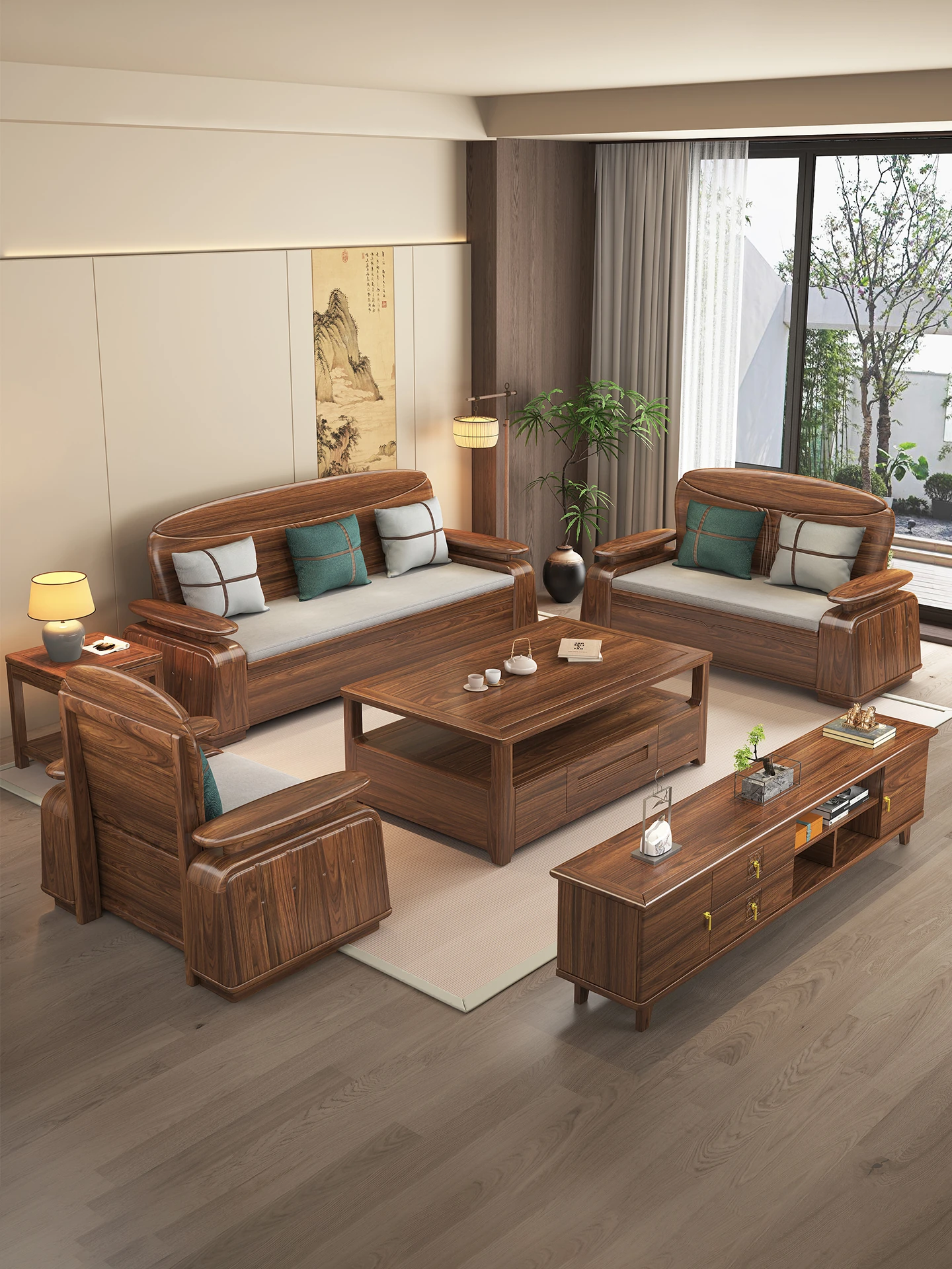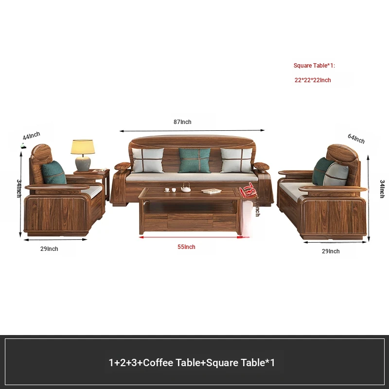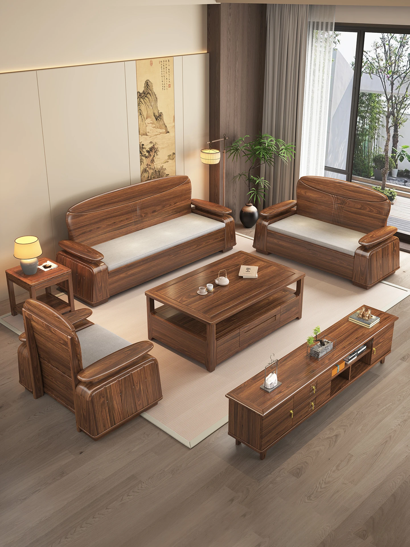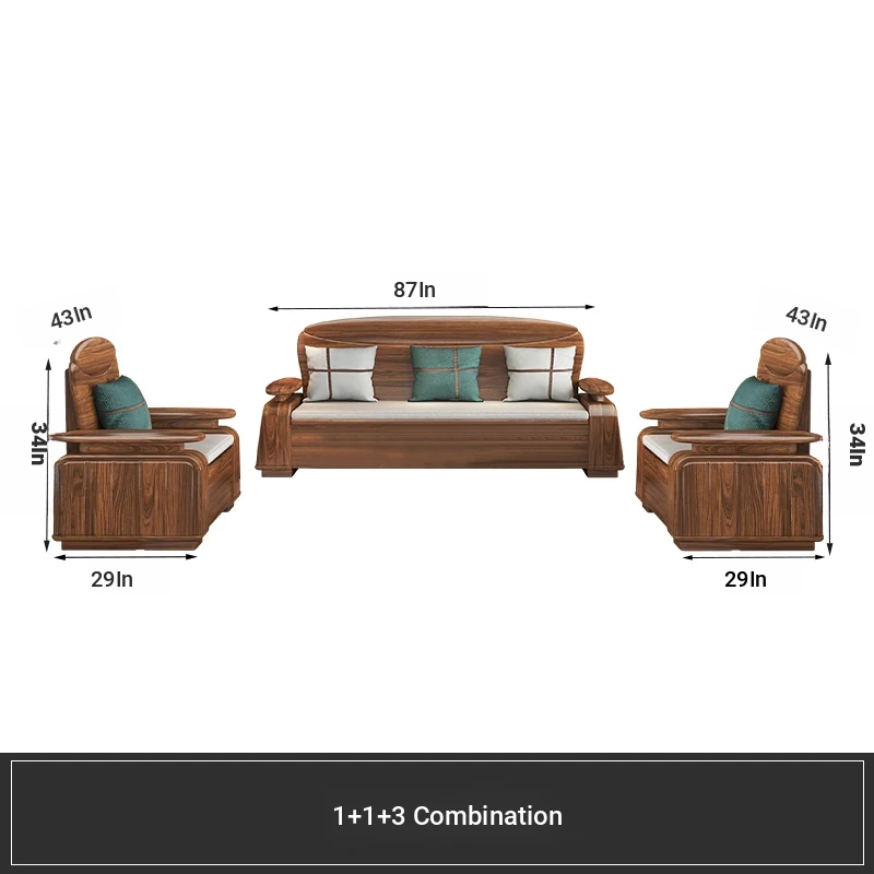 Golden Pear Wood Solid Wood Sofa Set 123 - New Chinese Style, Dual-Use for Winter & Summer, Space-Saving Storage Solution for Small Living Rooms, Premium Rosewood Furniture