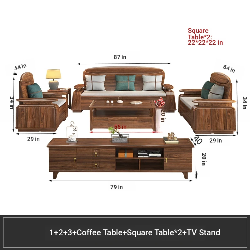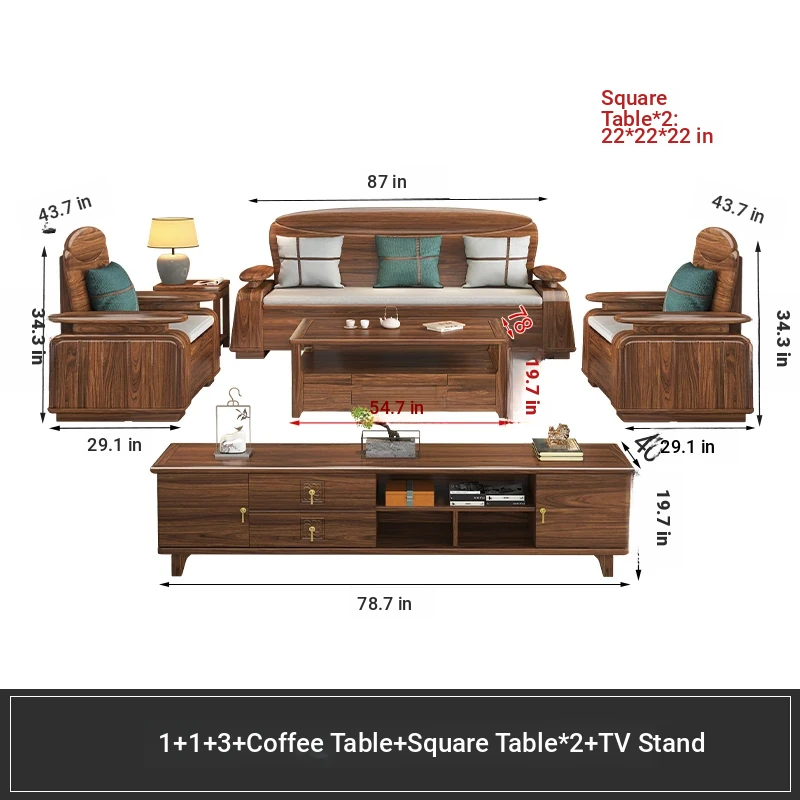 1+1+3 + coffee table + square * 2 + TV cabinet