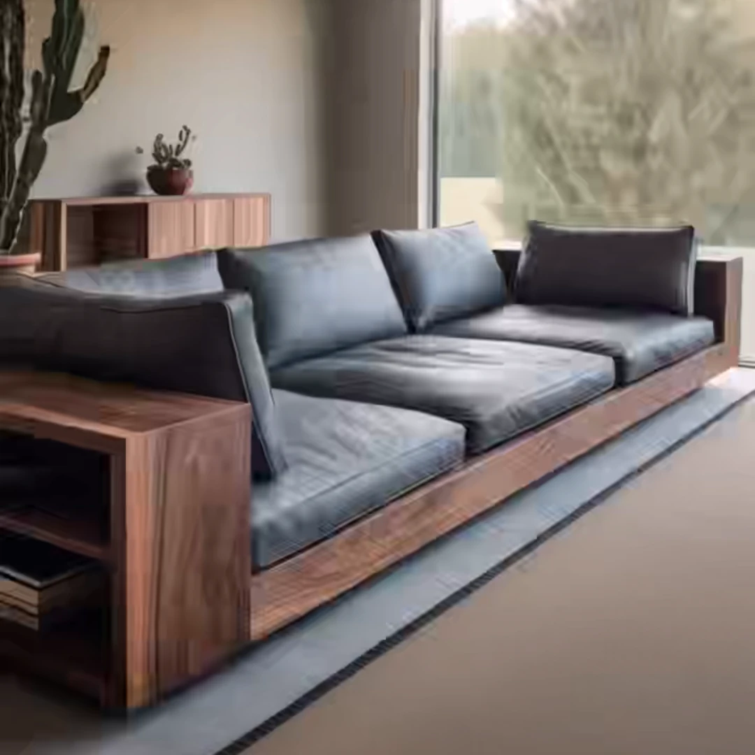 High-End Modern Black Walnut Sofa Set - Solid Wood Zen Style Furniture for Luxurious Hotels and Villas, Perfect for Any Size Living Room