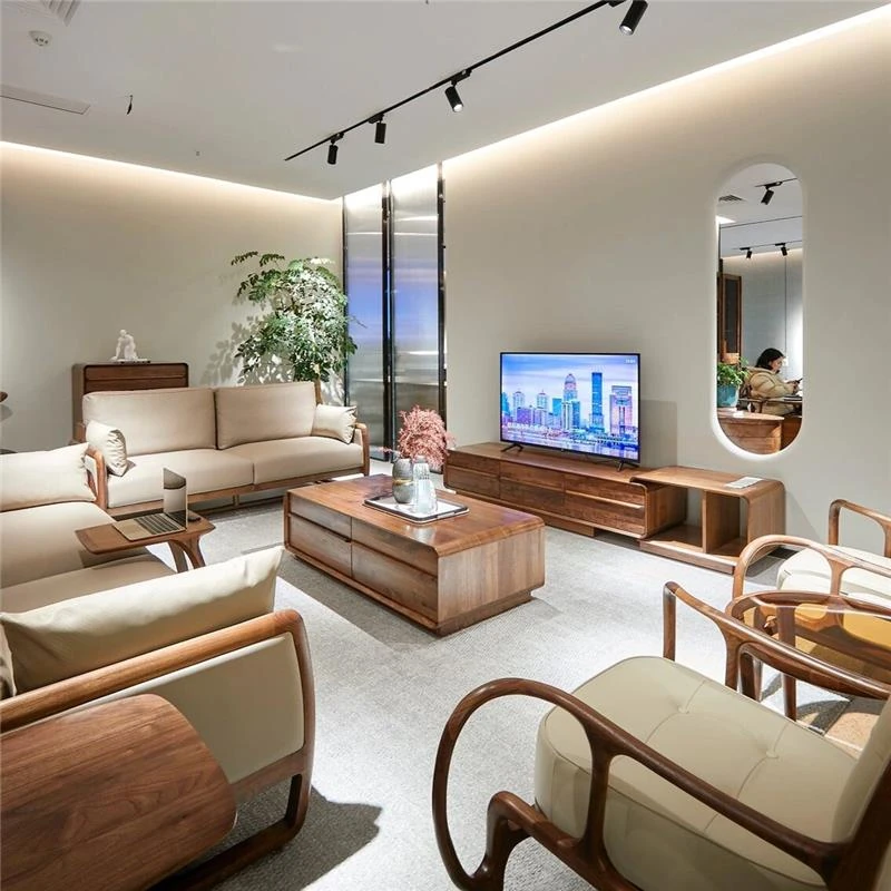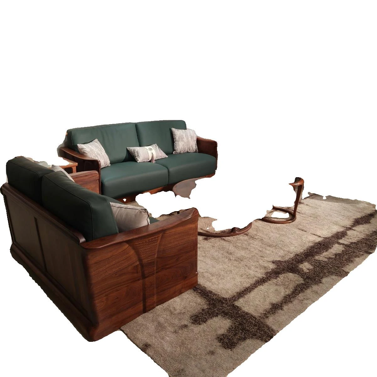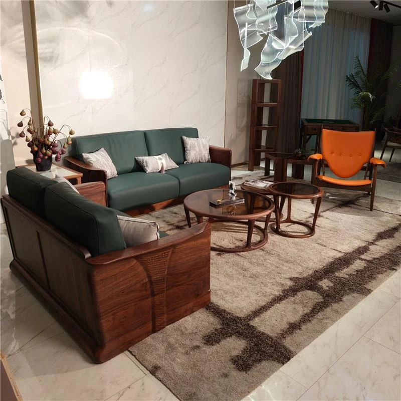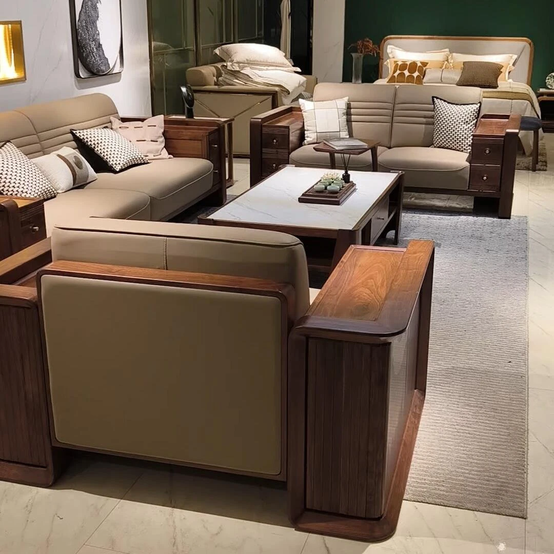 High-End Modern Solid Wood Sofa Set in North American Black Walnut – New Chinese Style Living Room Furniture for Spacious Villas and Large Homes