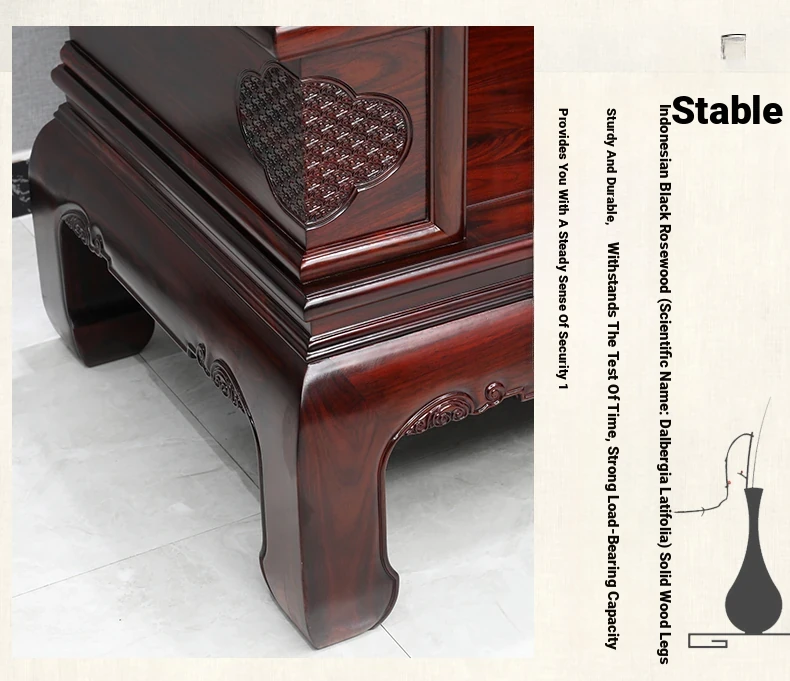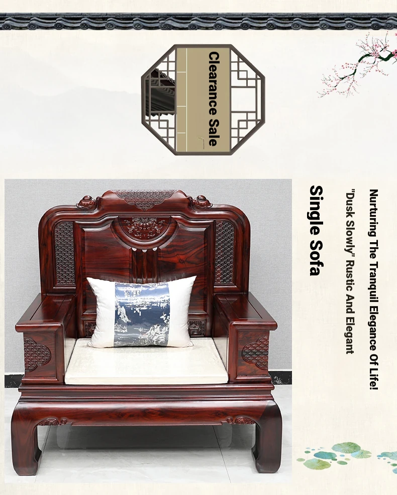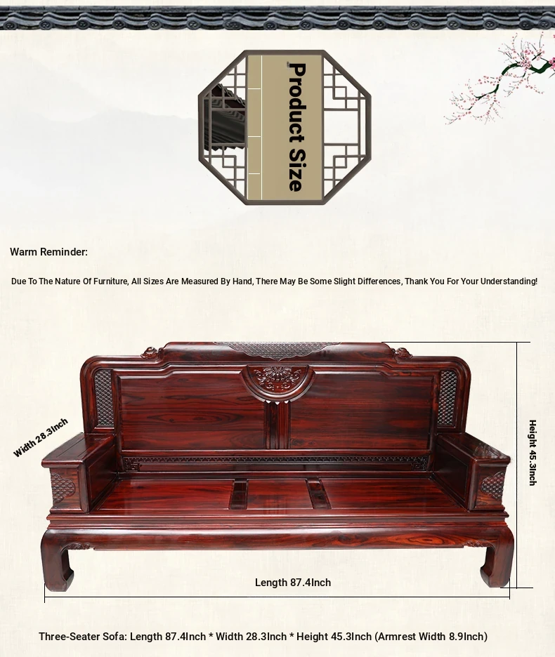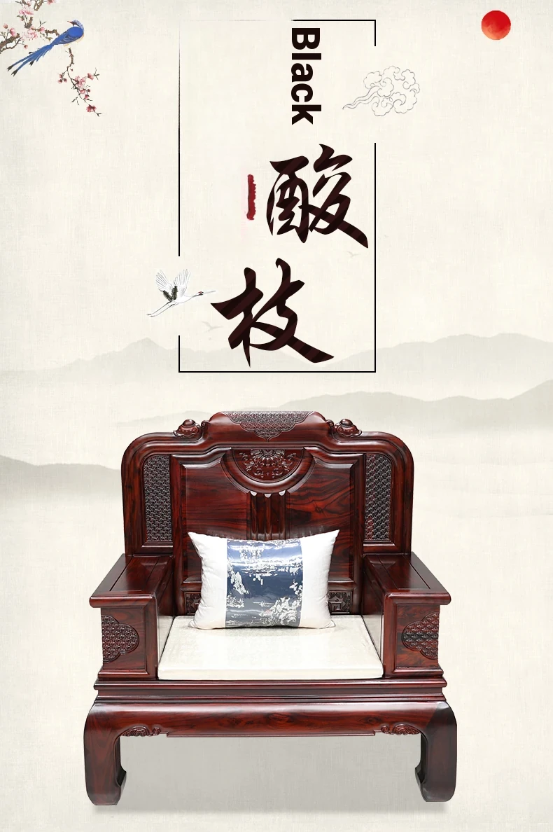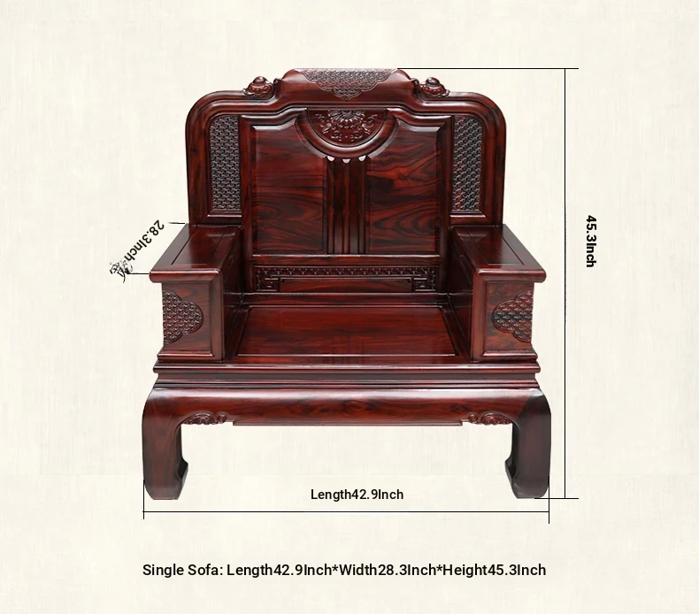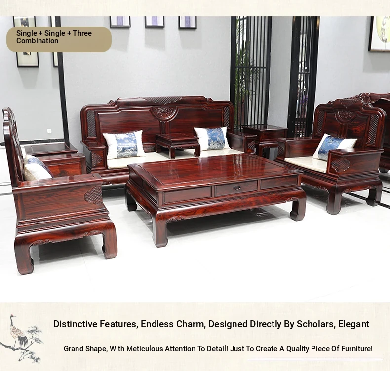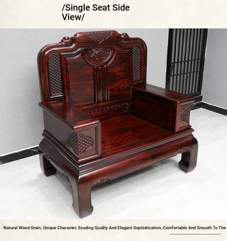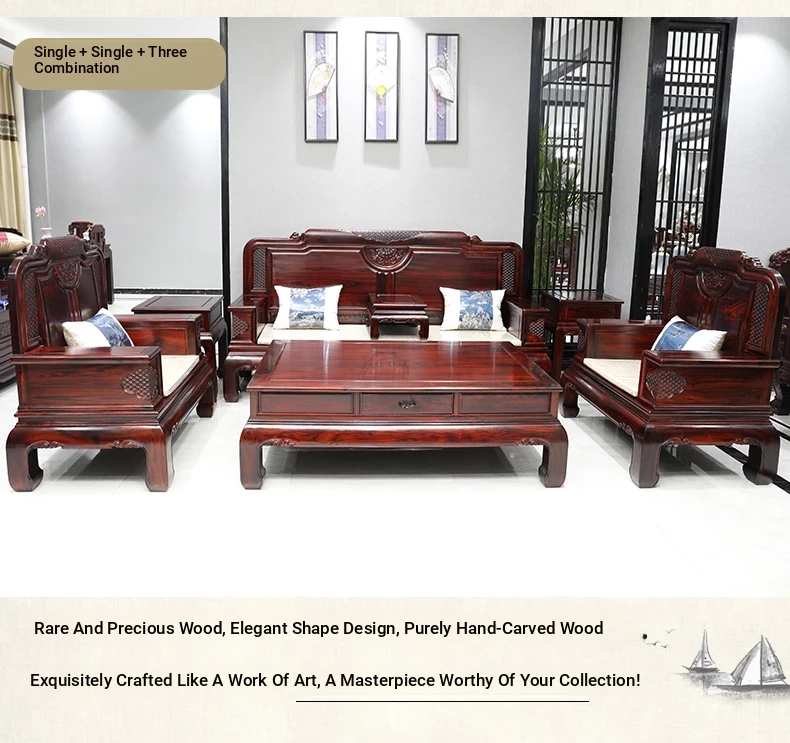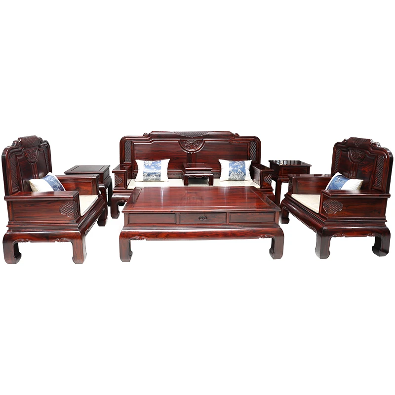 Indonesian Black Rosewood Antique Sofa Set - Luxurious Red Sandalwood Living Room Furniture, Exquisite Design, National Standard Hardwood, Perfect for Elegant Interiors