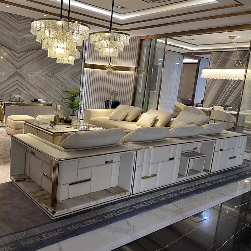 138.98in*196.85in corner sofa [Import full leather + Sensor lamp + Pandora luxury Stone]]
