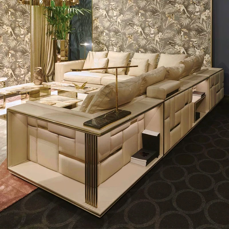 Italian Babylon Corner Velvet Leather Sofa - Modern Post-Industrial Design for Luxury Villas and Spacious Living Rooms - Embrace Elegance and Comfort in Your Home