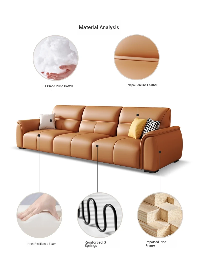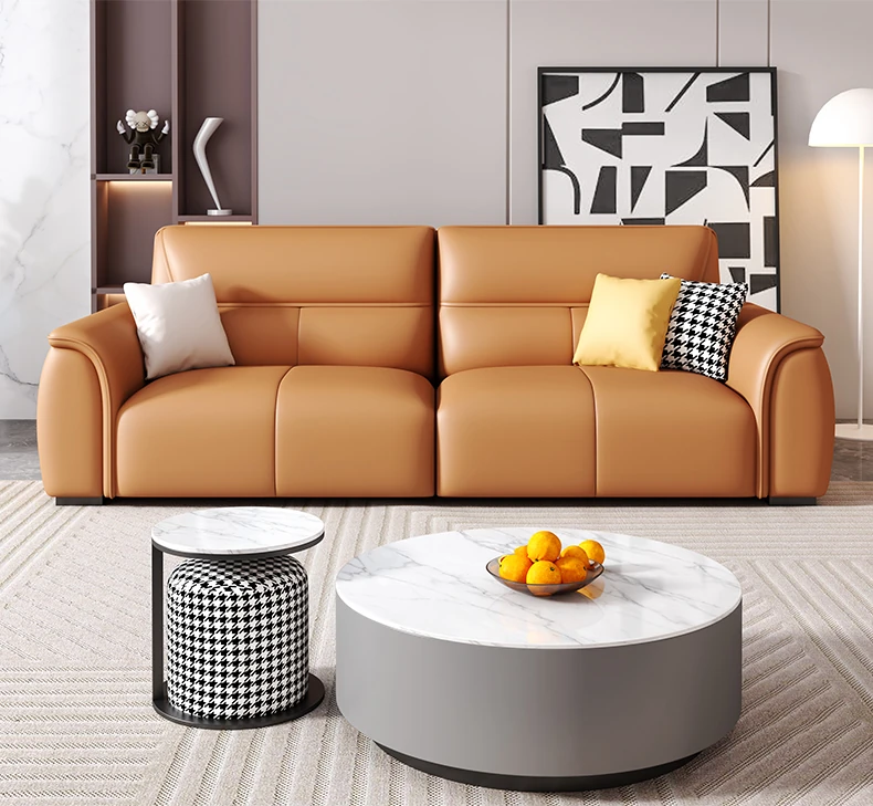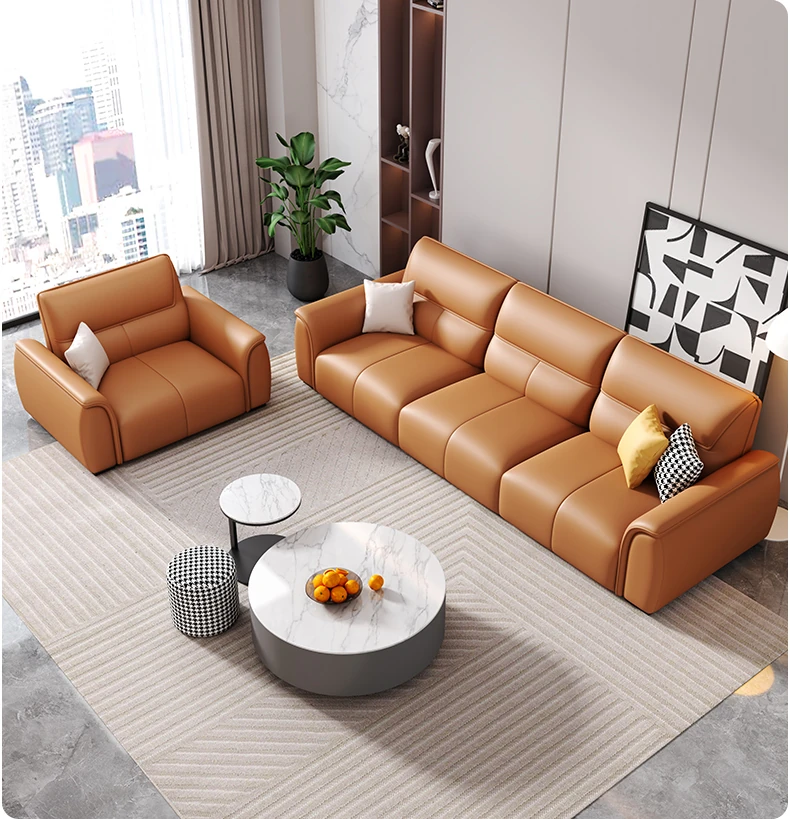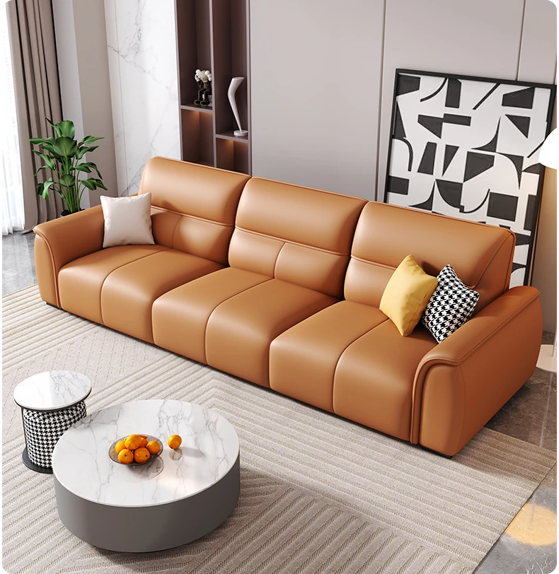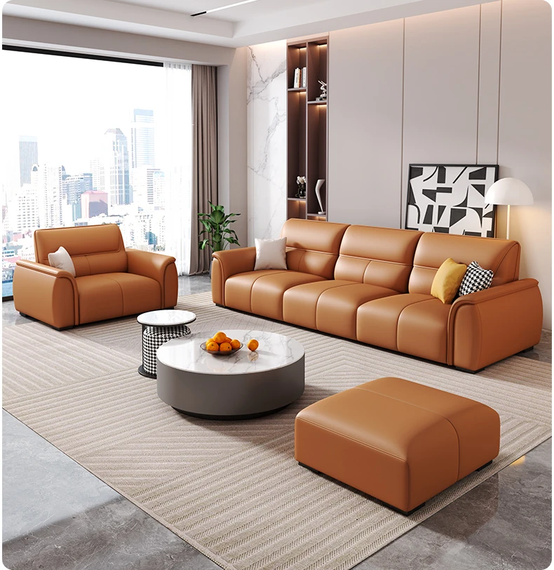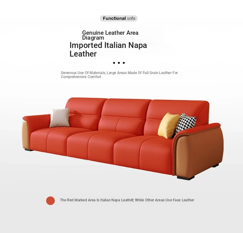 Italian Genuine Leather Trendy Sofa for Small Spaces – Modern Minimalist Design with Top-Grade Cowhide for a Sleek Living Room. Perfect for Compact Areas and Stylish Comfort!