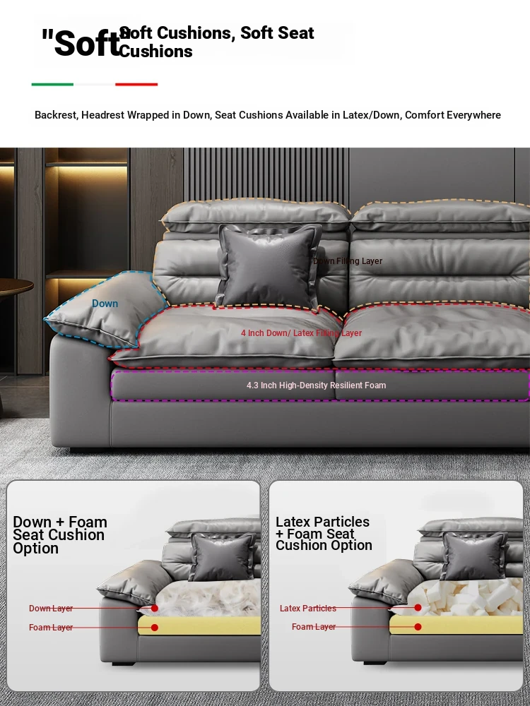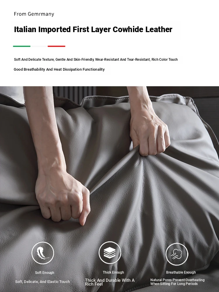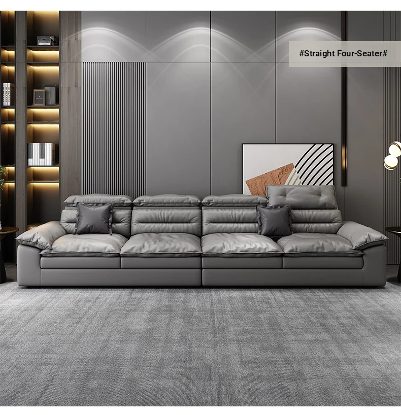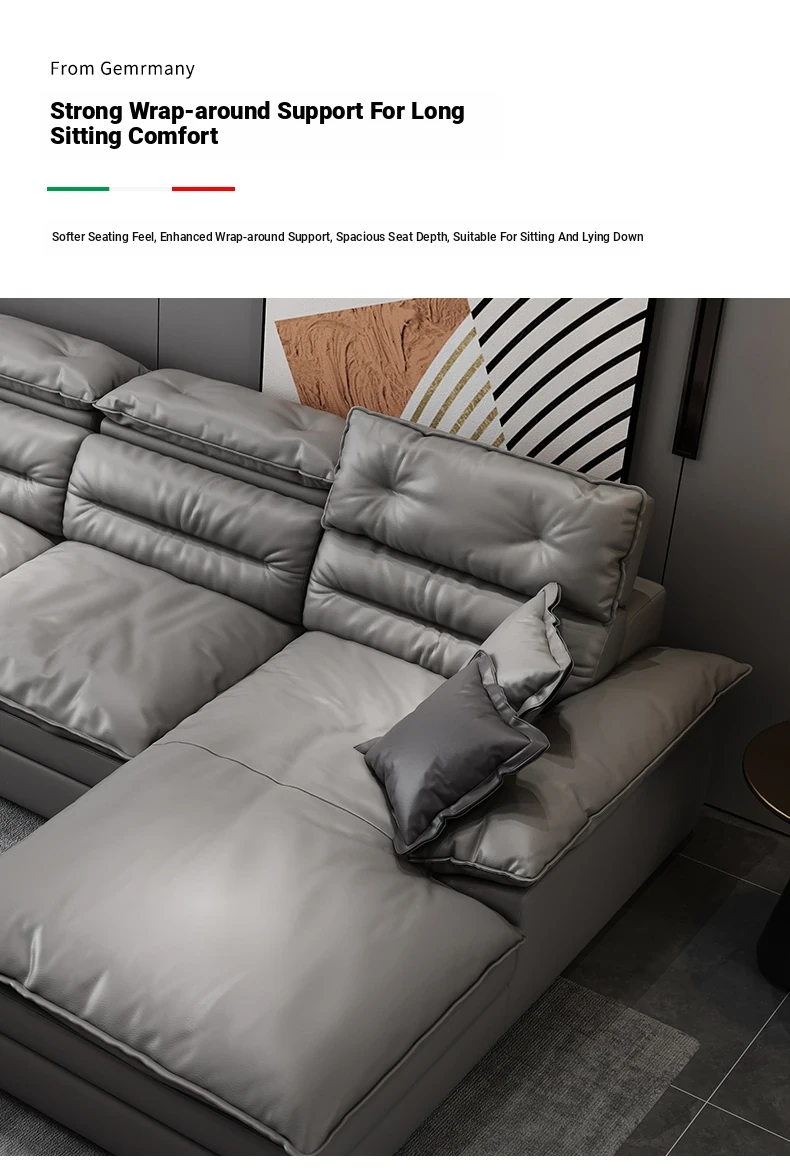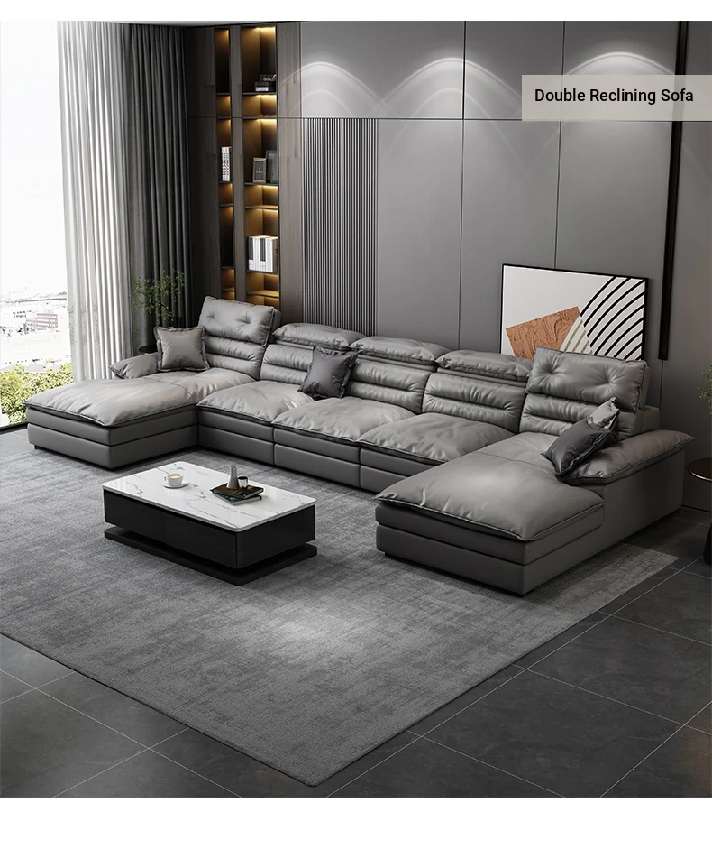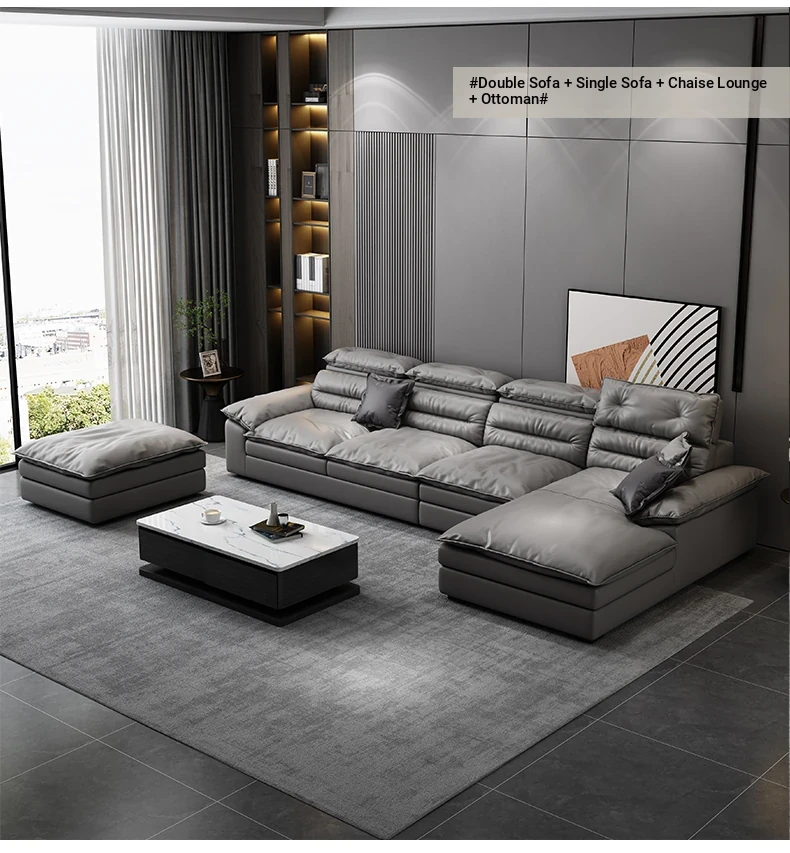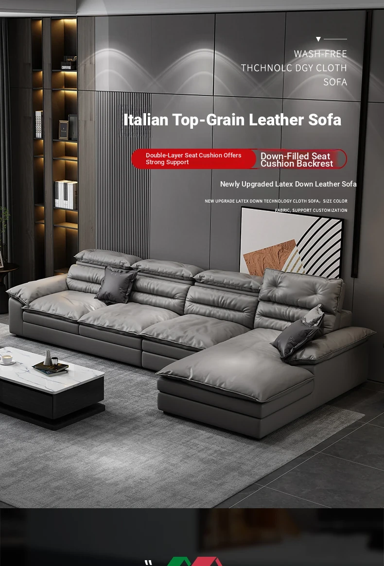 Italian Imported Genuine Leather Sofa - Modern Minimalist Design with Double Chaise, Luxurious Down and Latex Softness Perfect for Your Living Room