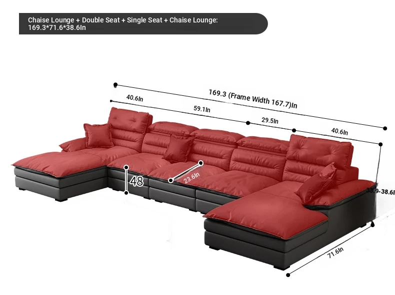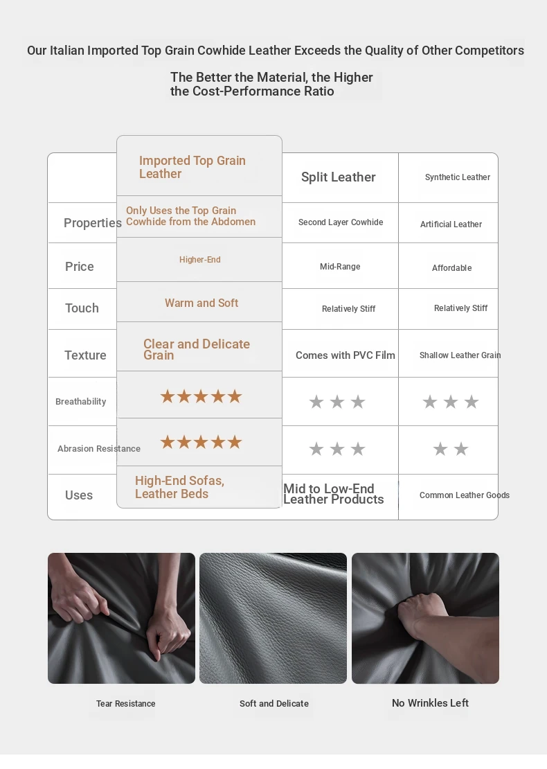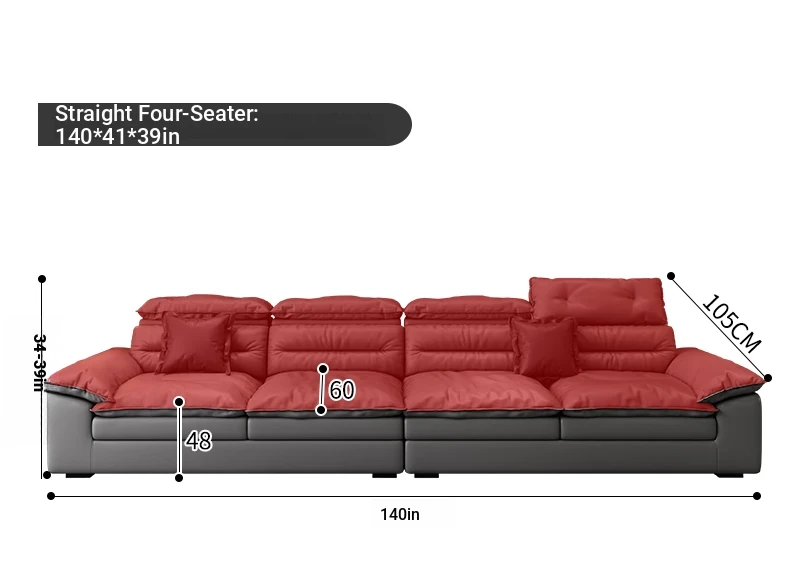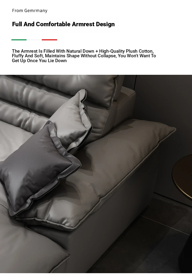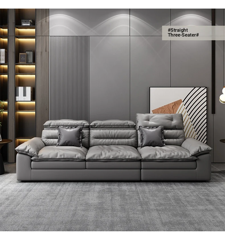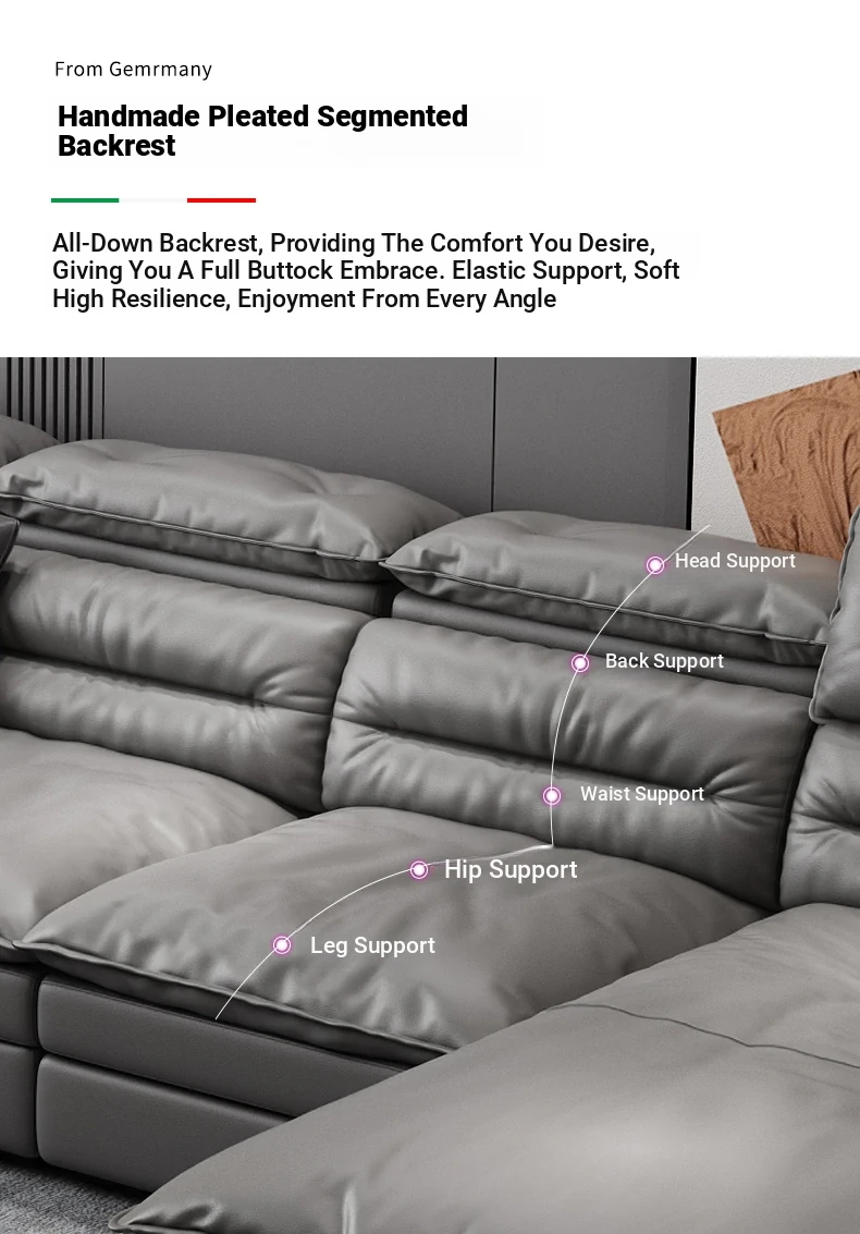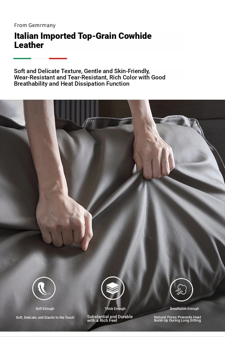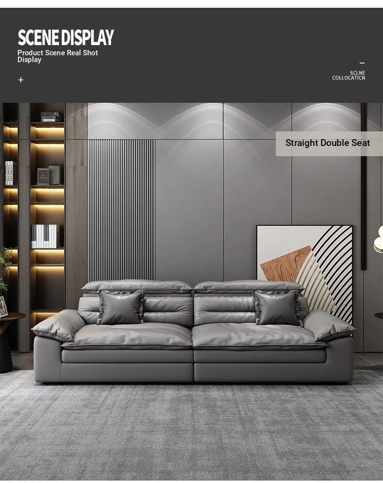 Italian Imported Genuine Leather Sofa - Modern Minimalist Design with Double Chaise, Luxurious Down and Latex Softness Perfect for Your Living Room