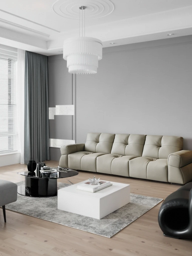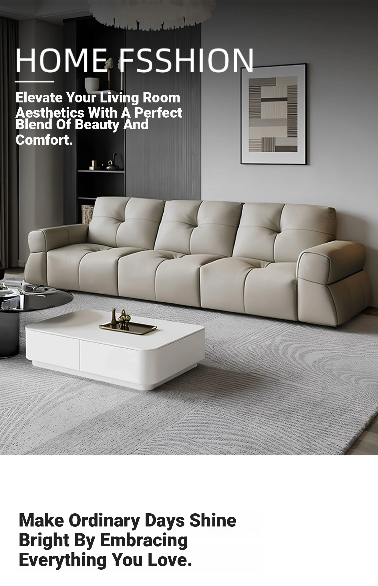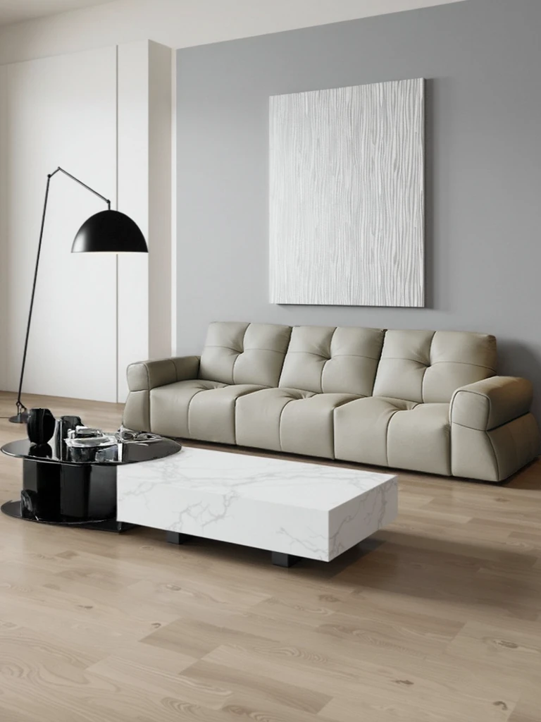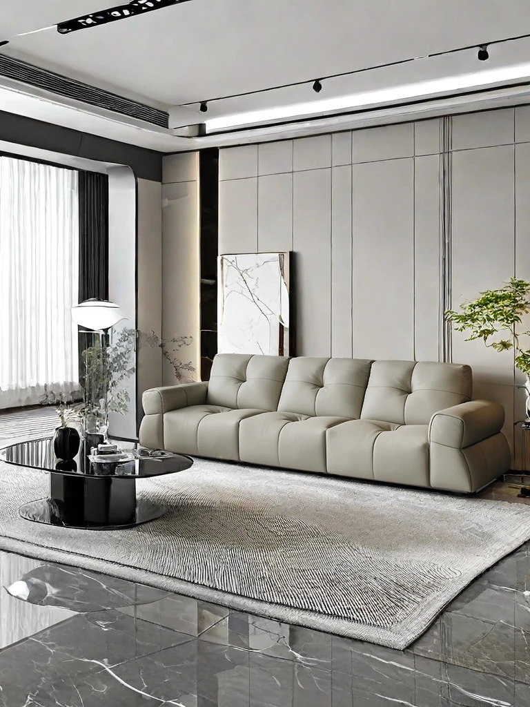 Italian Luxury Modern Minimalist Top-Grain Leather Sofa Set - Stylish Straight Sofa for Living Room, Trending Furniture Piece in Premium Leather