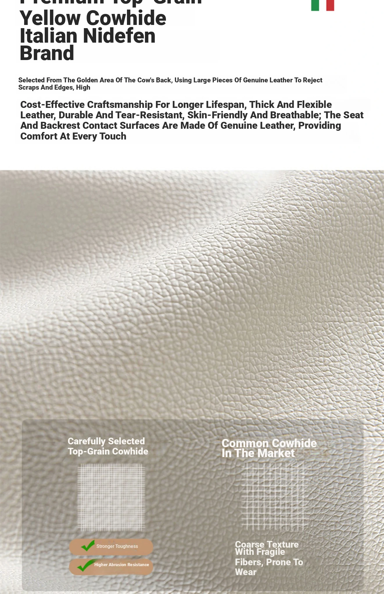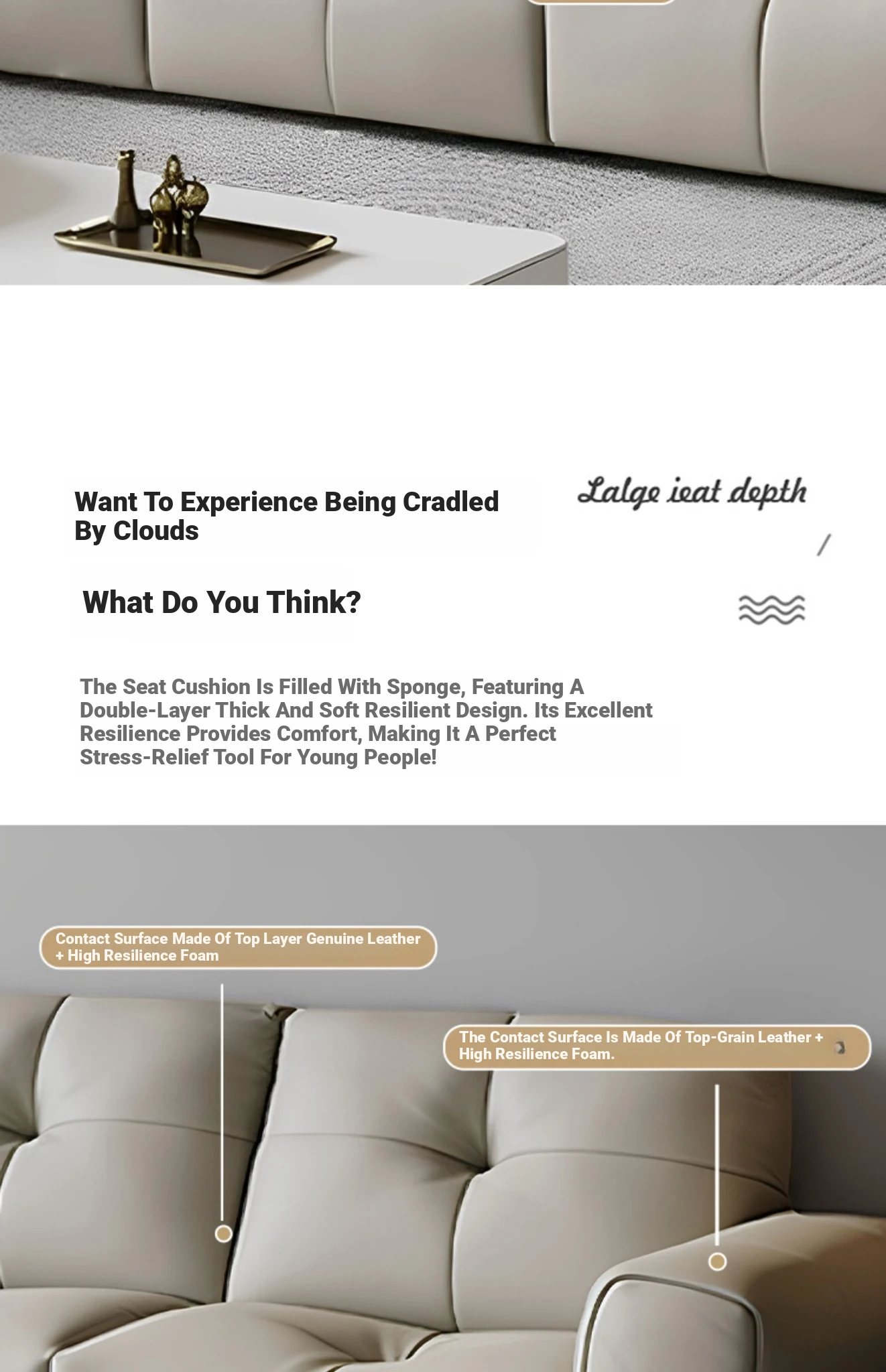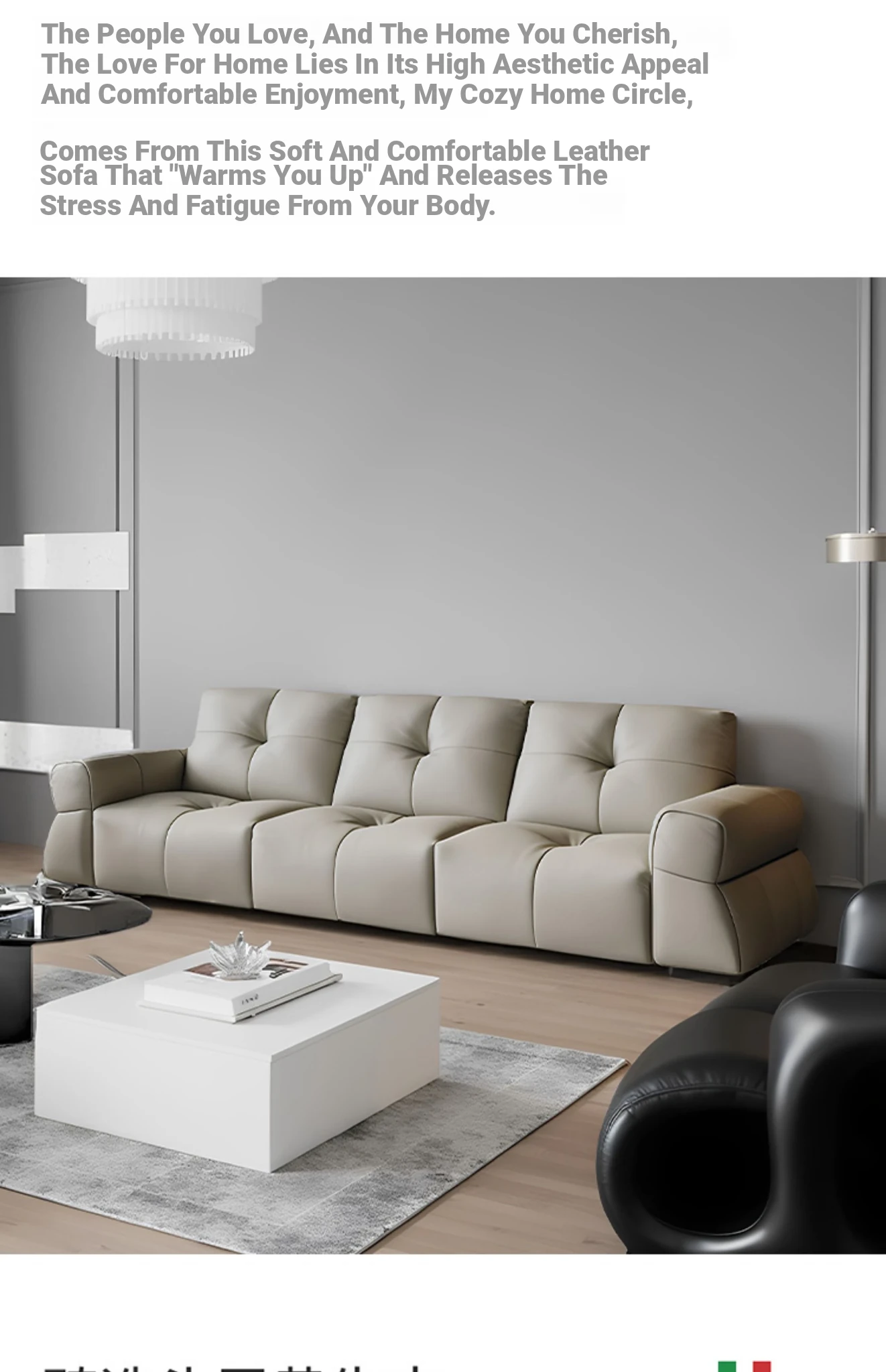Italian Luxury Modern Minimalist Top-Grain Leather Sofa Set - Stylish Straight Sofa for Living Room, Trending Furniture Piece in Premium Leather