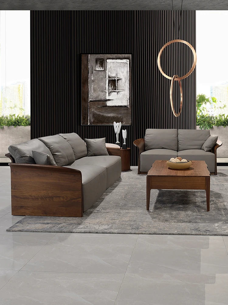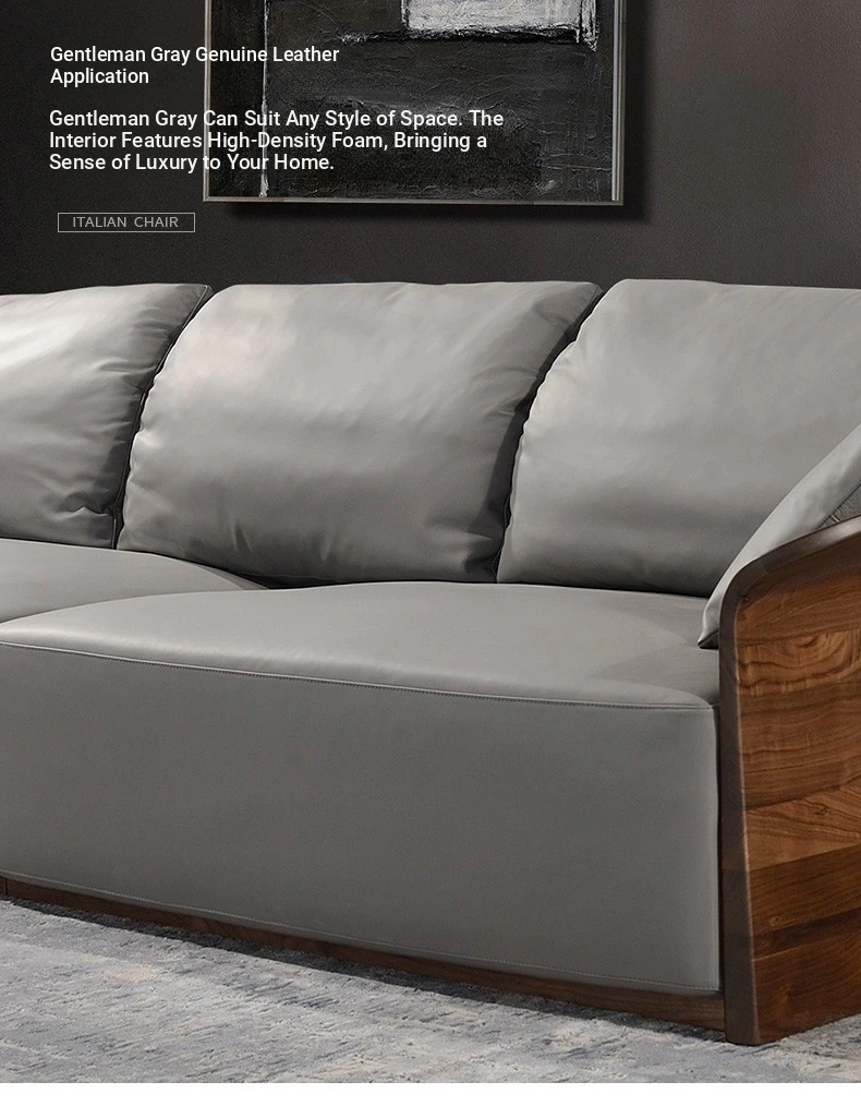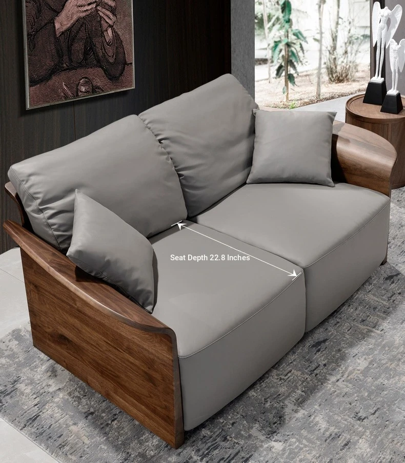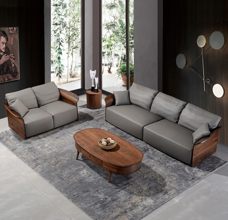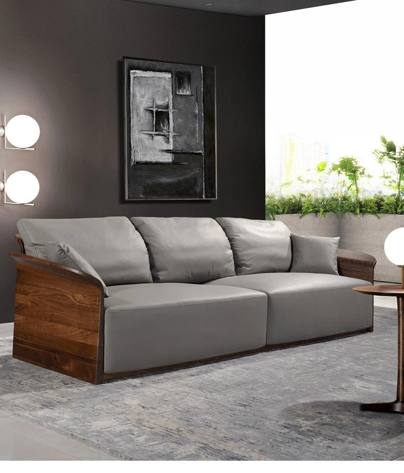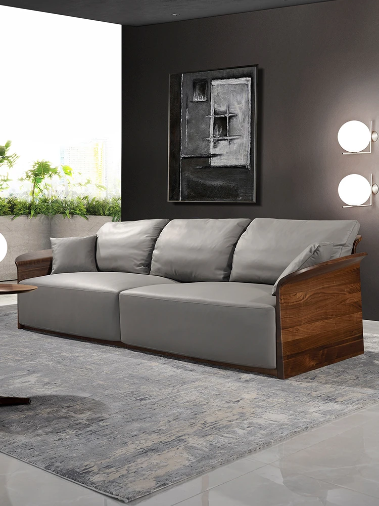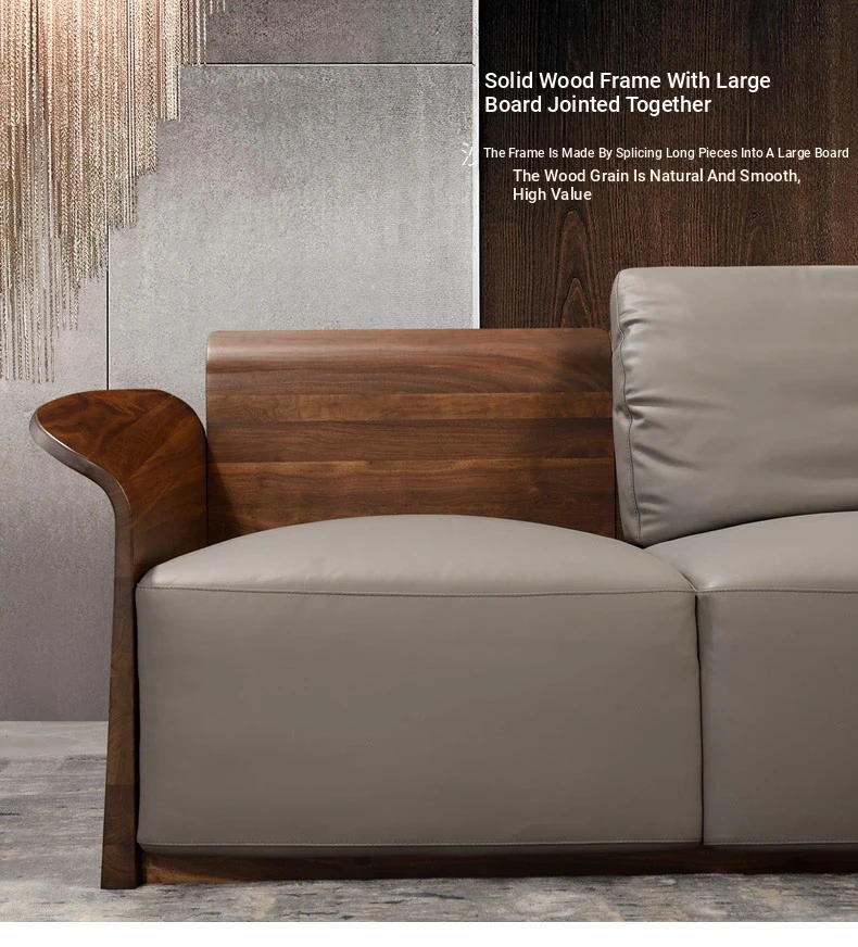 Italian Luxury Solid Wood Sofa with Genuine Top-Grain Leather - Scandinavian Style Living Room Furniture in Premium North American Black Walnut