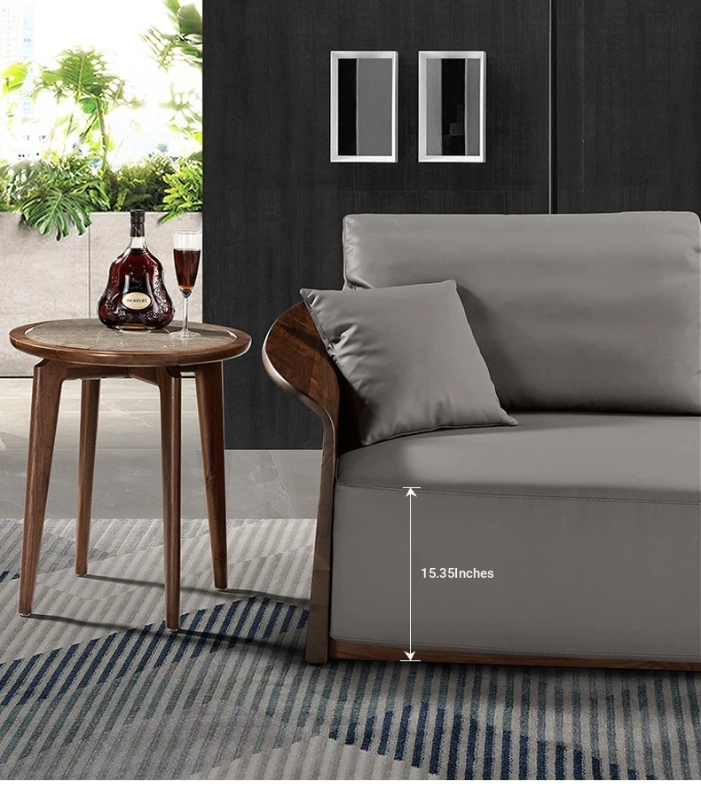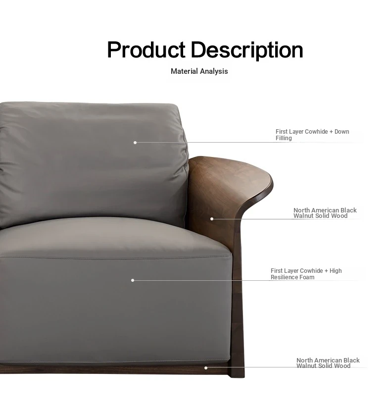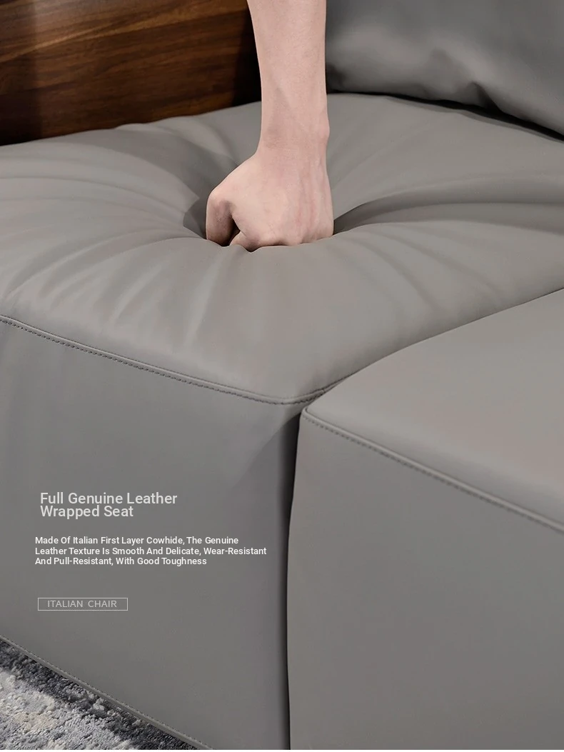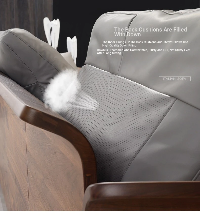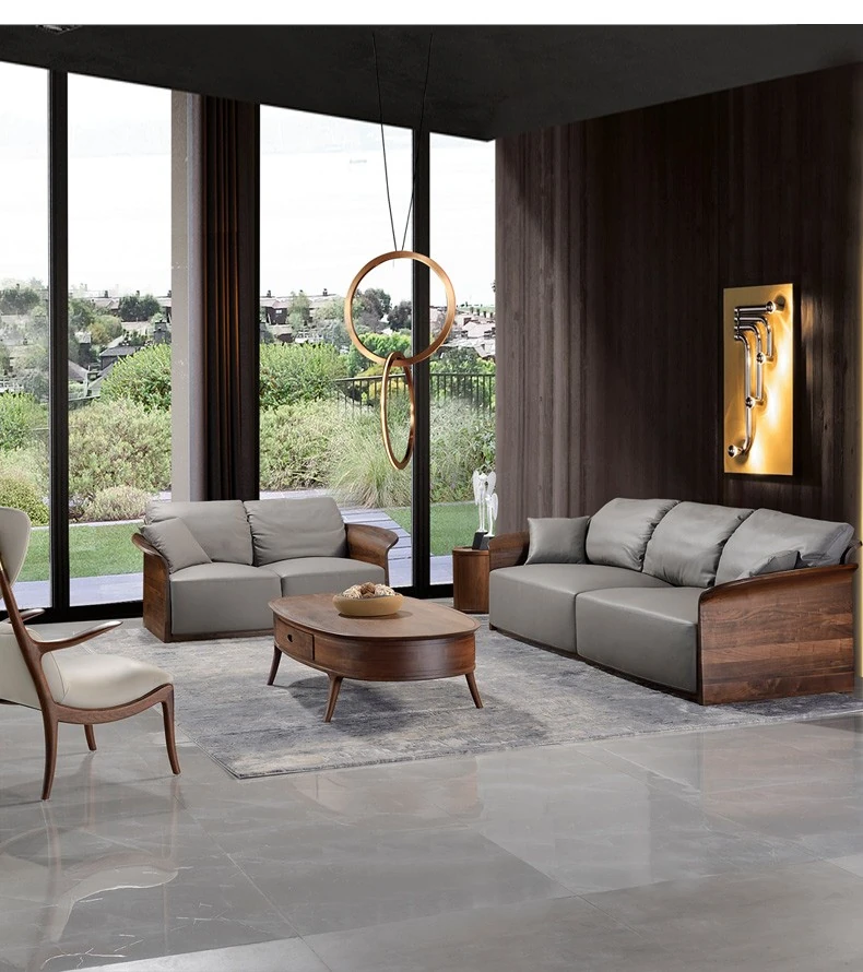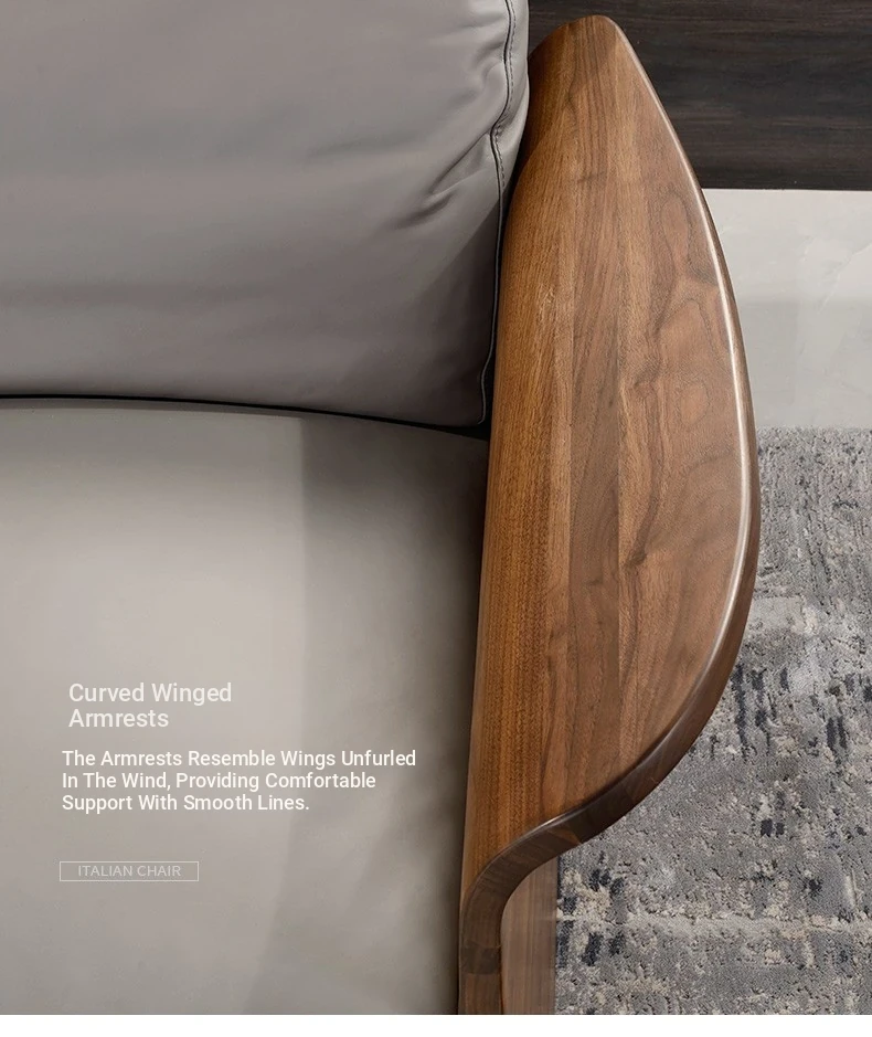 Italian Luxury Solid Wood Sofa with Genuine Top-Grain Leather - Scandinavian Style Living Room Furniture in Premium North American Black Walnut