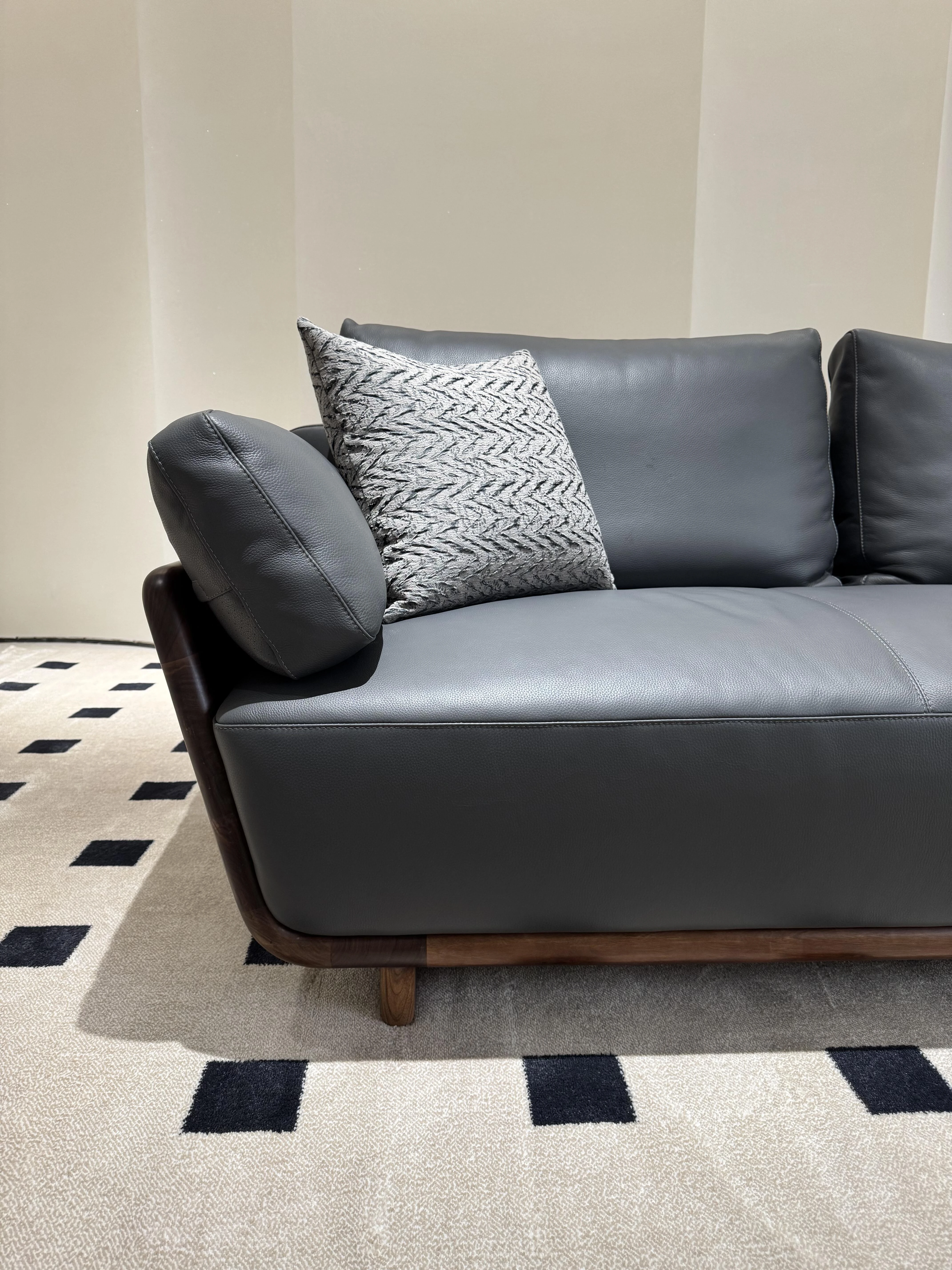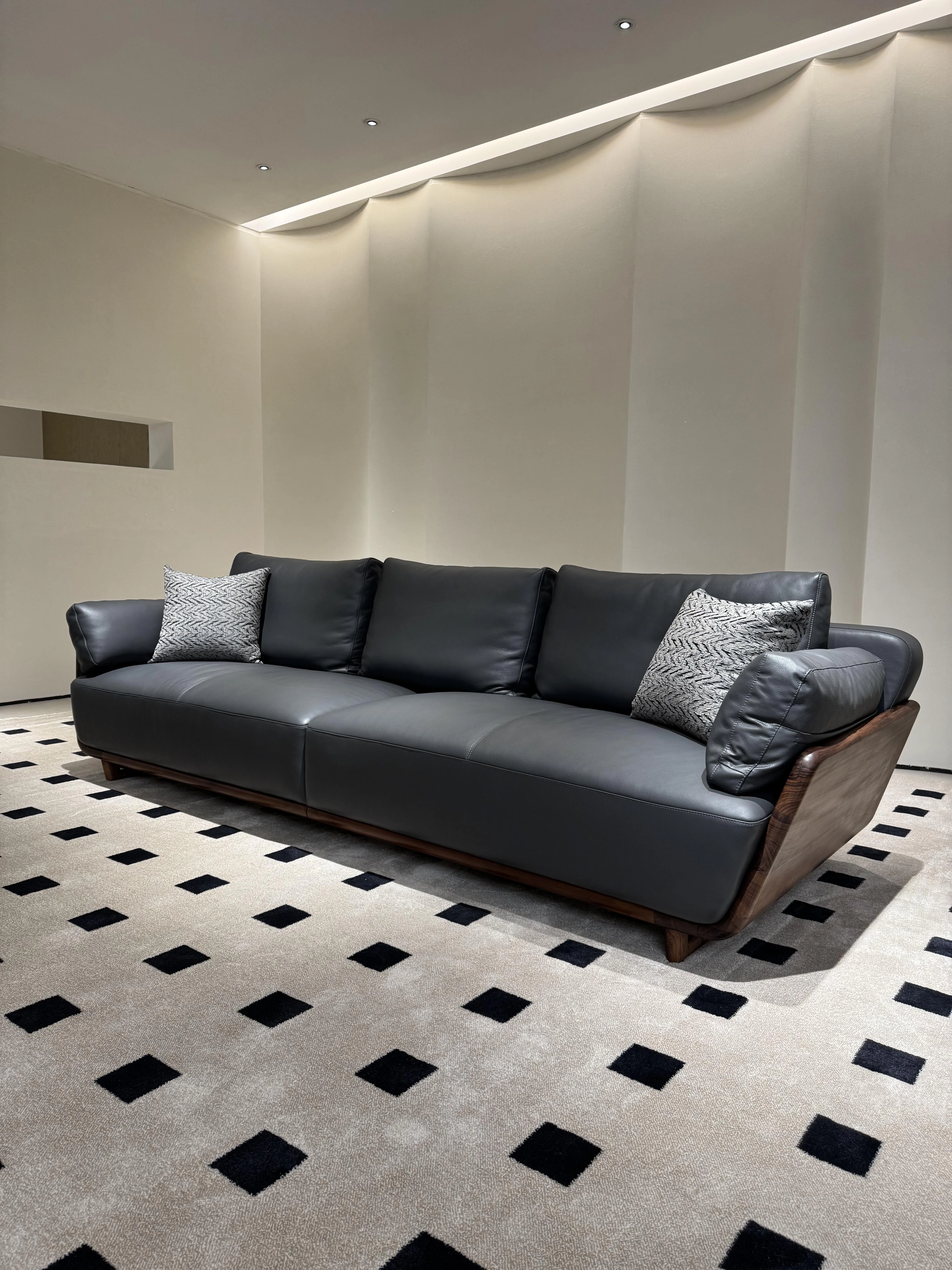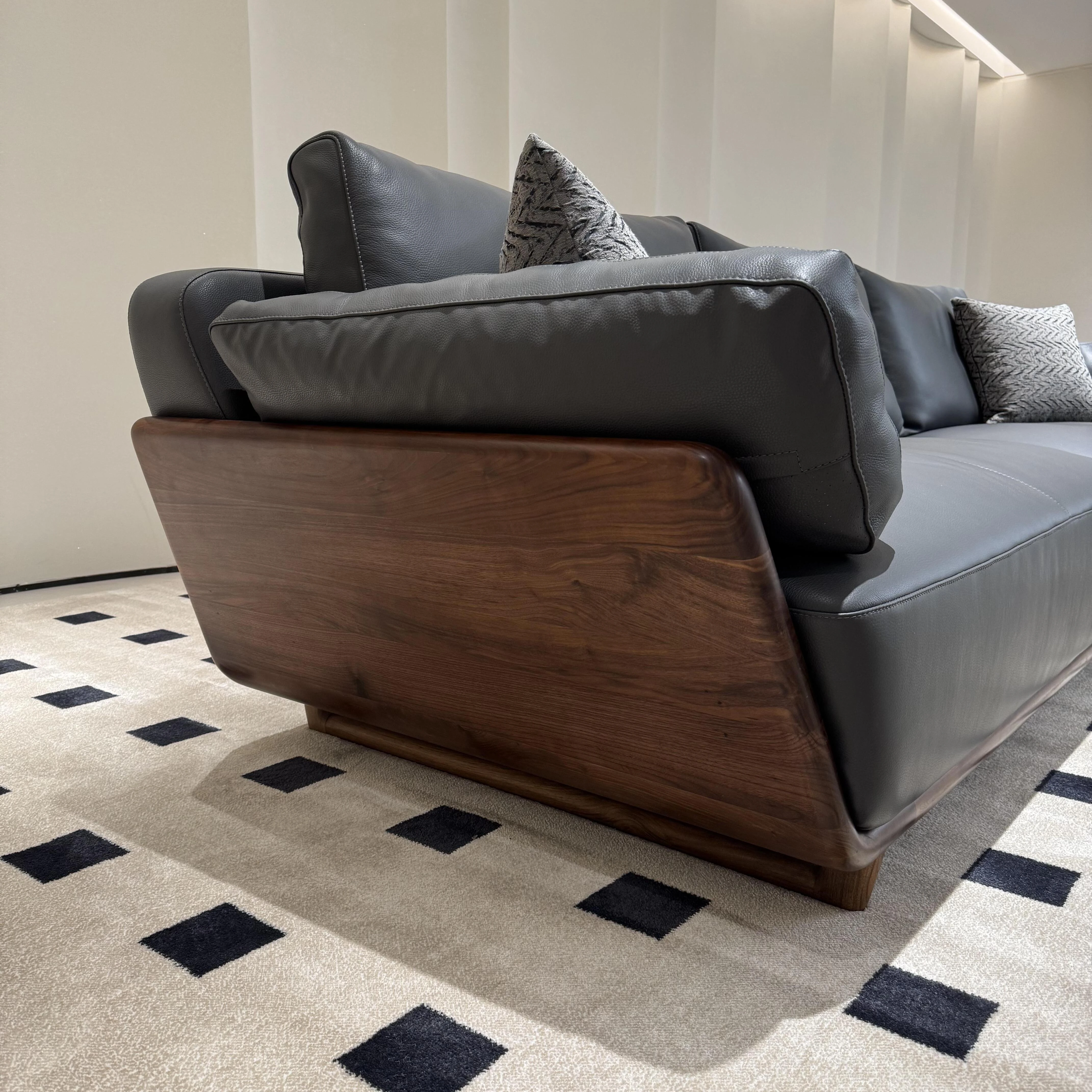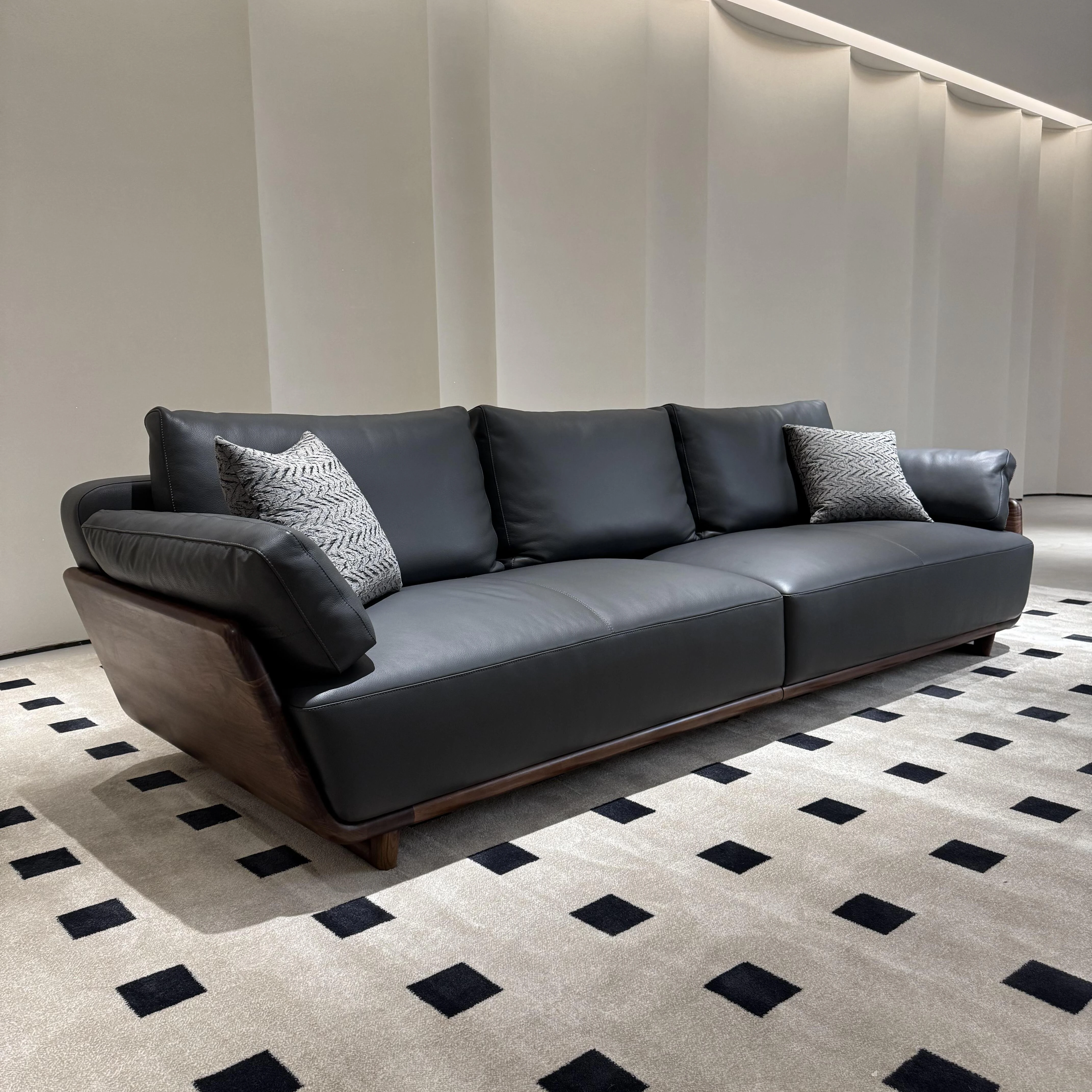 Italian Minimalist Black Walnut Sofa - Solid Wood & Genuine Leather for 3-4 People, Perfect for Any Living Room Size, Elevate Your Space with Luxury and Style