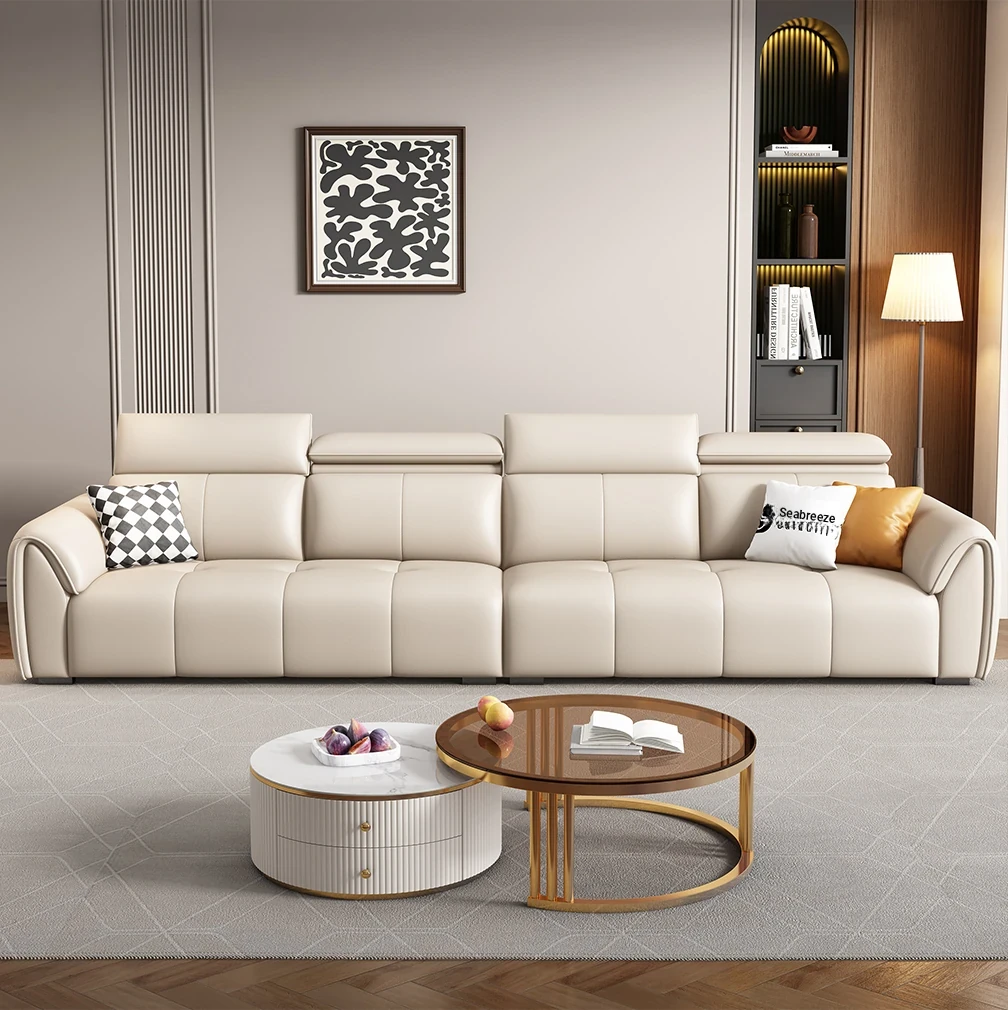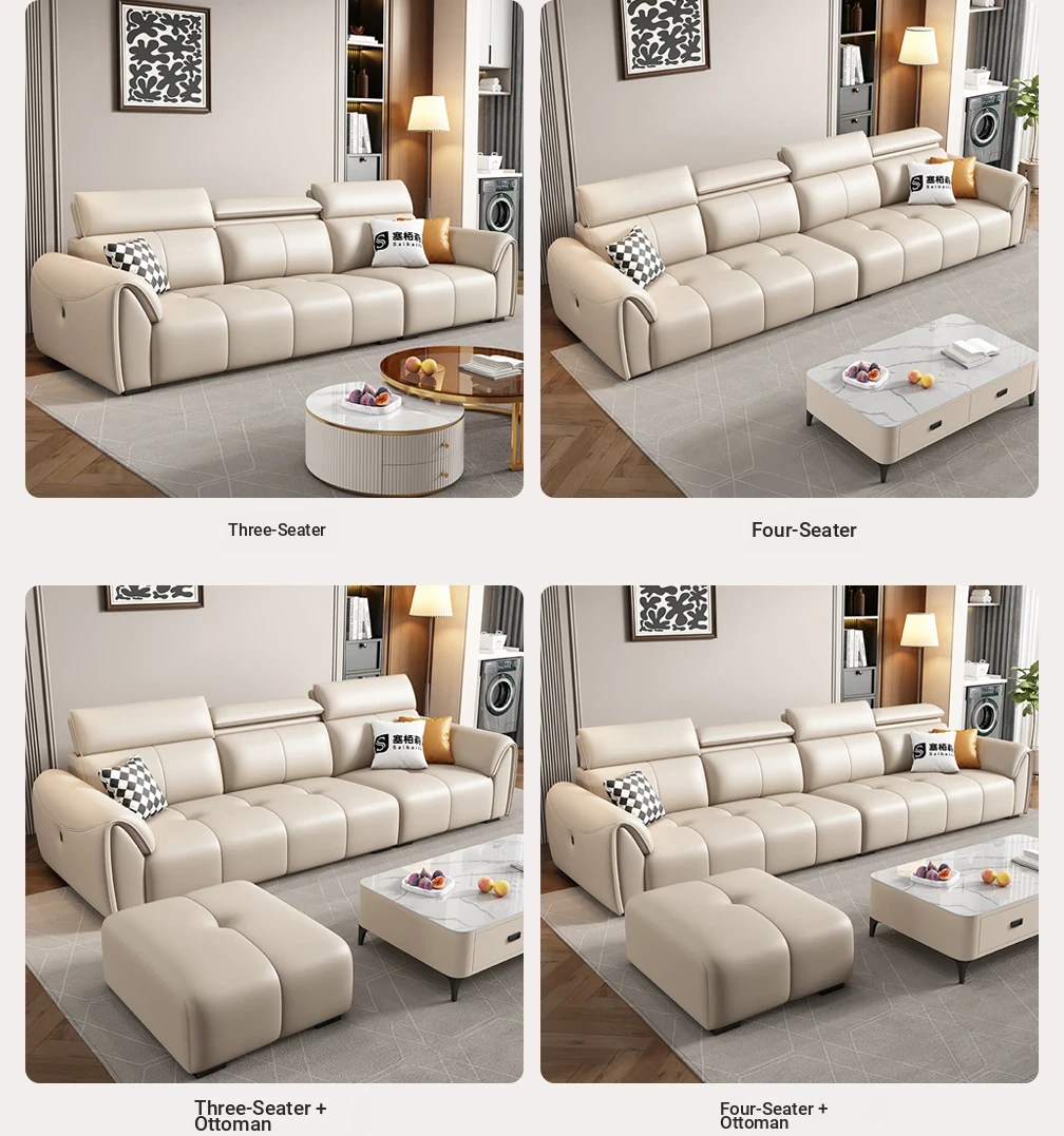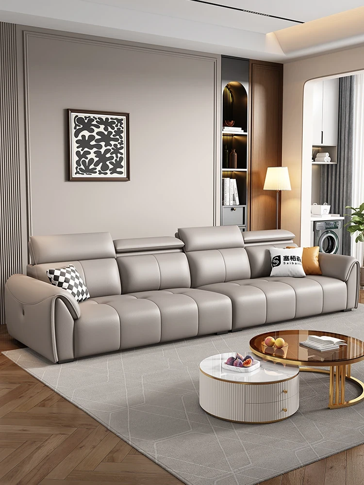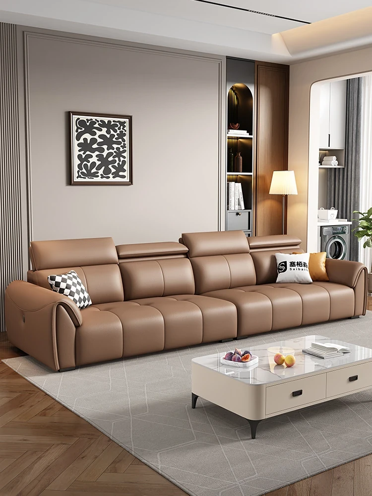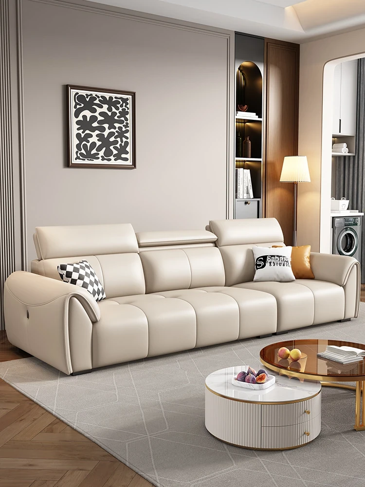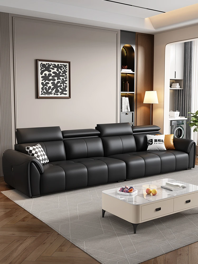 Italian Minimalist Genuine Leather Sofa for Small Spaces - Modern Simple Three-Seater with Top-Grain Cowhide for Stylish Living Room Décor