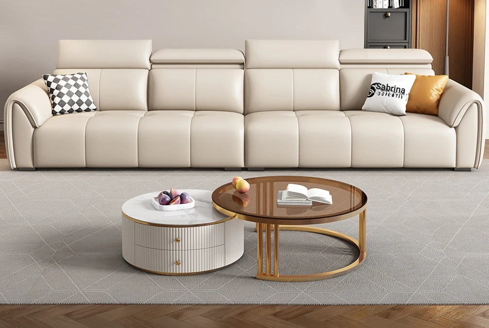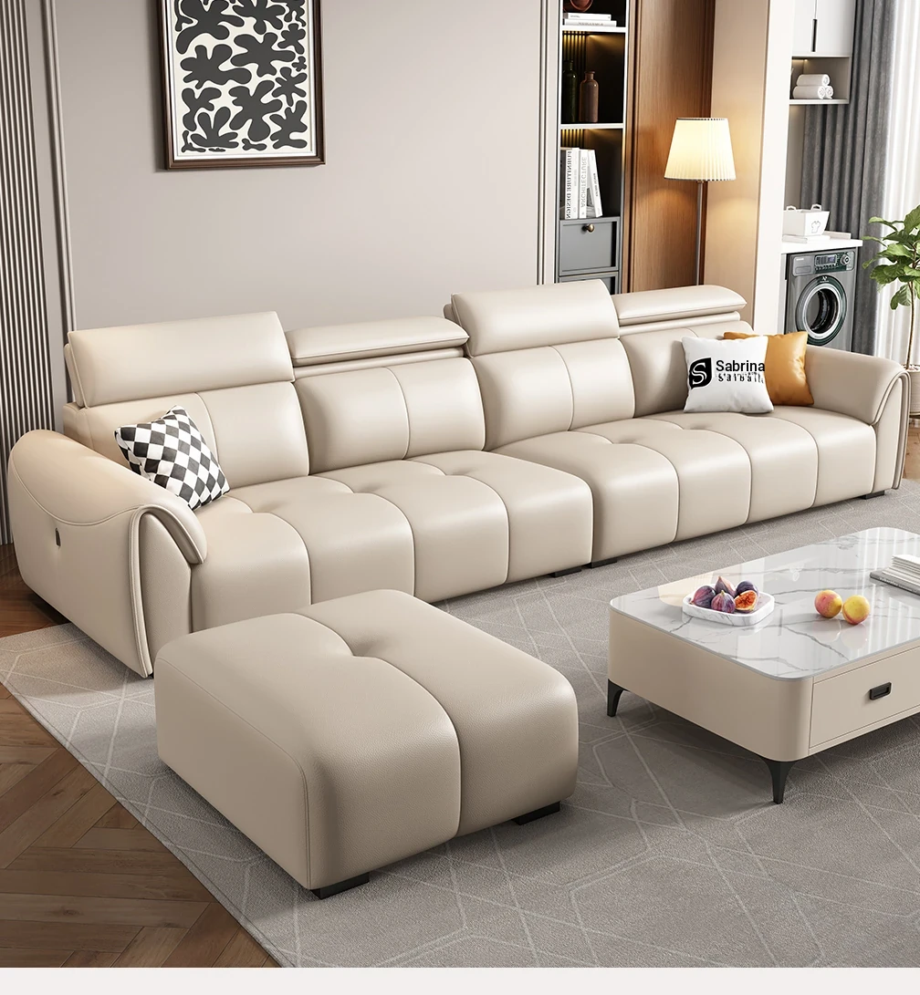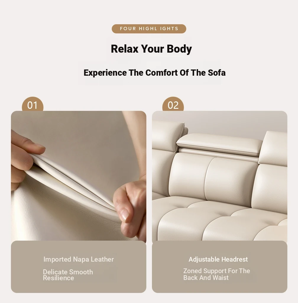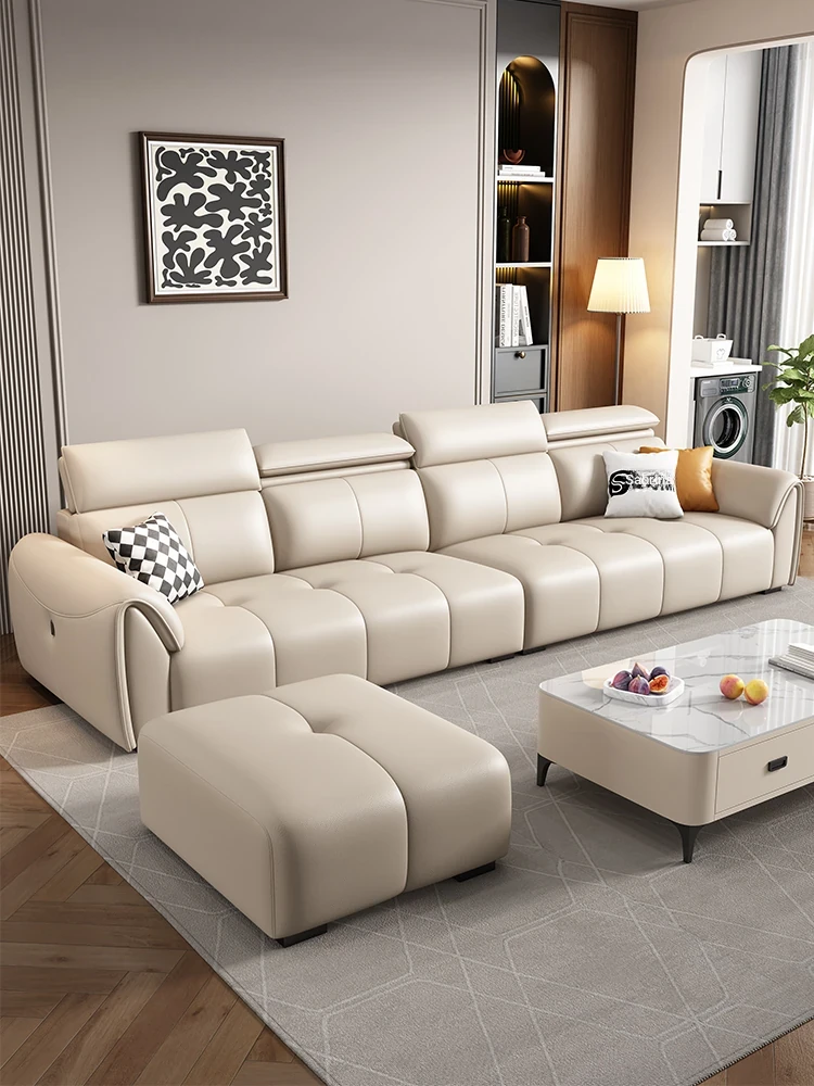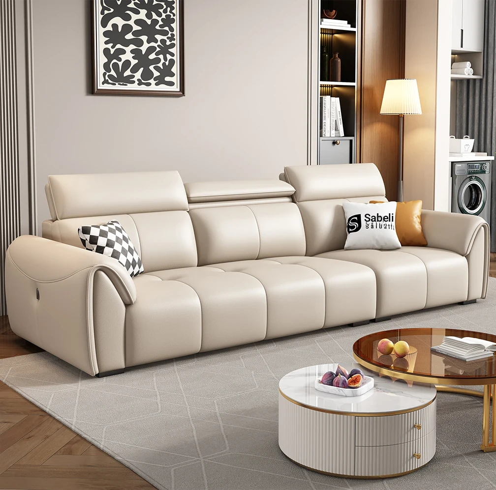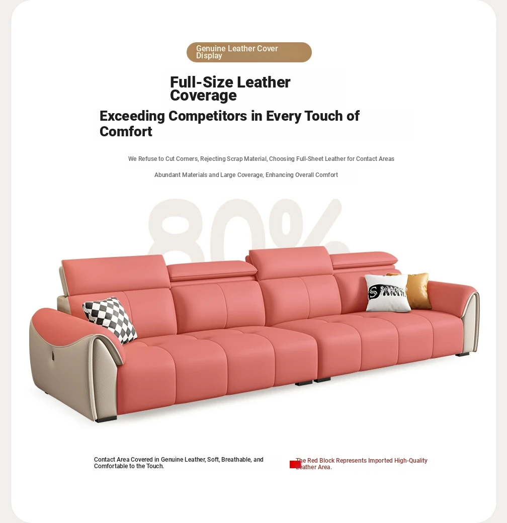 Italian Minimalist Genuine Leather Sofa for Small Spaces - Modern Simple Three-Seater with Top-Grain Cowhide for Stylish Living Room Décor