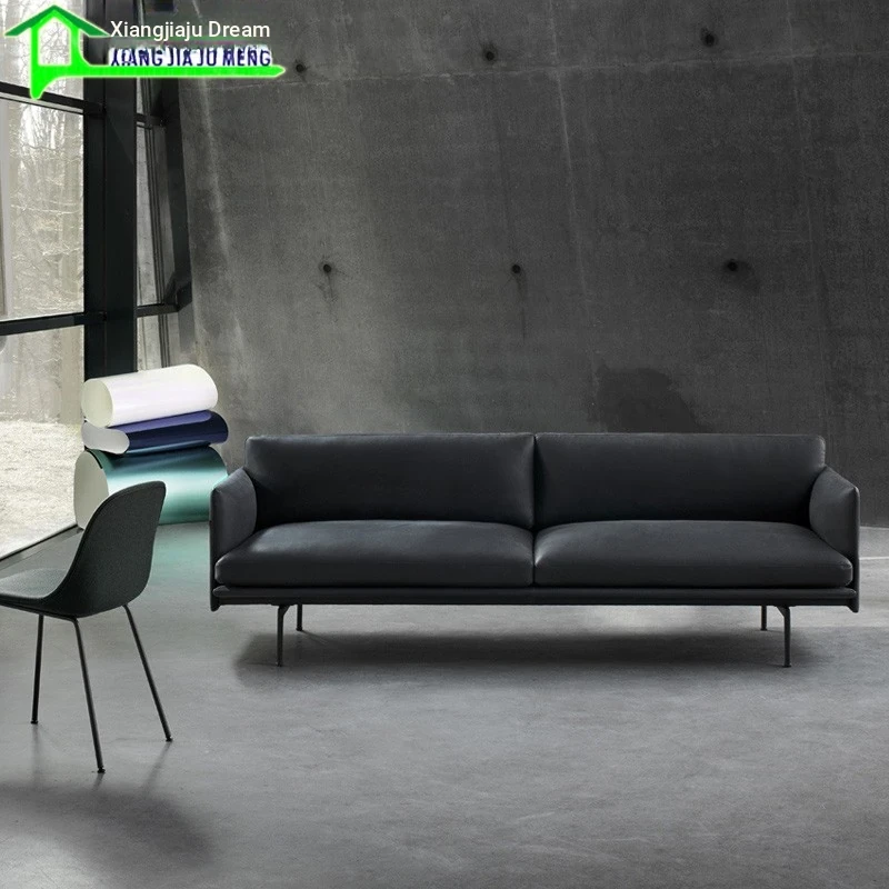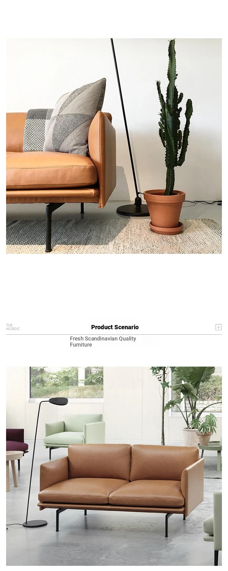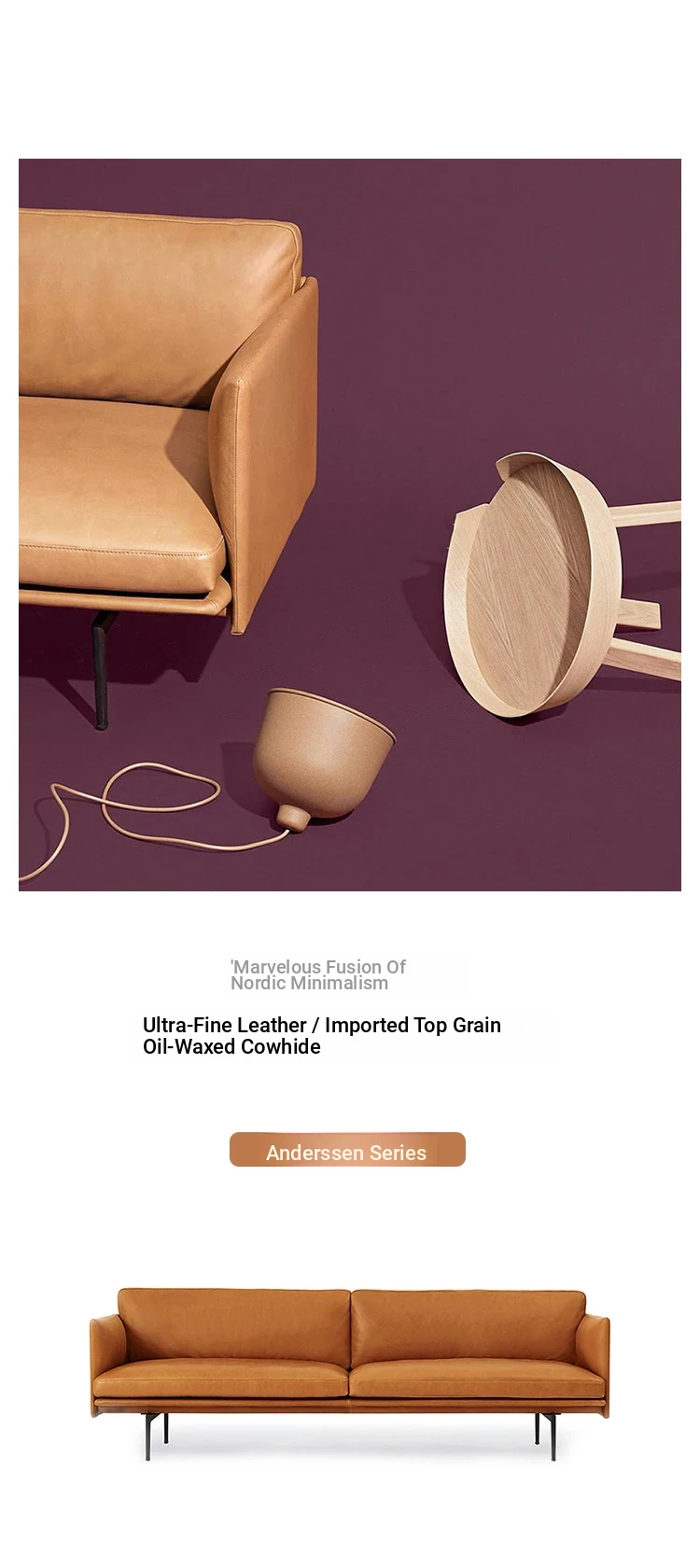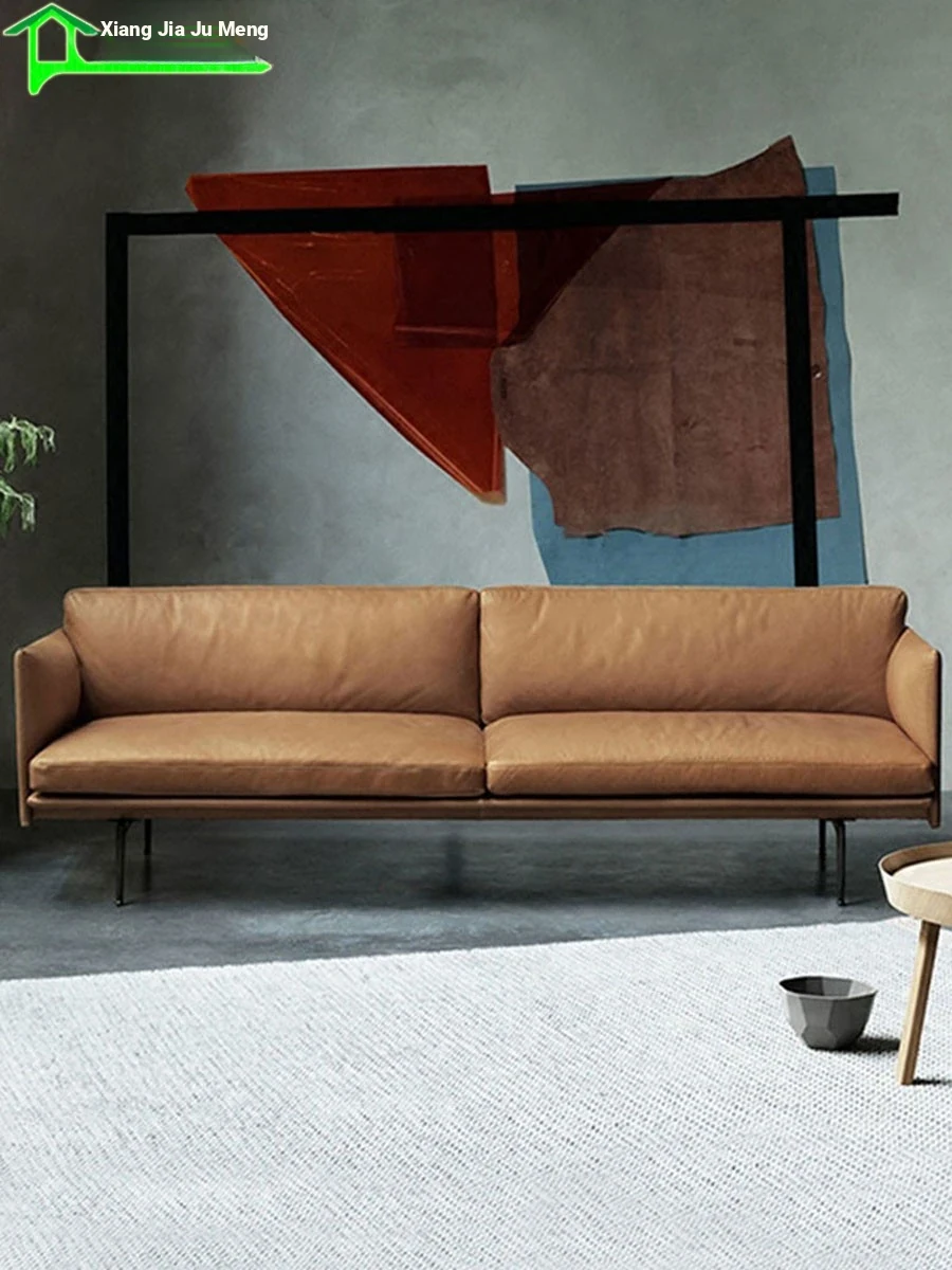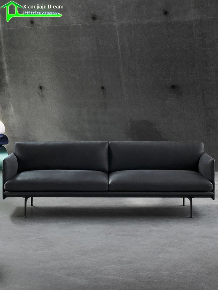 Italian Minimalist Luxury Genuine Leather Sofa for Small Spaces - Nordic Japanese Style Simple Two-Seater and Three-Seater Sofa for Living Room, Perfect for Compact Areas