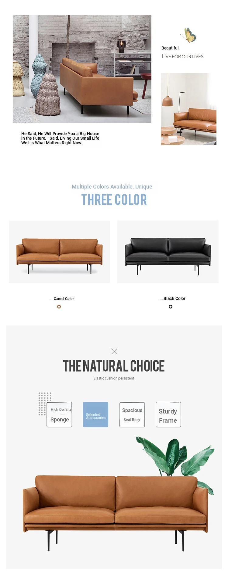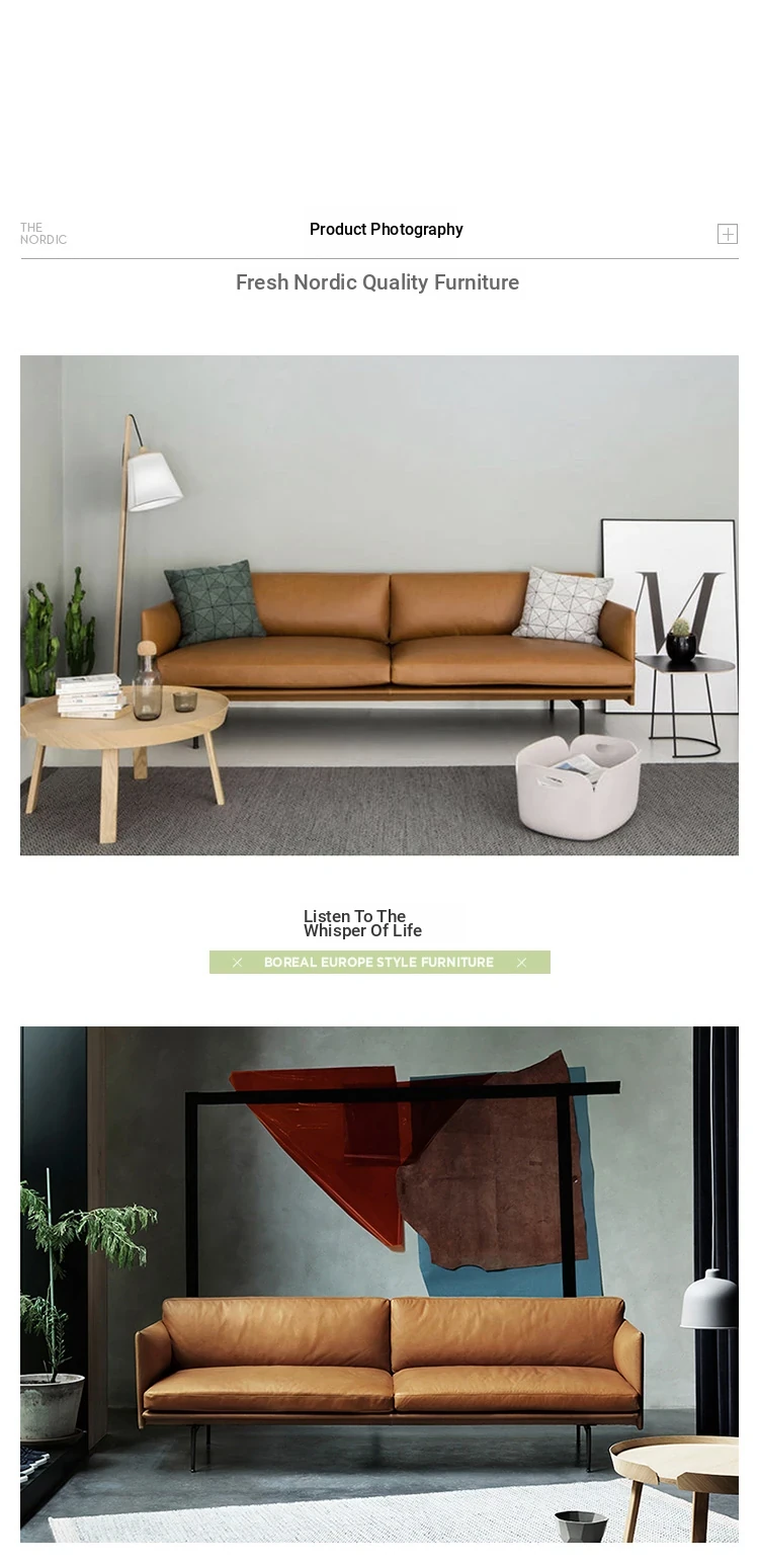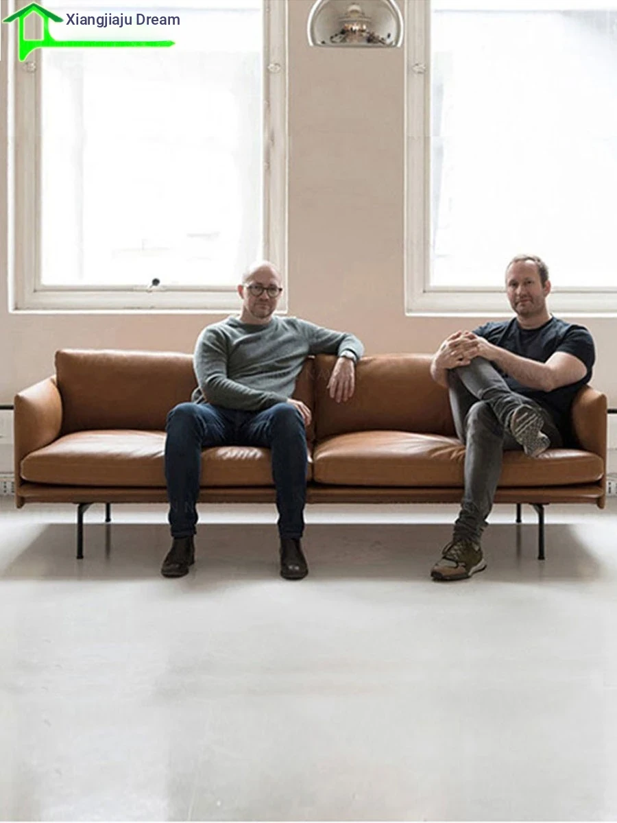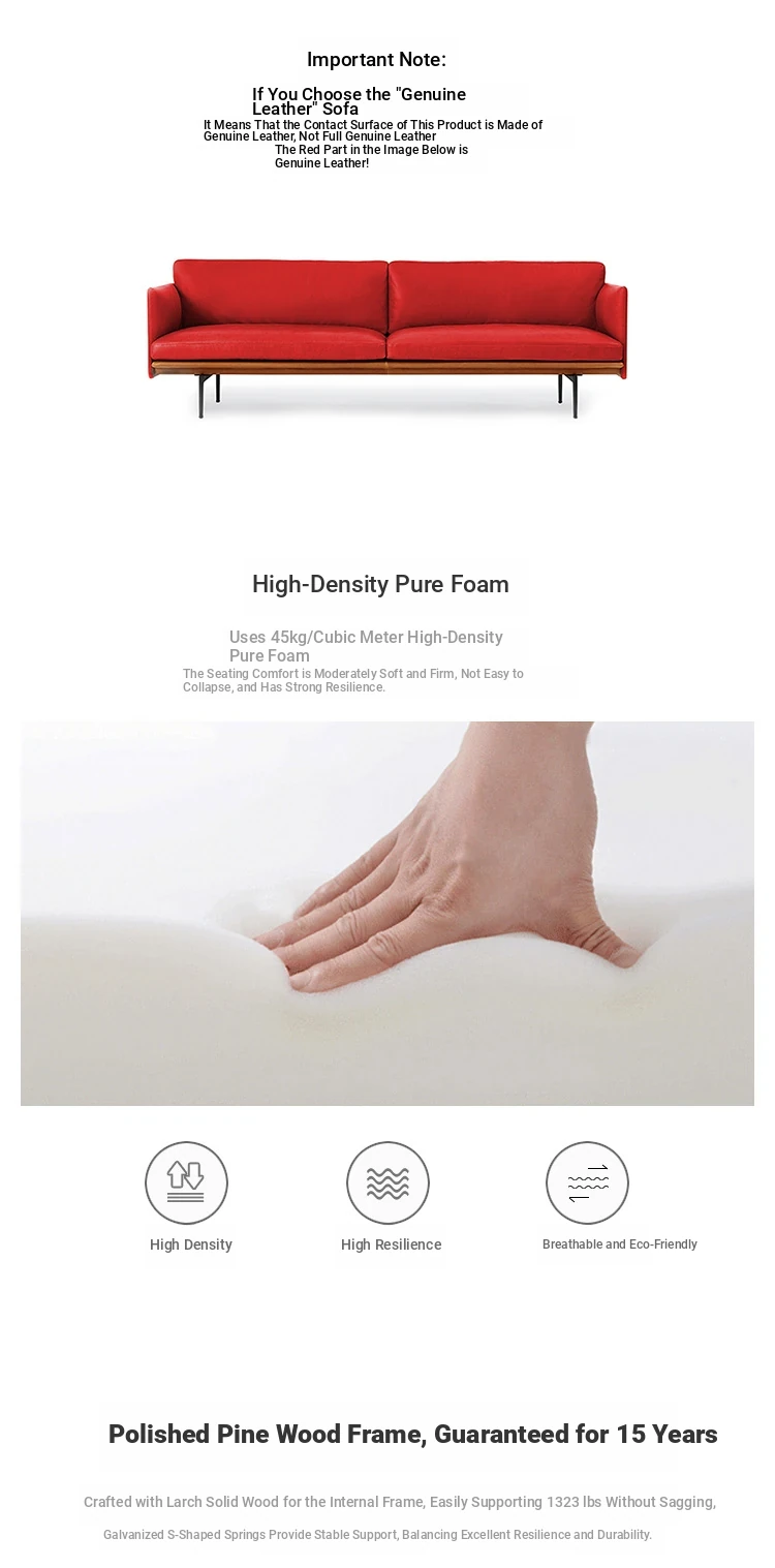 Italian Minimalist Luxury Genuine Leather Sofa for Small Spaces - Nordic Japanese Style Simple Two-Seater and Three-Seater Sofa for Living Room, Perfect for Compact Areas