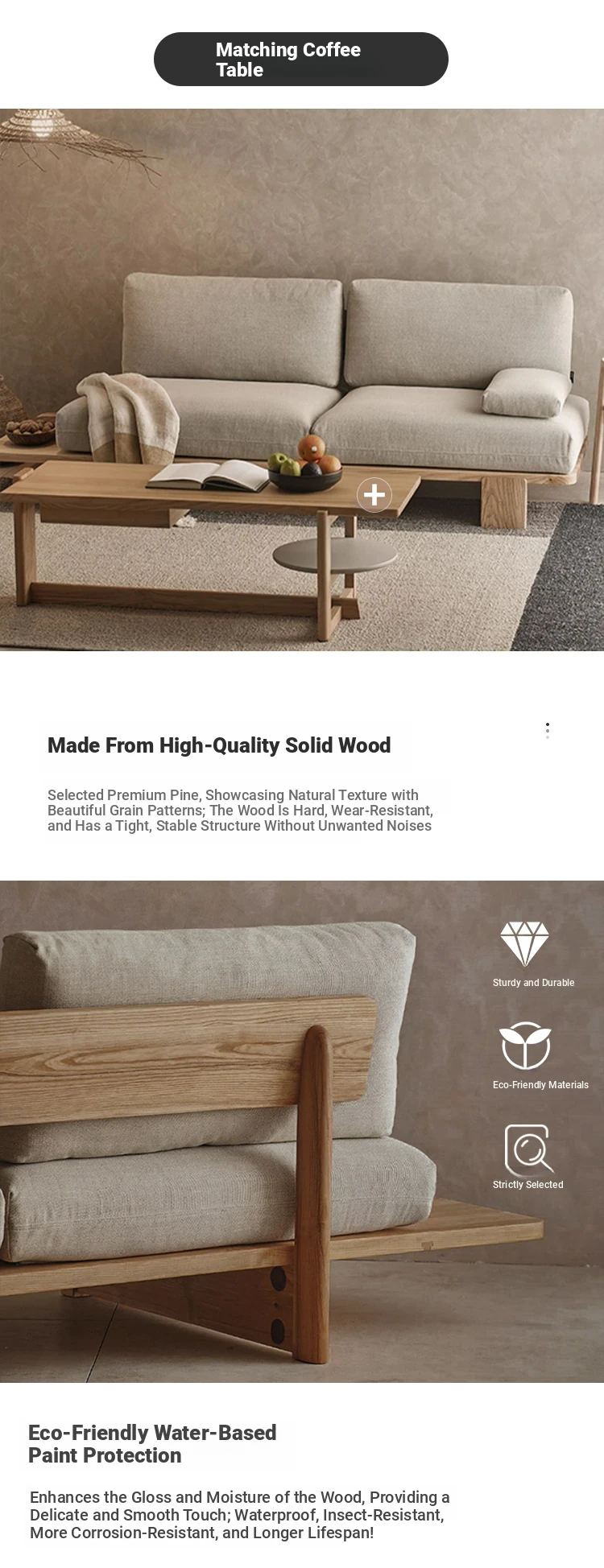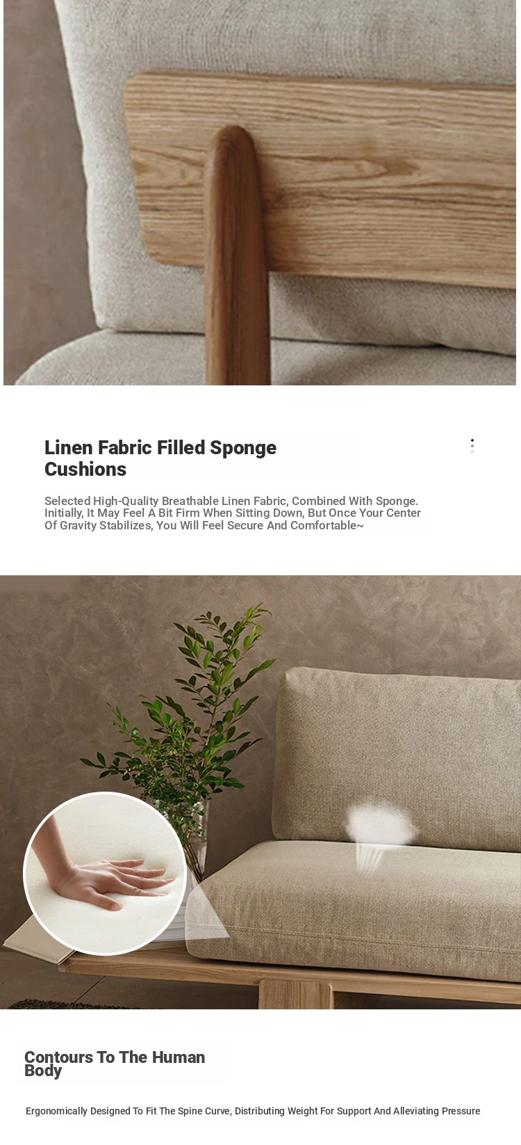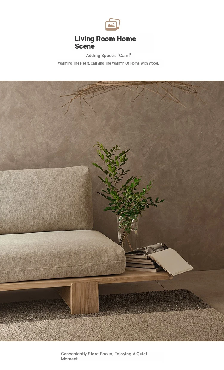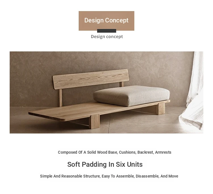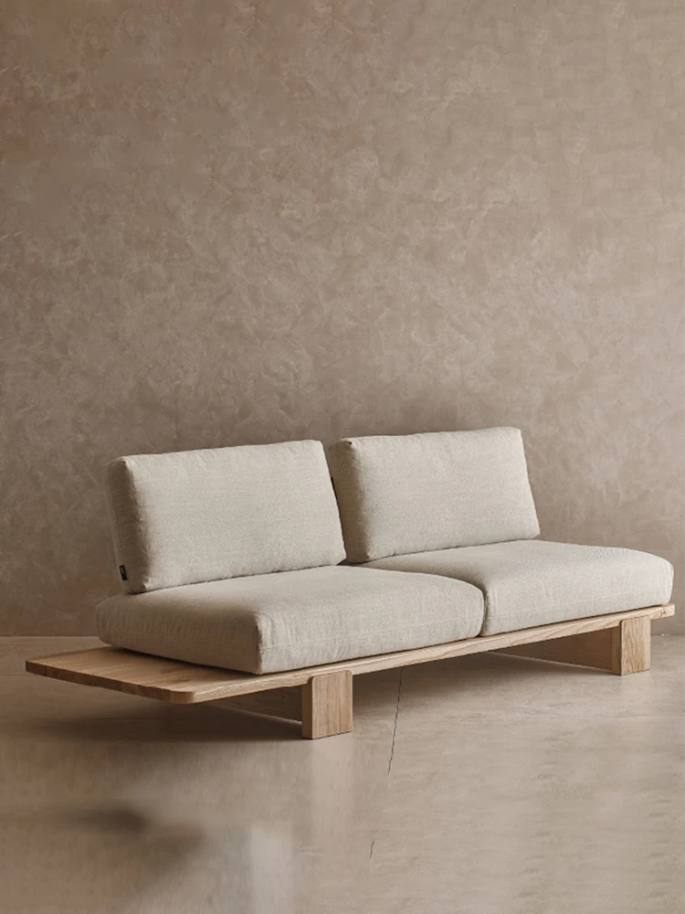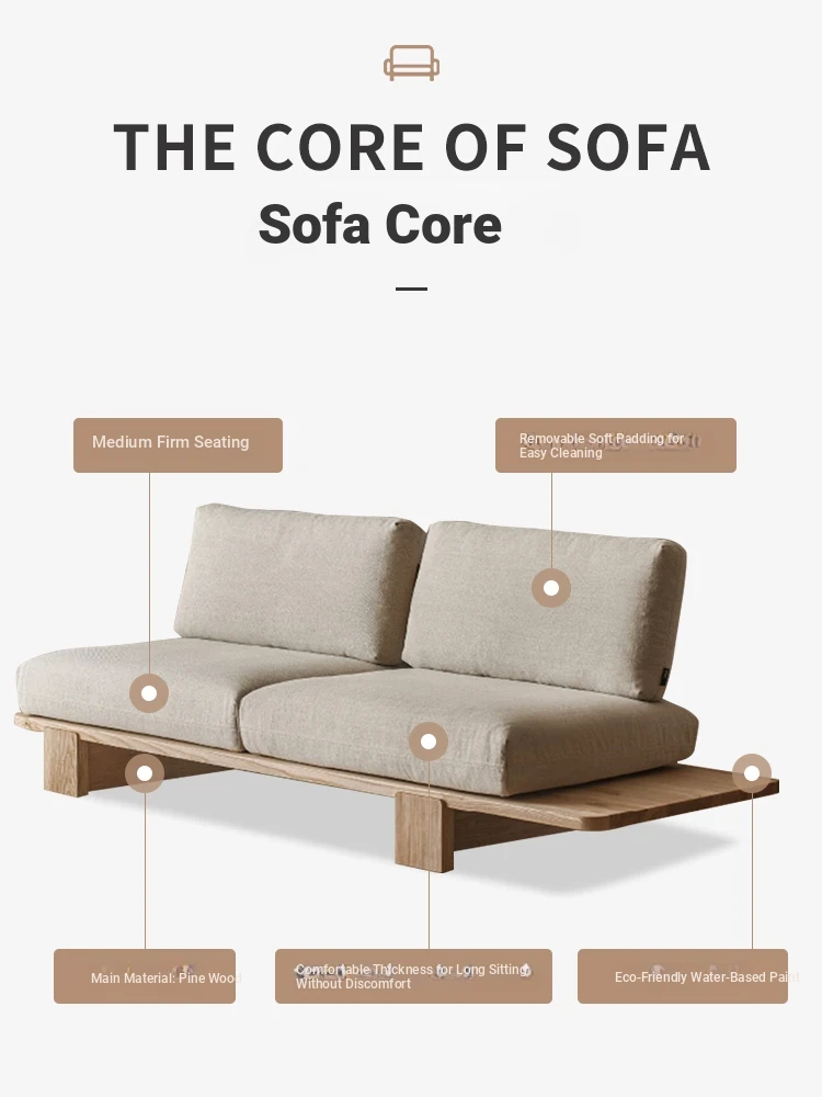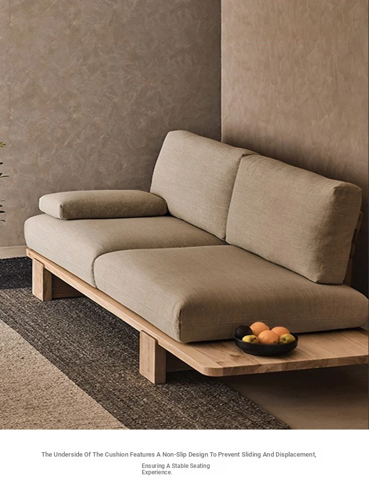 Japanese Wabi-Sabi Style Removable Two-Three Seater Solid Wood Sofa for Small Living Rooms - Perfect for Cozy Rentals and Relaxation