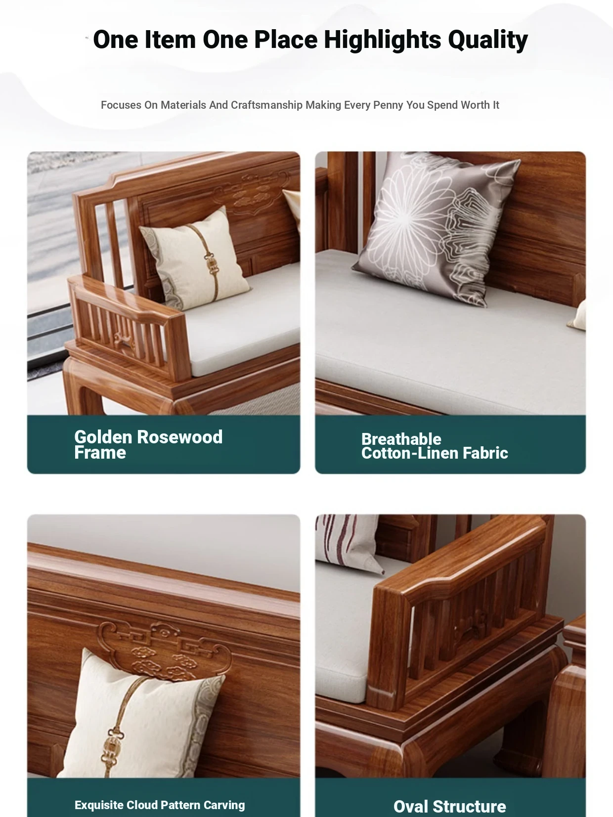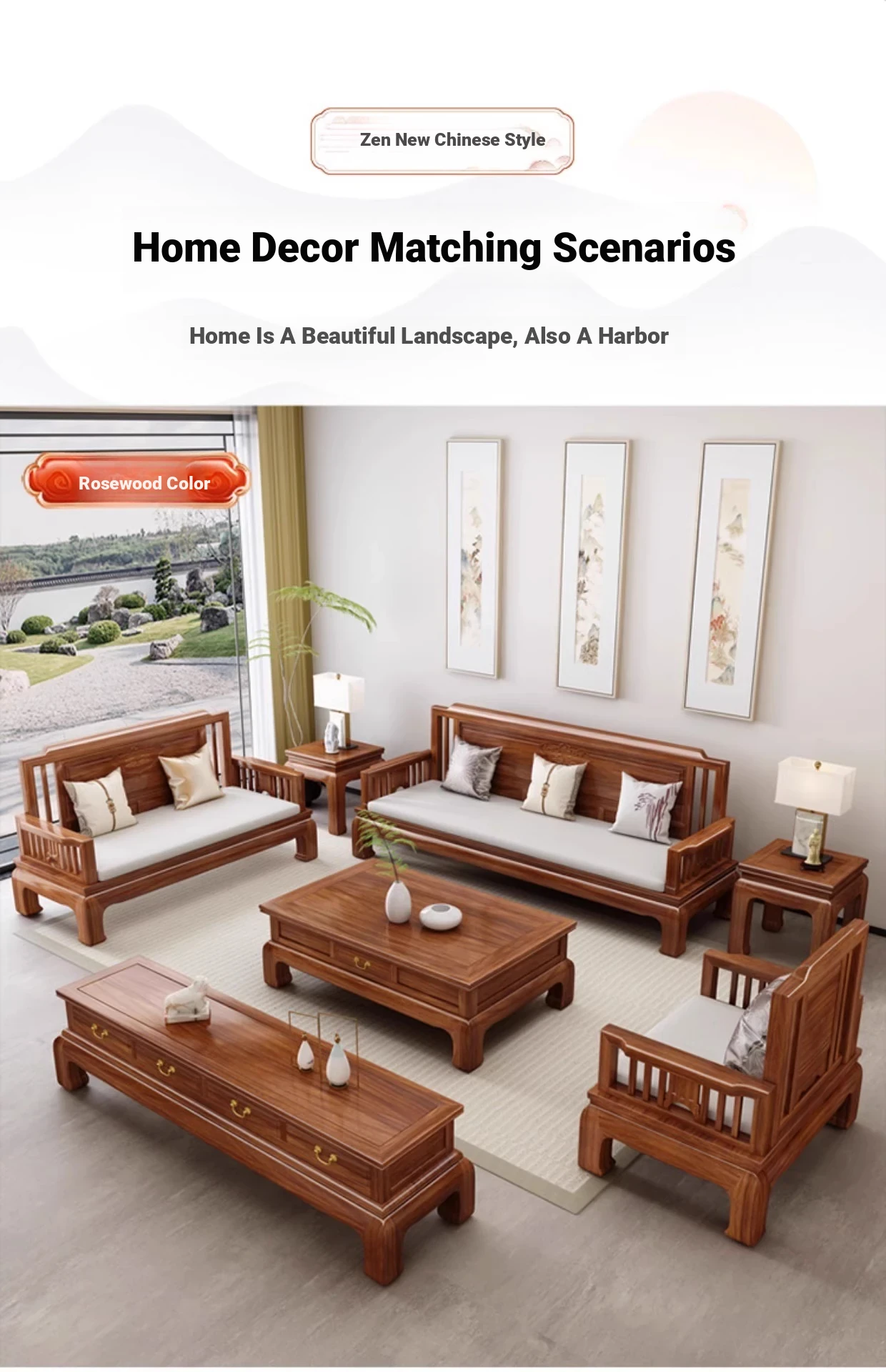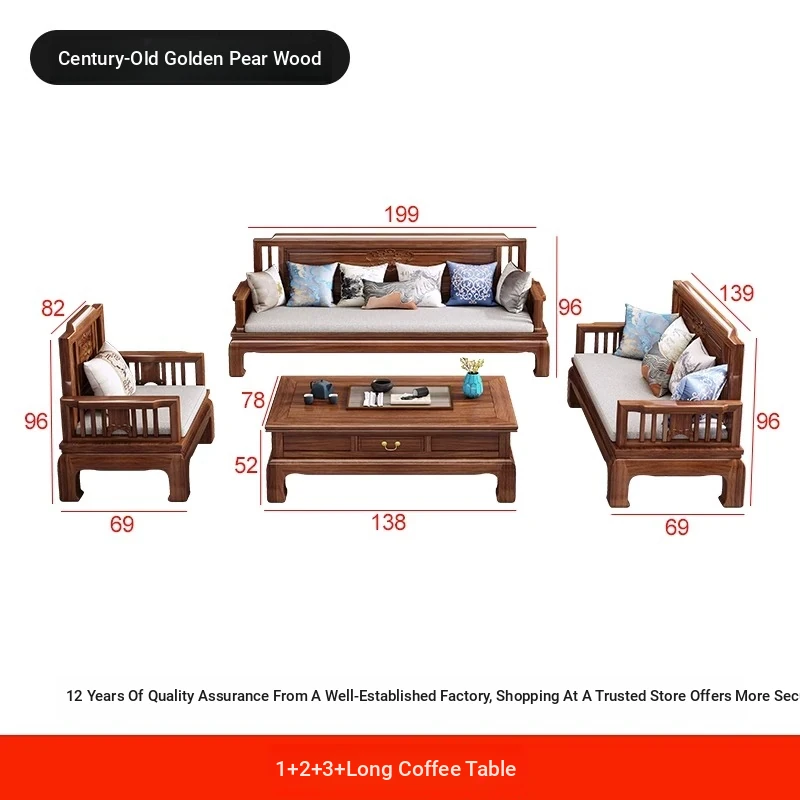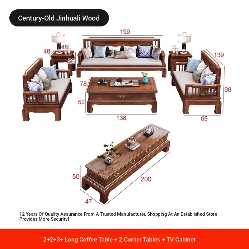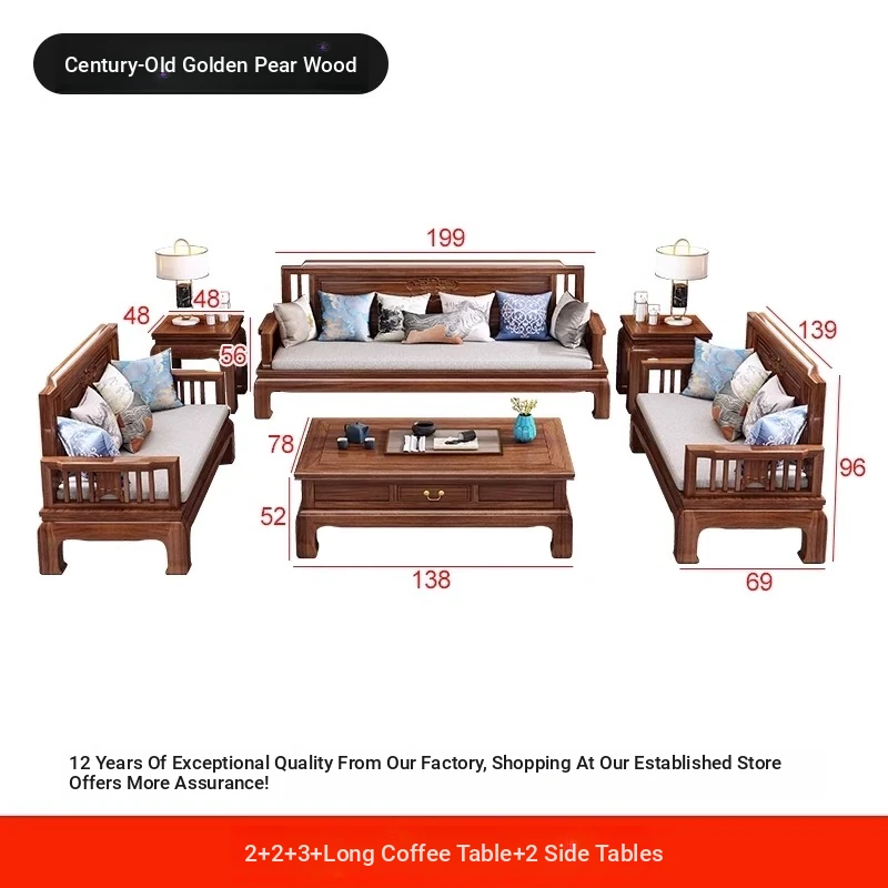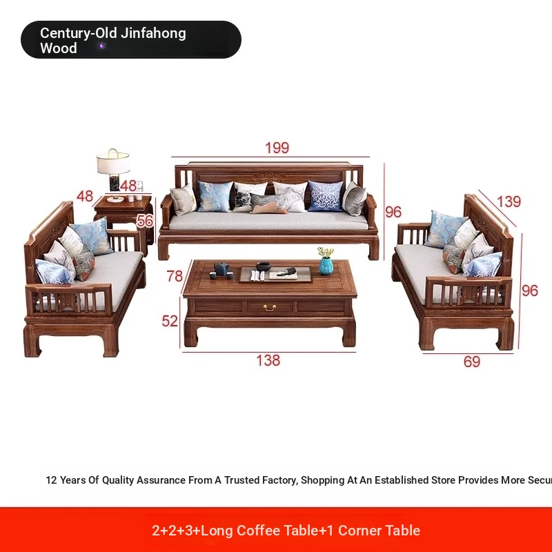 [Golden Rosewood] 2+2+3 + long tea table❤Send cushion pillow