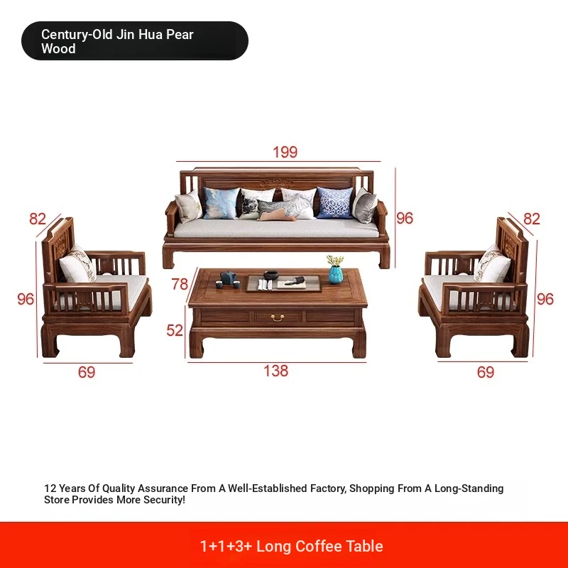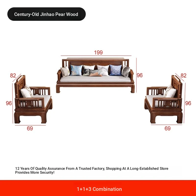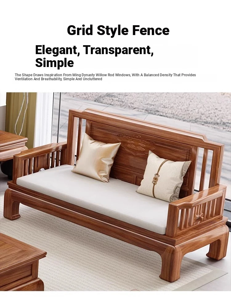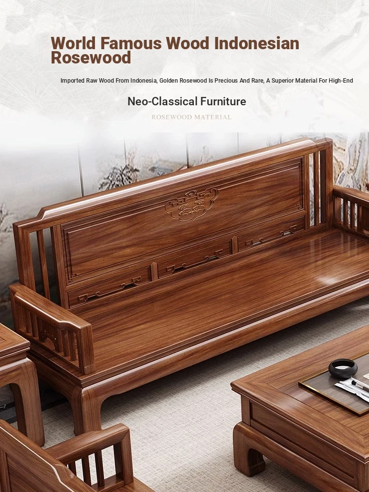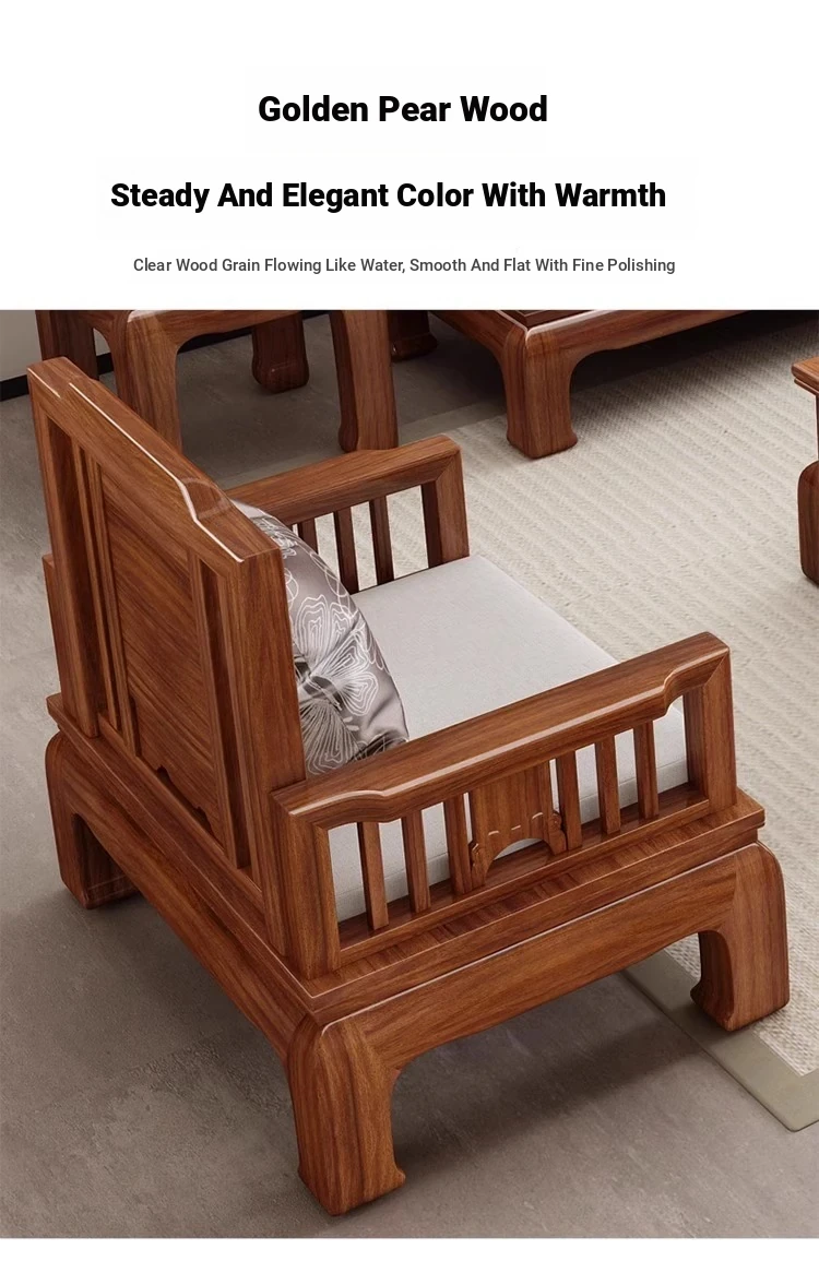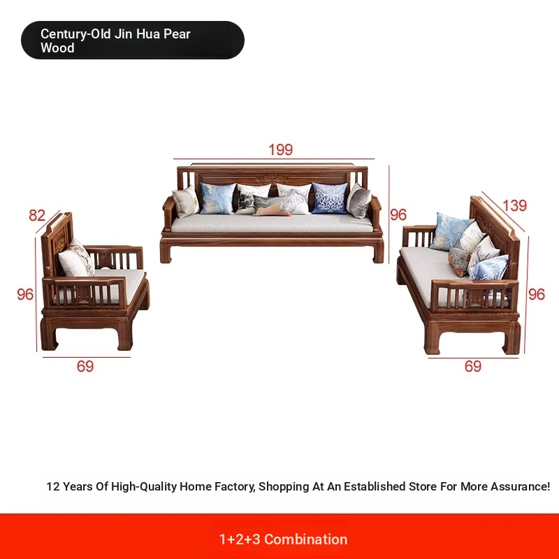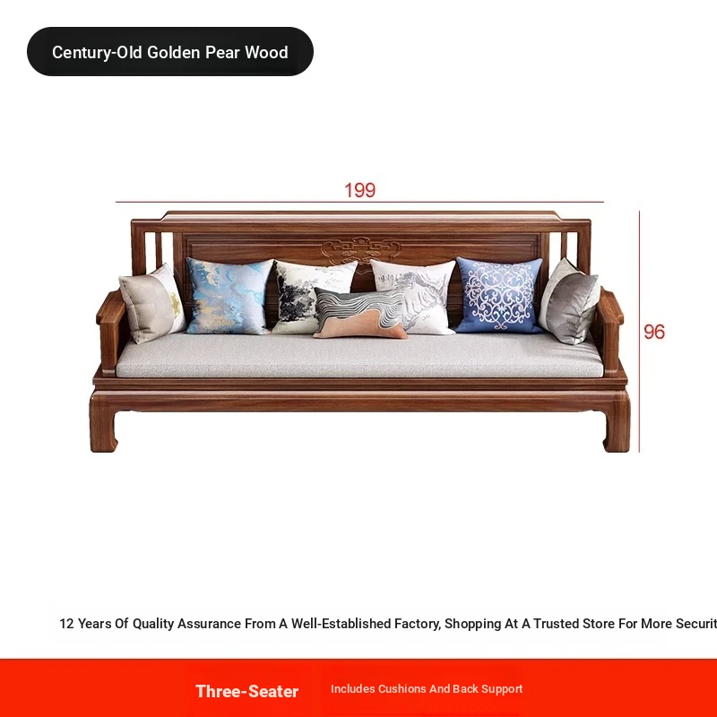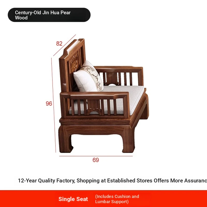 Jin Hua Pear Wood New Chinese Style Solid Wood Sofa - Versatile for Winter and Summer, Antique Pineapple Pattern - Perfect for Any Size Living Room - Elegant Rosewood Furniture
