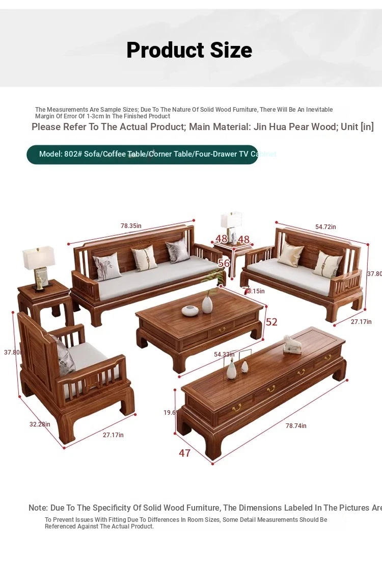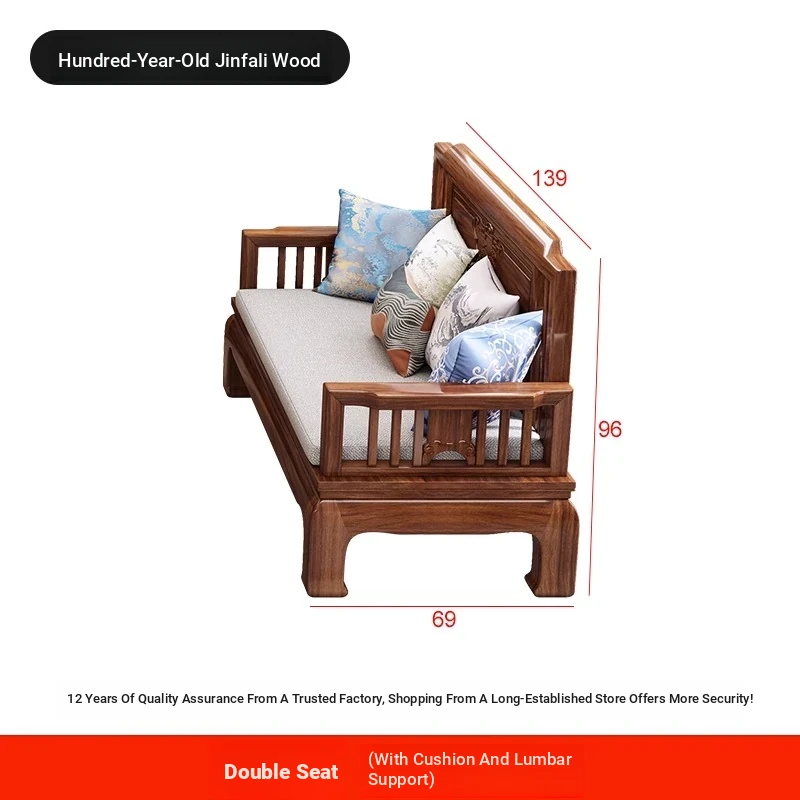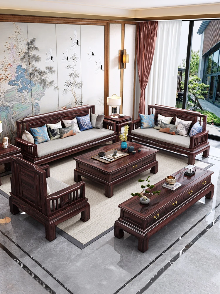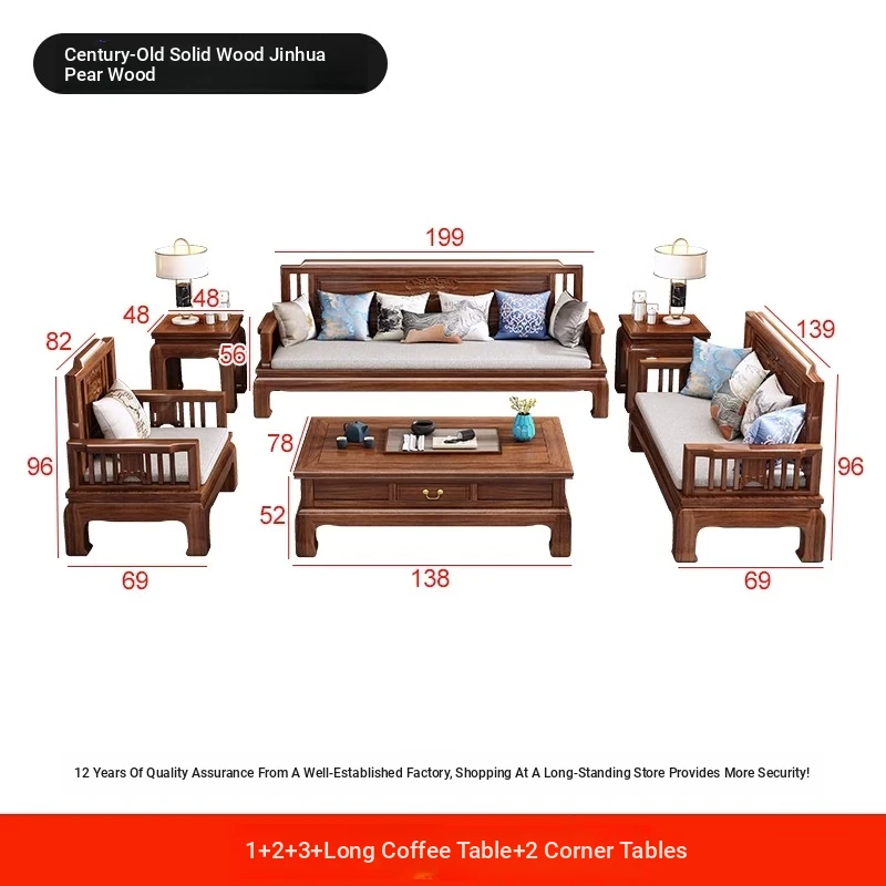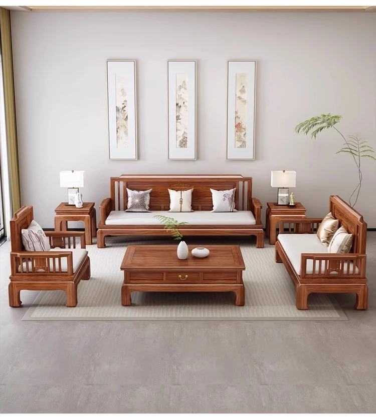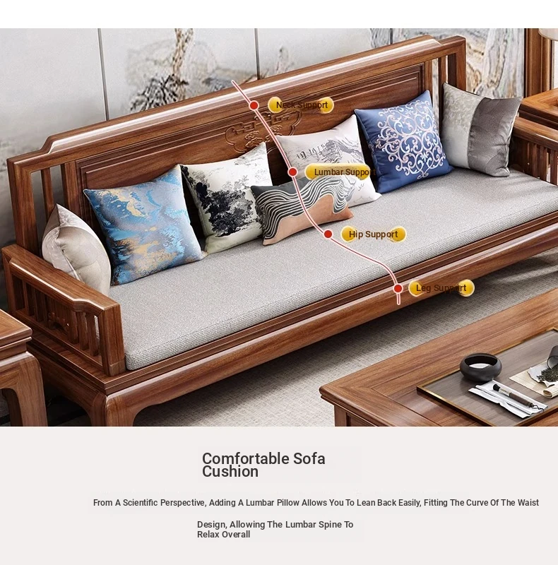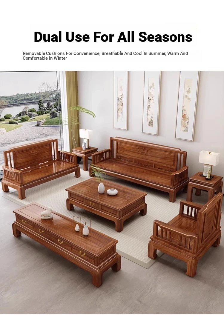 Jin Hua Pear Wood New Chinese Style Solid Wood Sofa - Versatile for Winter and Summer, Antique Pineapple Pattern - Perfect for Any Size Living Room - Elegant Rosewood Furniture