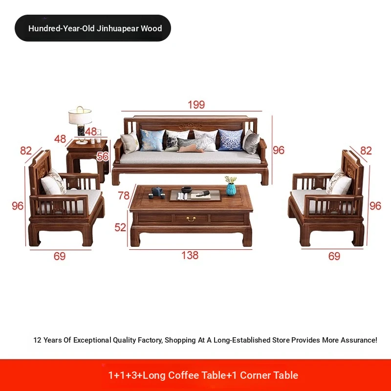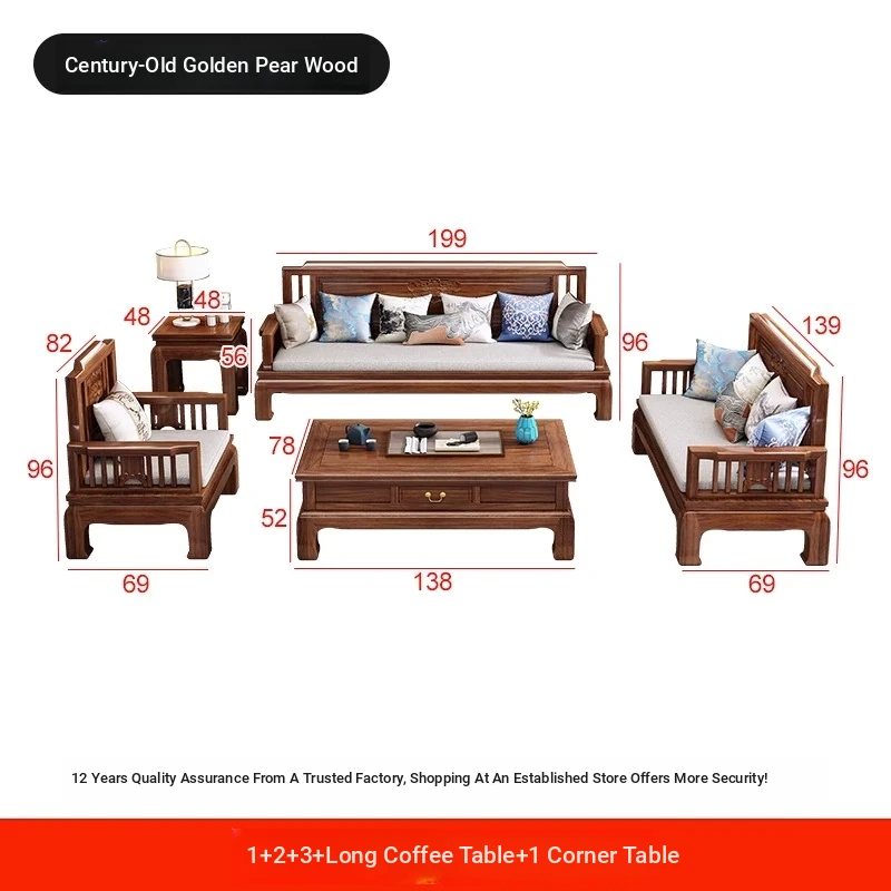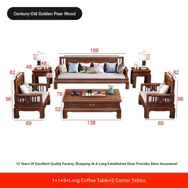 [Golden Rosewood] 1+2+3 + Long Tea Table +1 Corner❤Send cushion pillow