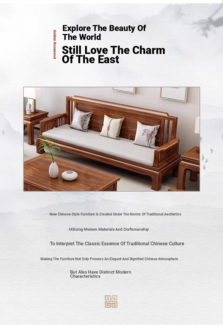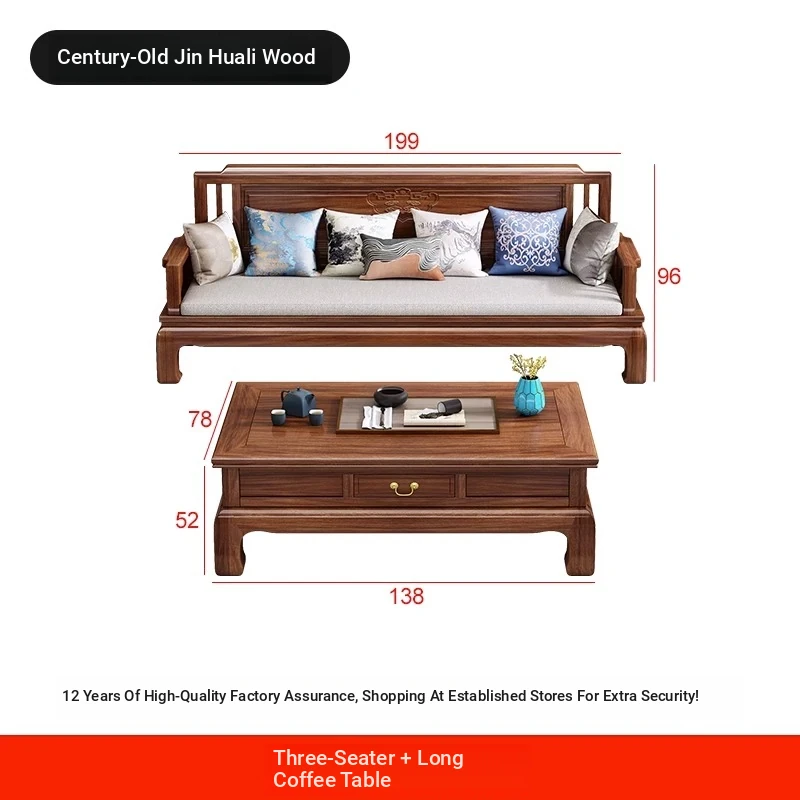[Golden Rosewood] Three-person + Long Tea Table❤Send cushion pillow