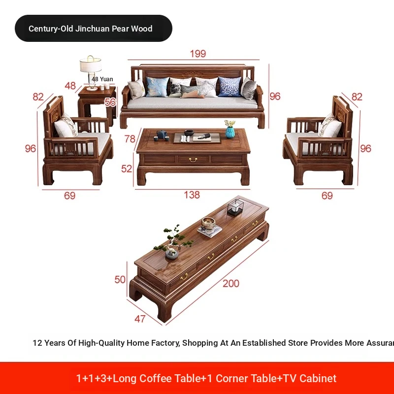[Golden Rosewood] 1+1+3 + Long Tea Table +1 Corner +78.74 in TV Cabinet❤Send cushion pillow