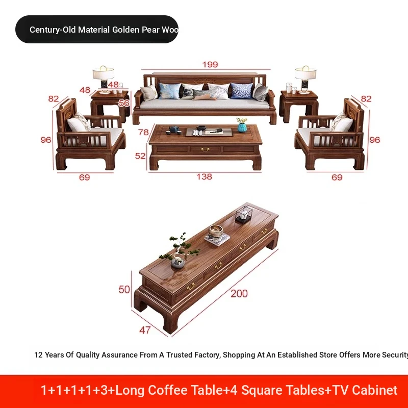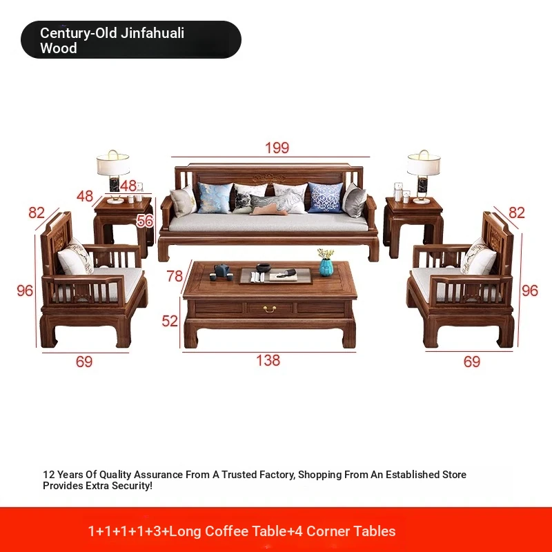 [Golden Rosewood] 1+1+1+1+3 + tea table + square 4❤Send cushion pillow