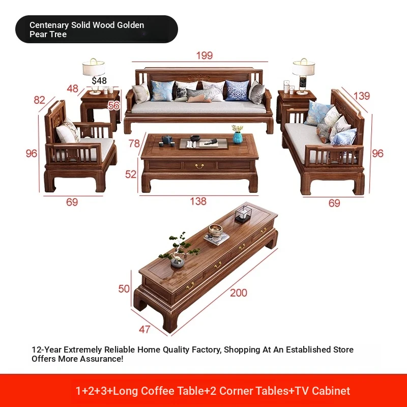 [Golden Rosewood] 1+2+3 + Long Tea Table +1 Corner +78.74 in TV Cabinet❤Send cushion pillow