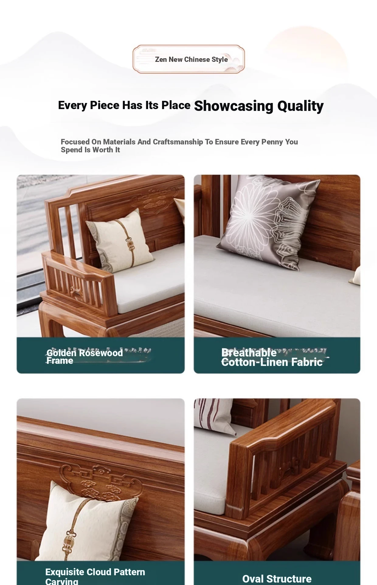 [Golden Rosewood] 2+2+3 combination❤Send cushion pillow