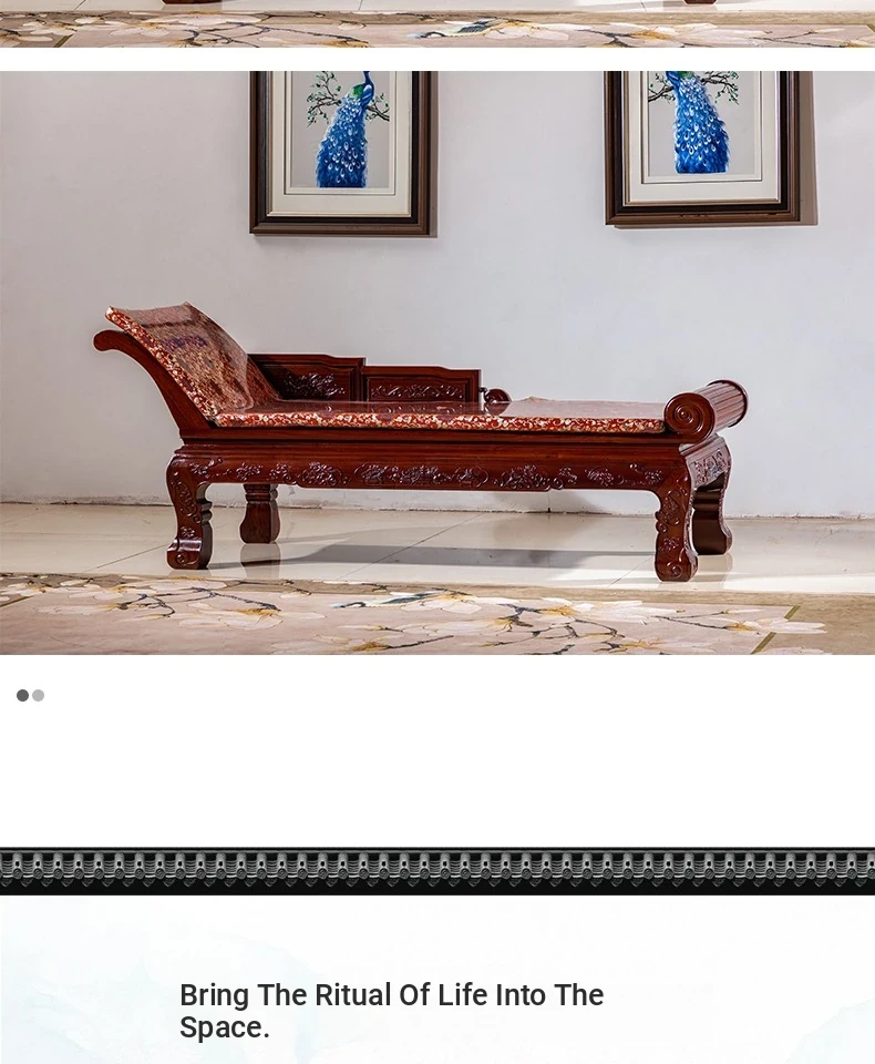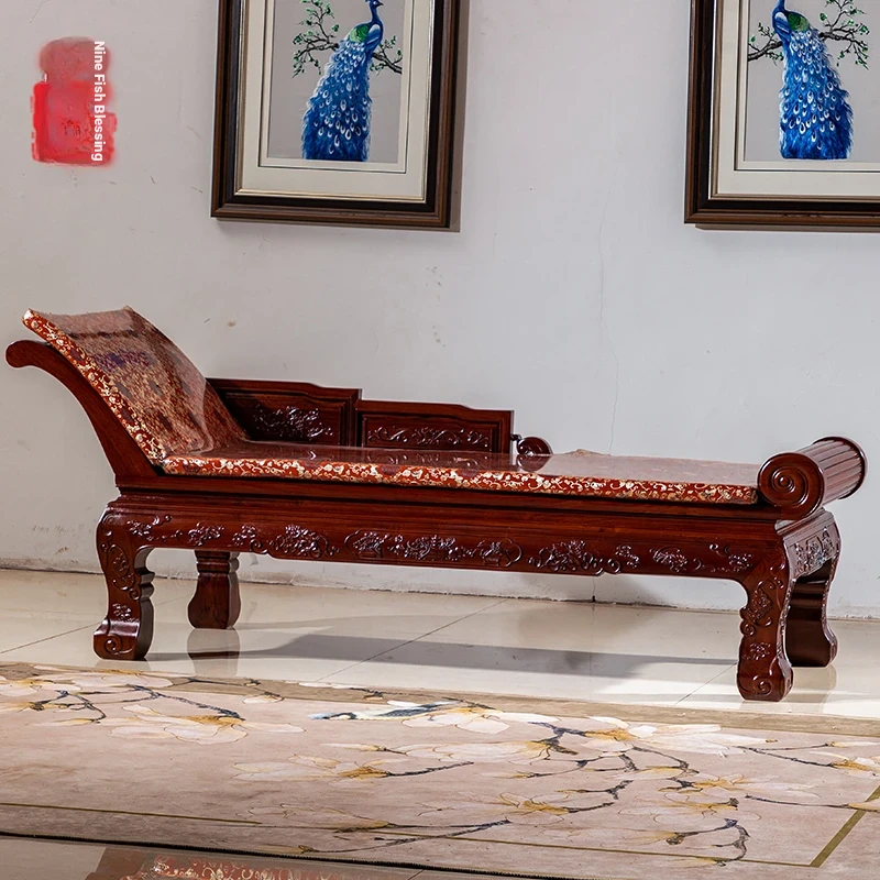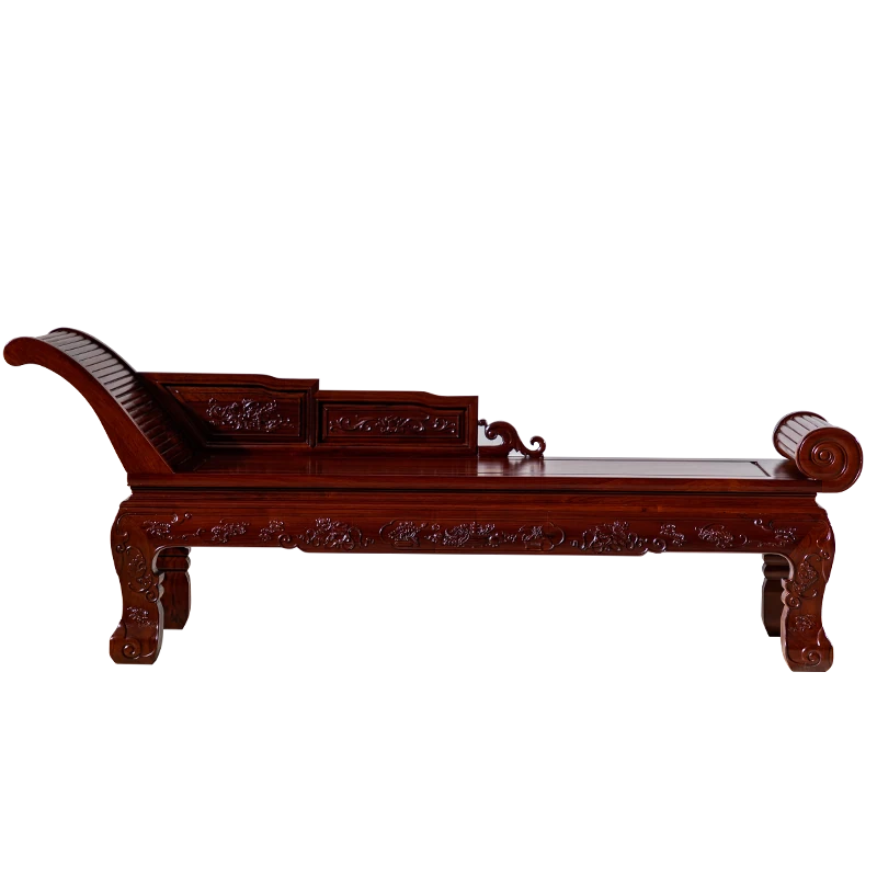 Lao Red Rosewood Chaise Lounge Chair - Luxurious Chinese Solid Wood Daybed with Bali Yellow Sandalwood Accents, Perfect for Relaxation and Napping in Style