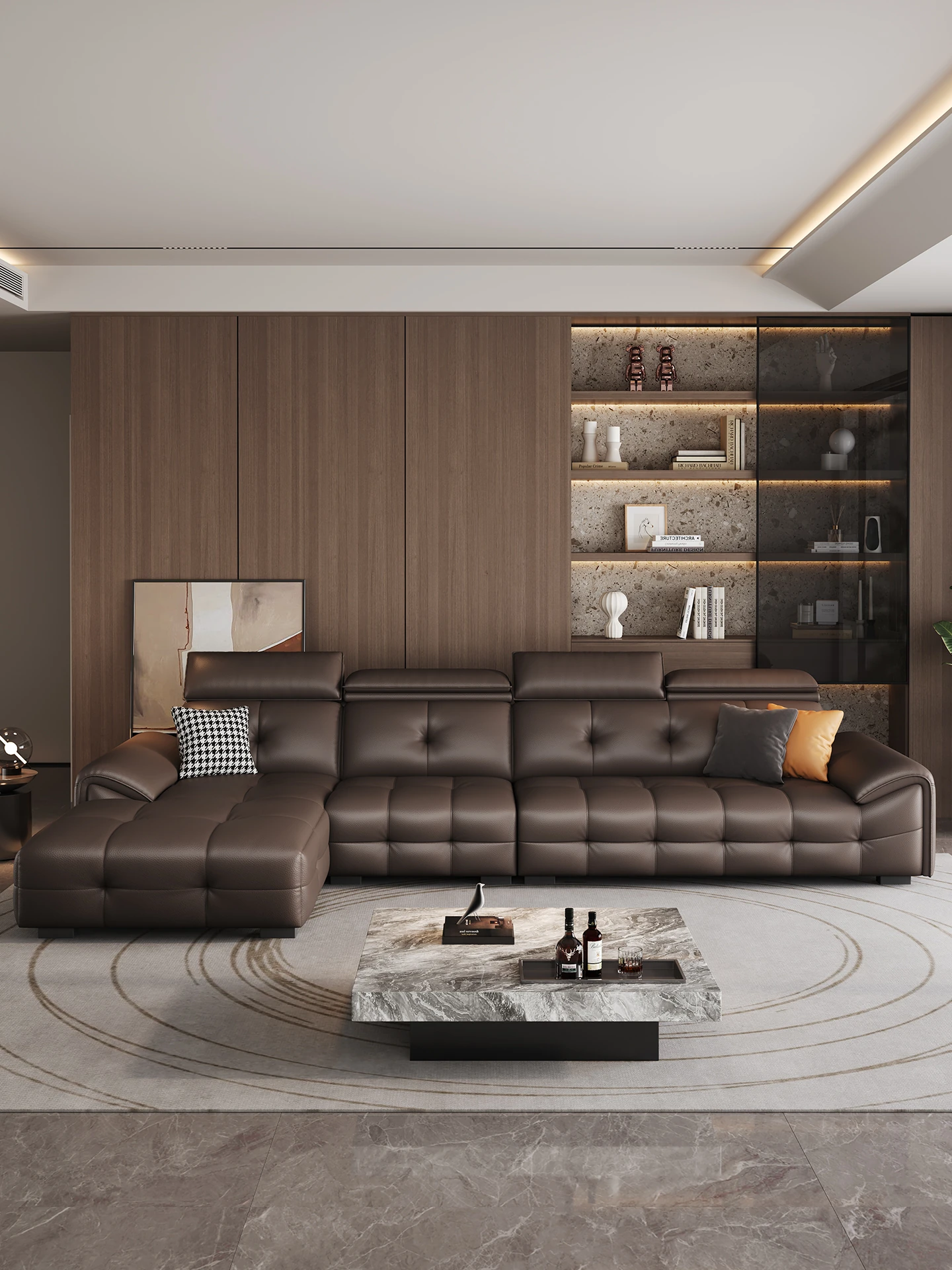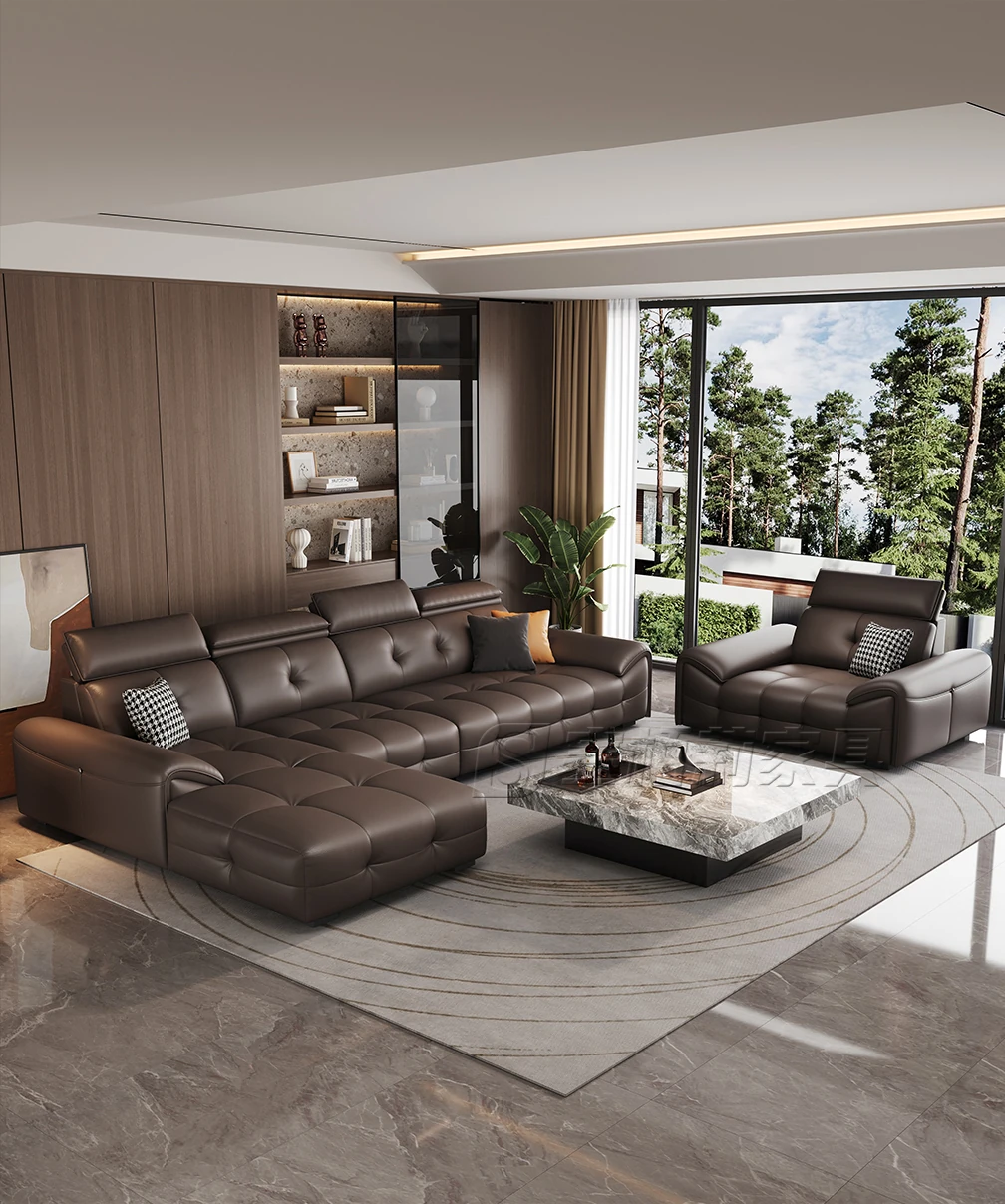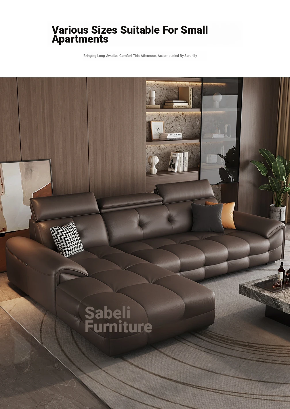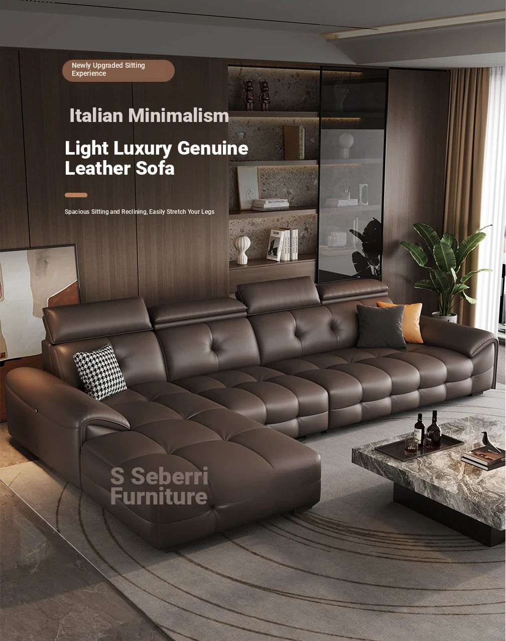 Lawrence Italian Minimalist Leather Sofa 2025 - Luxurious Modern Chaise Lounge for Spacious Living Rooms - Stylish and Elegant Design